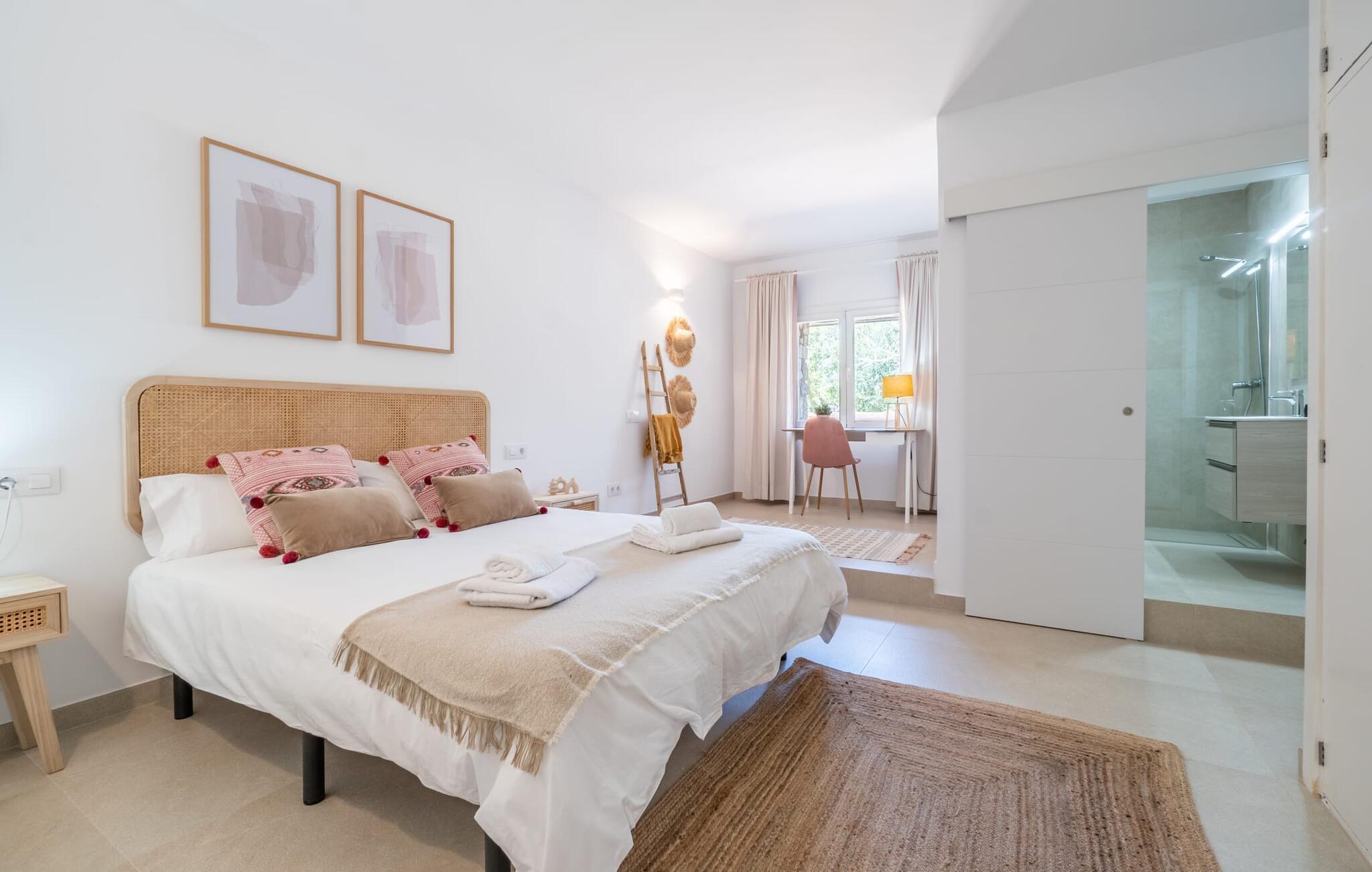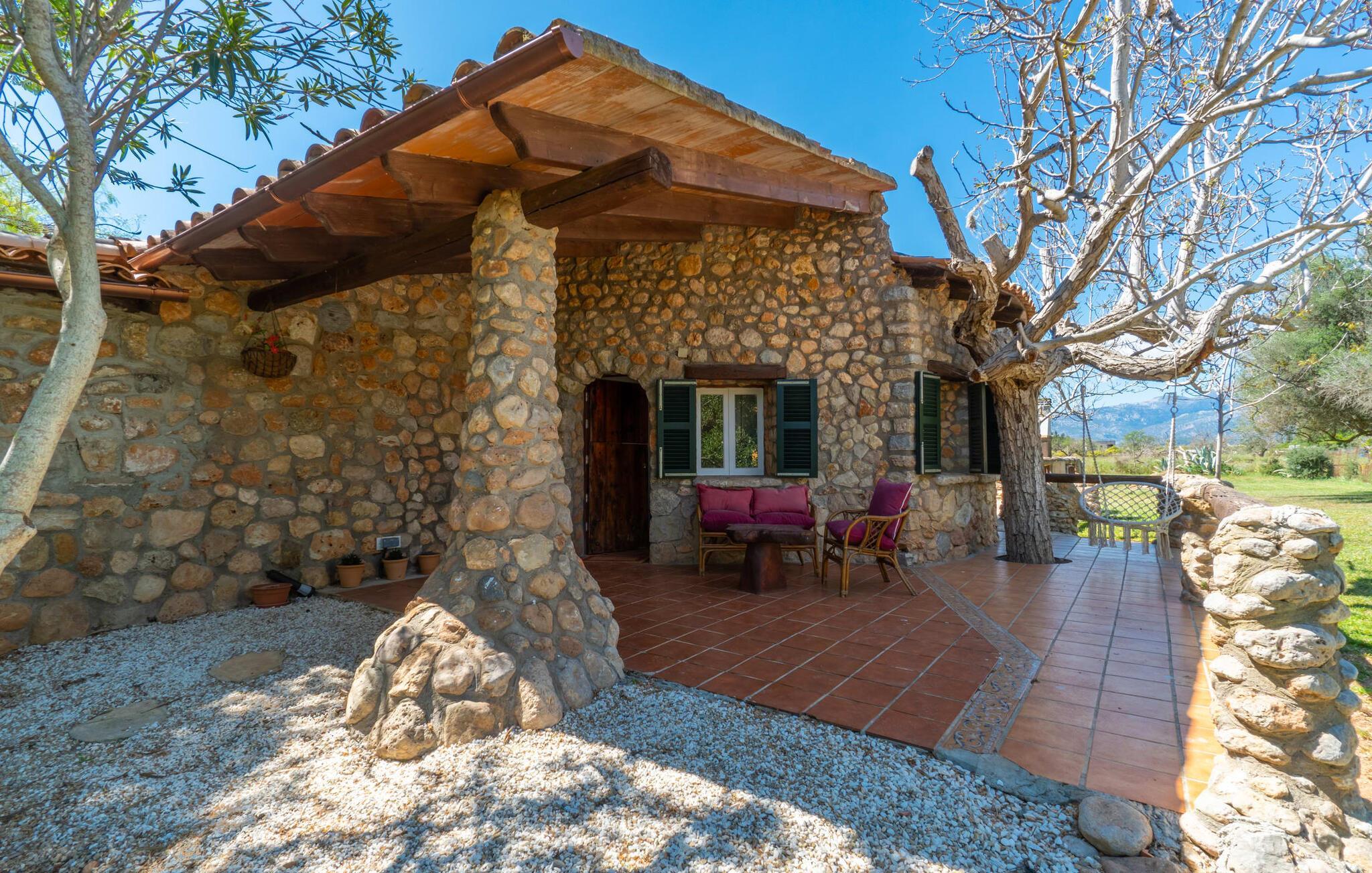 Landstedet "Ca Na Marlis" er ideelt, hvis du ønsker at tilbringe en afslappende ferie med gode venner på Mallorca. Bygningernes arkitektur kan minde om det nordlige Spanien, hvilket ikke er tilfældigt: De tilhørte engang en asturisk restaurant. Dette er et Fincallorca feriehus. Ejendommen er blevet nænsomt restaureret og omdannet til tre separate og komfortable boligenheder, fordelt på en afsondret havegrund med masser af græsplæne, fortryllende skyggefulde områder og en eksotisk designet pool med en lille grotte og vandfald. Der er masser af komfortable liggestole og siddepladser til læsning, solbadning og afslapning. Hvert hus har en individuelt designet terrasse. Det indre af hovedhuset og de to bungalower er oversvømmet med lys og indrettet i en moderne landlig stil. Hovedhuset har en stue, en spisestue, et moderne køkken med en anden spiseplads og tre rummelige soveværelser, hvoraf to har eget badeværelse. I tilknytning til huset finder I en skøn lounge, flere terrasser og en grillplads. Hver af de to bungalower har et dobbeltværelse med eget badeværelse. Den tredje bungalow med rustik indretning har ikke et soveværelse. Der er et lille fitnessrum, en hyggelig stue med pejs, en lille bar og et værelse med spil og et bordfodboldbord. Her kan du skabe din egen feststemning uden at skulle forlade dit sommerhus på Mallorca. Feriehuset ligger kun 1 km fra Inca. Der er en paddlebane og flere tennisbaner i umiddelbar nærhed. Herfra kan du nå de lange, hvide strande på nordøstkysten på cirka 25 minutter i bil.