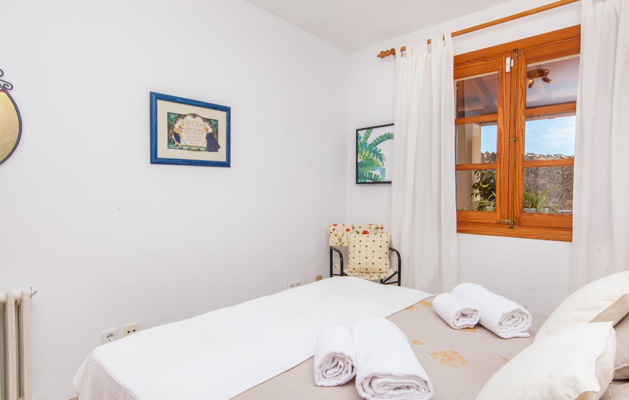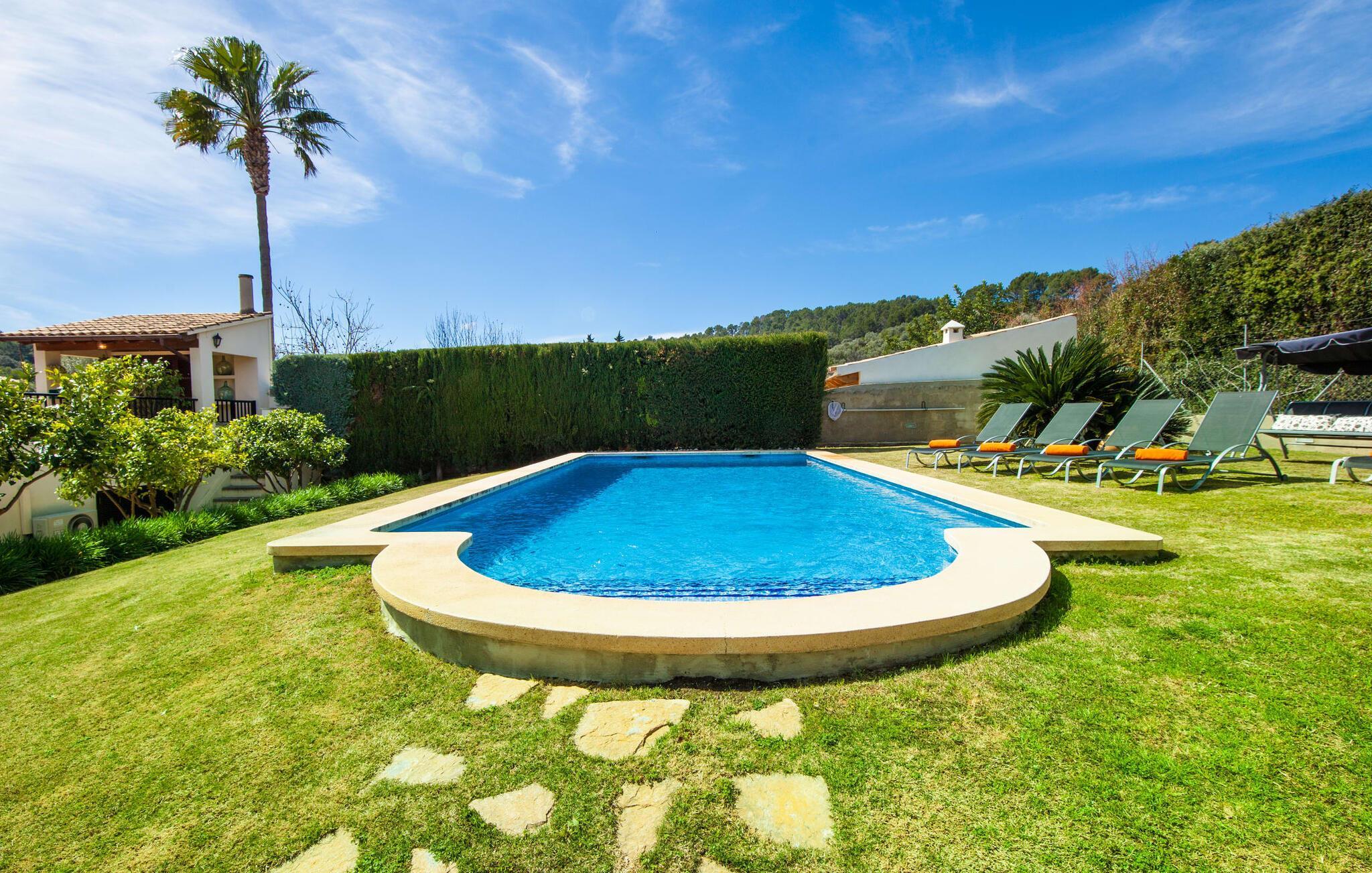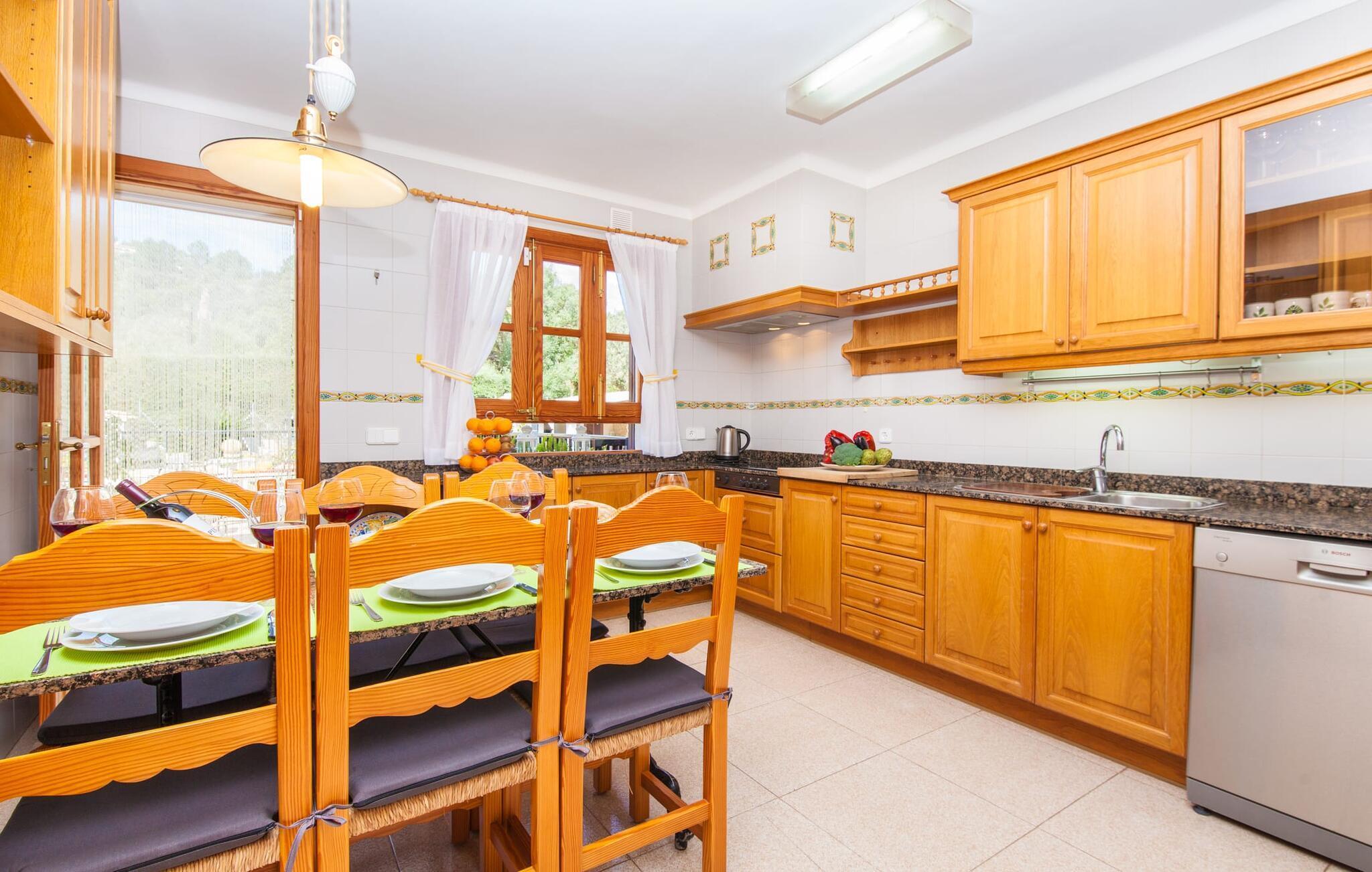 Hvis du elsker det rolige liv og naturen, men også foretrækker at lade bilen stå på ejendommen fra tid til anden, når du hurtigt skal i supermarkedet eller restauranten, så er Villa “Ca na Rosa” dit perfekte feriehus! Det smukt vedligeholdte lille hus for op til syv personer blev bygget i udkanten af det lille feriested Selva på en bakke i det landlige nord på øen. På trods af nærheden til naboerne byder det på meget privatliv. I den kærligt anlagte have med frodigt grønt og tykke hække, der beskytter dig mod nysgerrige blikke, kan du altid køle af i poolen, som også har en blid trappe. Så sug lidt D-vitamin på en af de komfortable liggestole og lad blikket vandre over de smukke grønne omgivelser bag dine solbriller. Et særligt højdepunkt er den separate overdækkede terrasse lige ved siden af poolområdet: de komfortable havemøbler inviterer dig ikke kun til ingenting, det store træbord inviterer dig også til at spise og blive hængende om aftenen og ud på natten. Dette er et Fincallorca feriehus. "Ca na Rosa de Selva" giver et lyst og venligt indtryk indeni med klassiske møbler af høj kvalitet. Talrige vinduer lukker det typiske mallorcanske lys ind, mens valget af hvide eller pastelfarvede cremefarver på væggene bidrager til den hjemlige atmosfære. Her mærker du tydeligt de kærlige detaljer i indretningen. I alle rum hænger forskellige kunstværker i hånden på væggene, lige fra sarte skitser til sort/hvide fotografier, og dekorationsgenstandene er nøje udvalgt med stor sans for stil. Opholds- og spiseområdet er i åbent plan og kun adskilt af en glasdør. I stuen finder du en lokkende polstret sofa med masser af flotte hynder samt matchende lænestole og en skammel til at sætte fødderne op. Perfekt til at se en dejlig film om aftenen eller chatte med venner over et glas vin og flimren af stearinlys ved den dekorative pejs - simpelthen vidunderligt! Lige ved siden af står et spisebord i træ, hvor du kan nyde de kulinariske lækkerier tilberedt i det højkvalitets og rummelige køkken. Men du kan også blive i køkkenet, for der er også et stort spisebord og de fleste føler sig alligevel bedst tilpas i køkkenet. Intet står i vejen for en solid morgenmad udendørs: Fra køkkenet har du direkte udgang til en stor, solrig terrasse. Omgivet af duften af rosmarin i smukke små terracotta gryder, kan du ikke kun spise herligt - en spændende bog i en af liggestolene kan måske også vække din lyst. Alle soveværelser understreger kun det helhedsindtryk, du har af dette rækkehus: De er ikke kun smukt lyse og med en vidunderlig udsigt over den omkringliggende natur, men også meget rene, velholdte og kærligt designet. Badeværelserne er ikke mindre imponerende: skinnende rene, velindrettede overalt, med store vinduer og udsøgt belysning. Dit feriehus ligger i udkanten af det maleriske feriested Selva på den nordlige del af øen. Den imponerende kulisse for den charmerende by med dens mange smukke gader, den store kirke ved Plaça Major og de mange smukke huse er Tramuntana-bjergene. Masseturismen har næsten ikke fået fat i Selva, så du kan stadig opleve et lille stykke autentisk mallorcinsk liv. Du må under ingen omstændigheder gå glip af det ugentlige marked om onsdagen, som indbyder til at slentre rundt - der finder du naturligvis frisk frugt, grøntsager og andre delikatesser, men også blomster, tøj og lokalt kunsthåndværk. Ønsker du et større udvalg af butikker, restauranter og caféer, skal du blot køre fra Selva til Inca – Mallorcas tredjestørste by ligger kun 6,5 km væk. Nordsiden af Tramuntana-bjergene byder på uberørt natur, som nemt kan nås til fods eller på cykel fra Selva. Stranden og havet kan nås på kun 35 minutter i bil i Alcúdia. I udkanten af den maleriske Villa Selva, i den nordlige del af Mallorca, kan du tilbringe en ferie på landet i den velholdte "Ca na Rosa de Selva" - og nyde alle de faciliteter, som et feriested har at byde på. Bygget på en lille bakke byder det lille hus på masser af privatliv og er den perfekte base for gåture ind i byen samt udforske de landlige omgivelser. Alcúdia-stranden ligger cirka 33 km væk med din udlejningsbil.