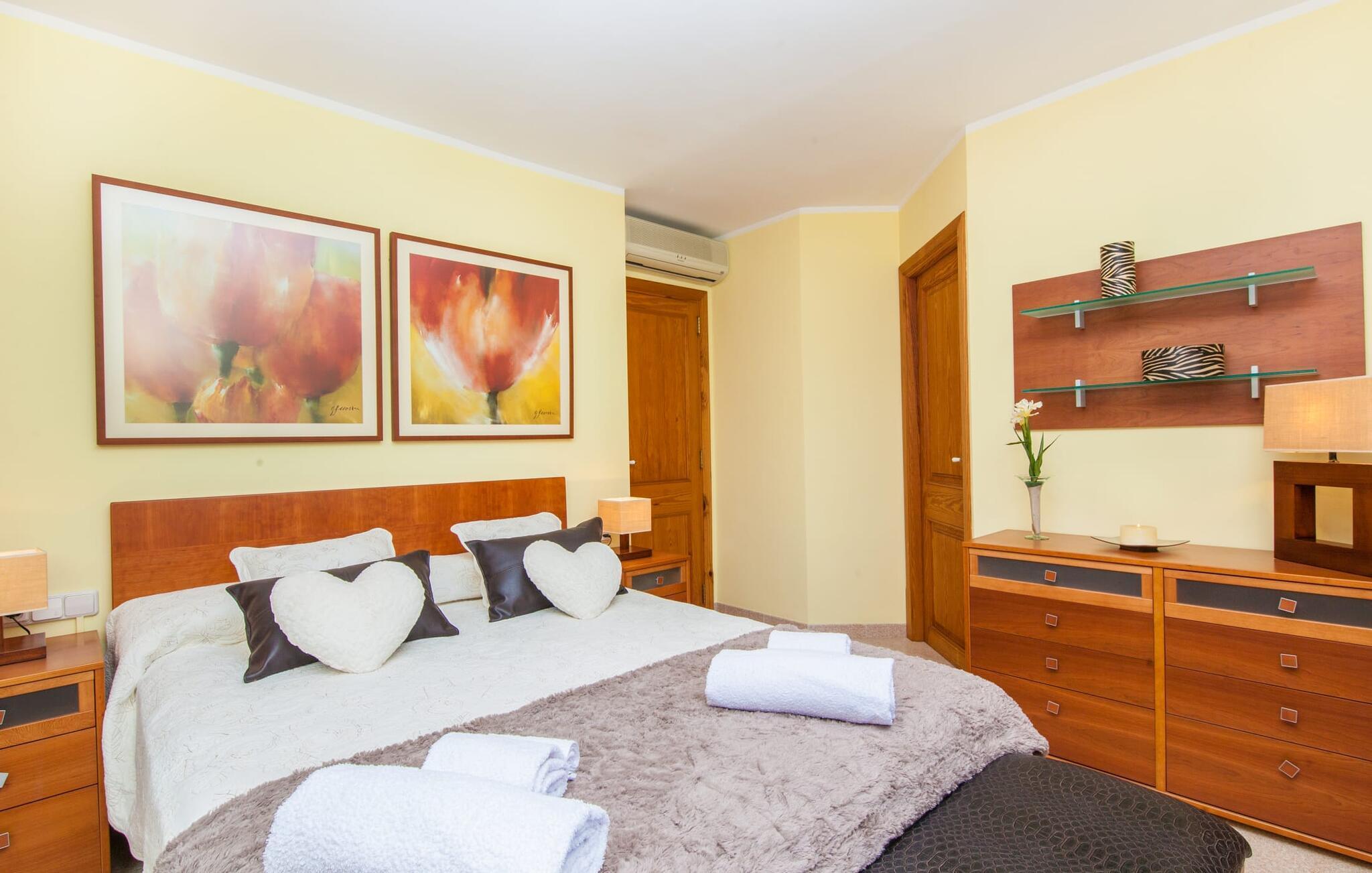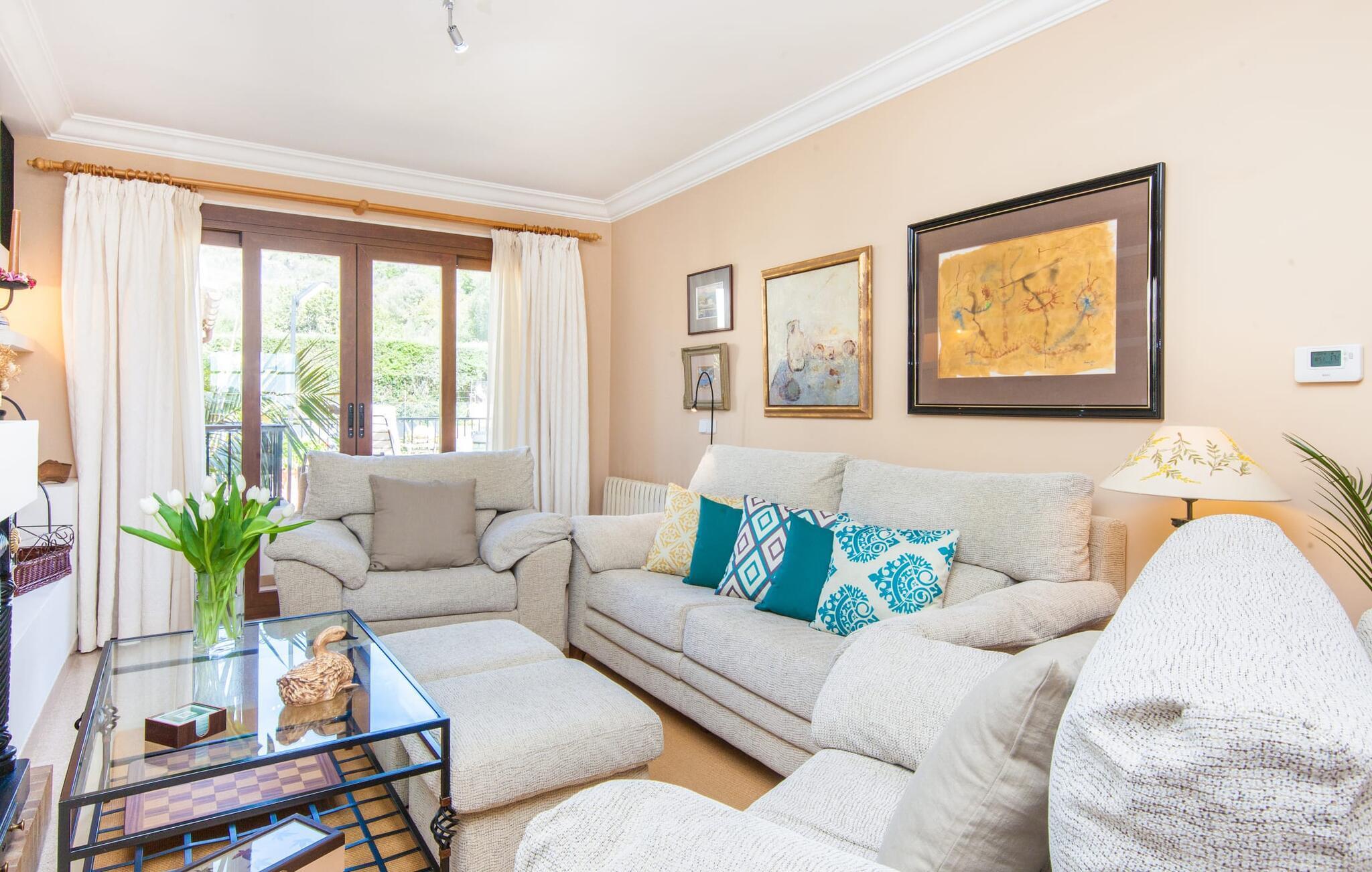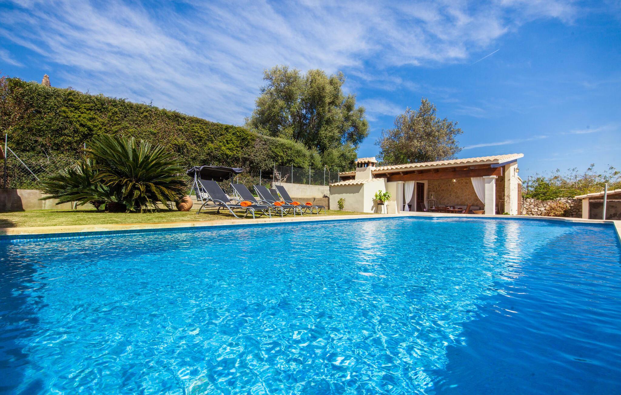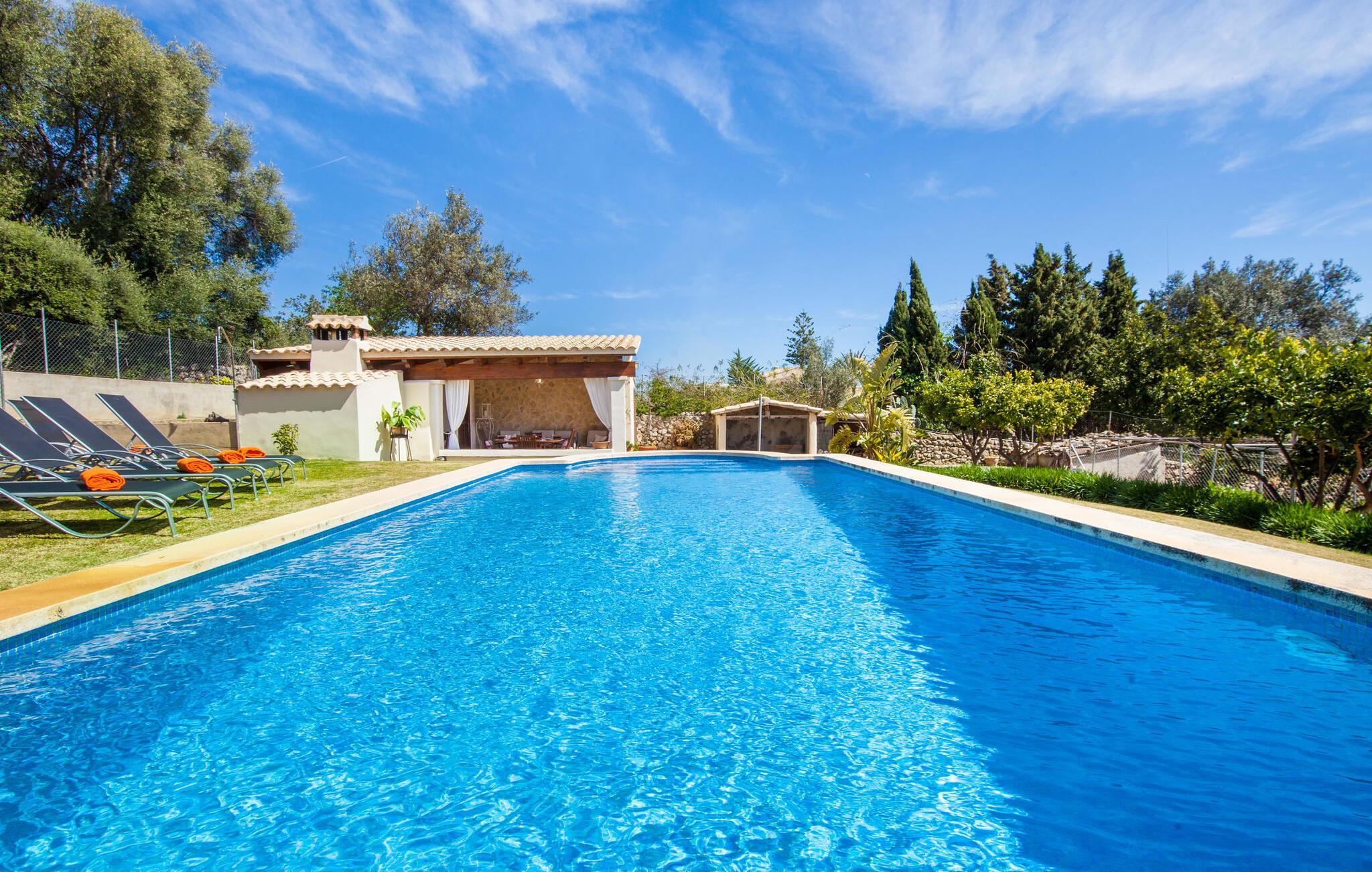 Hvis du elsker det rolige liv og naturen, men også foretrækker at lade bilen stå på ejendommen fra tid til anden, når du hurtigt skal i supermarkedet eller restauranten, så er Villa “Ca na Rosa” dit perfekte feriehus! Det smukt vedligeholdte lille hus for op til syv personer blev bygget i udkanten af det lille feriested Selva på en bakke i det landlige nord på øen. På trods af nærheden til naboerne byder det på meget privatliv. I den kærligt anlagte have med frodigt grønt og tykke hække, der beskytter dig mod nysgerrige blikke, kan du altid køle af i poolen, som også har en blid trappe. Så sug lidt D-vitamin på en af de komfortable liggestole og lad blikket vandre over de smukke grønne omgivelser bag dine solbriller. Et særligt højdepunkt er den separate overdækkede terrasse lige ved siden af poolområdet: de komfortable havemøbler inviterer dig ikke kun til ingenting, det store træbord inviterer dig også til at spise og blive hængende om aftenen og ud på natten. Dette er et Fincallorca feriehus. "Ca na Rosa de Selva" giver et lyst og venligt indtryk indeni med klassiske møbler af høj kvalitet. Talrige vinduer lukker det typiske mallorcanske lys ind, mens valget af hvide eller pastelfarvede cremefarver på væggene bidrager til den hjemlige atmosfære. Her mærker du tydeligt de kærlige detaljer i indretningen. I alle rum hænger forskellige kunstværker i hånden på væggene, lige fra sarte skitser til sort/hvide fotografier, og dekorationsgenstandene er nøje udvalgt med stor sans for stil. Opholds- og spiseområdet er i åbent plan og kun adskilt af en glasdør. I stuen finder du en lokkende polstret sofa med masser af flotte hynder samt matchende lænestole og en skammel til at sætte fødderne op. Perfekt til at se en dejlig film om aftenen eller chatte med venner over et glas vin og flimren af stearinlys ved den dekorative pejs - simpelthen vidunderligt! Lige ved siden af står et spisebord i træ, hvor du kan nyde de kulinariske lækkerier tilberedt i det højkvalitets og rummelige køkken. Men du kan også blive i køkkenet, for der er også et stort spisebord og de fleste føler sig alligevel bedst tilpas i køkkenet. Intet står i vejen for en solid morgenmad udendørs: Fra køkkenet har du direkte udgang til en stor, solrig terrasse. Omgivet af duften af rosmarin i smukke små terracotta gryder, kan du ikke kun spise herligt - en spændende bog i en af liggestolene kan måske også vække din lyst. Alle soveværelser understreger kun det helhedsindtryk, du har af dette rækkehus: De er ikke kun smukt lyse og med en vidunderlig udsigt over den omkringliggende natur, men også meget rene, velholdte og kærligt designet. Badeværelserne er ikke mindre imponerende: skinnende rene, velindrettede overalt, med store vinduer og udsøgt belysning. Dit feriehus ligger i udkanten af det maleriske feriested Selva på den nordlige del af øen. Den imponerende kulisse for den charmerende by med dens mange smukke gader, den store kirke ved Plaça Major og de mange smukke huse er Tramuntana-bjergene. Masseturismen har næsten ikke fået fat i Selva, så du kan stadig opleve et lille stykke autentisk mallorcinsk liv. Du må under ingen omstændigheder gå glip af det ugentlige marked om onsdagen, som indbyder til at slentre rundt - der finder du naturligvis frisk frugt, grøntsager og andre delikatesser, men også blomster, tøj og lokalt kunsthåndværk. Ønsker du et større udvalg af butikker, restauranter og caféer, skal du blot køre fra Selva til Inca – Mallorcas tredjestørste by ligger kun 6,5 km væk. Nordsiden af Tramuntana-bjergene byder på uberørt natur, som nemt kan nås til fods eller på cykel fra Selva. Stranden og havet kan nås på kun 35 minutter i bil i Alcúdia. I udkanten af den maleriske Villa Selva, i den nordlige del af Mallorca, kan du tilbringe en ferie på landet i den velholdte "Ca na Rosa de Selva" - og nyde alle de faciliteter, som et feriested har at byde på. Bygget på en lille bakke byder det lille hus på masser af privatliv og er den perfekte base for gåture ind i byen samt udforske de landlige omgivelser. Alcúdia-stranden ligger cirka 33 km væk med din udlejningsbil.