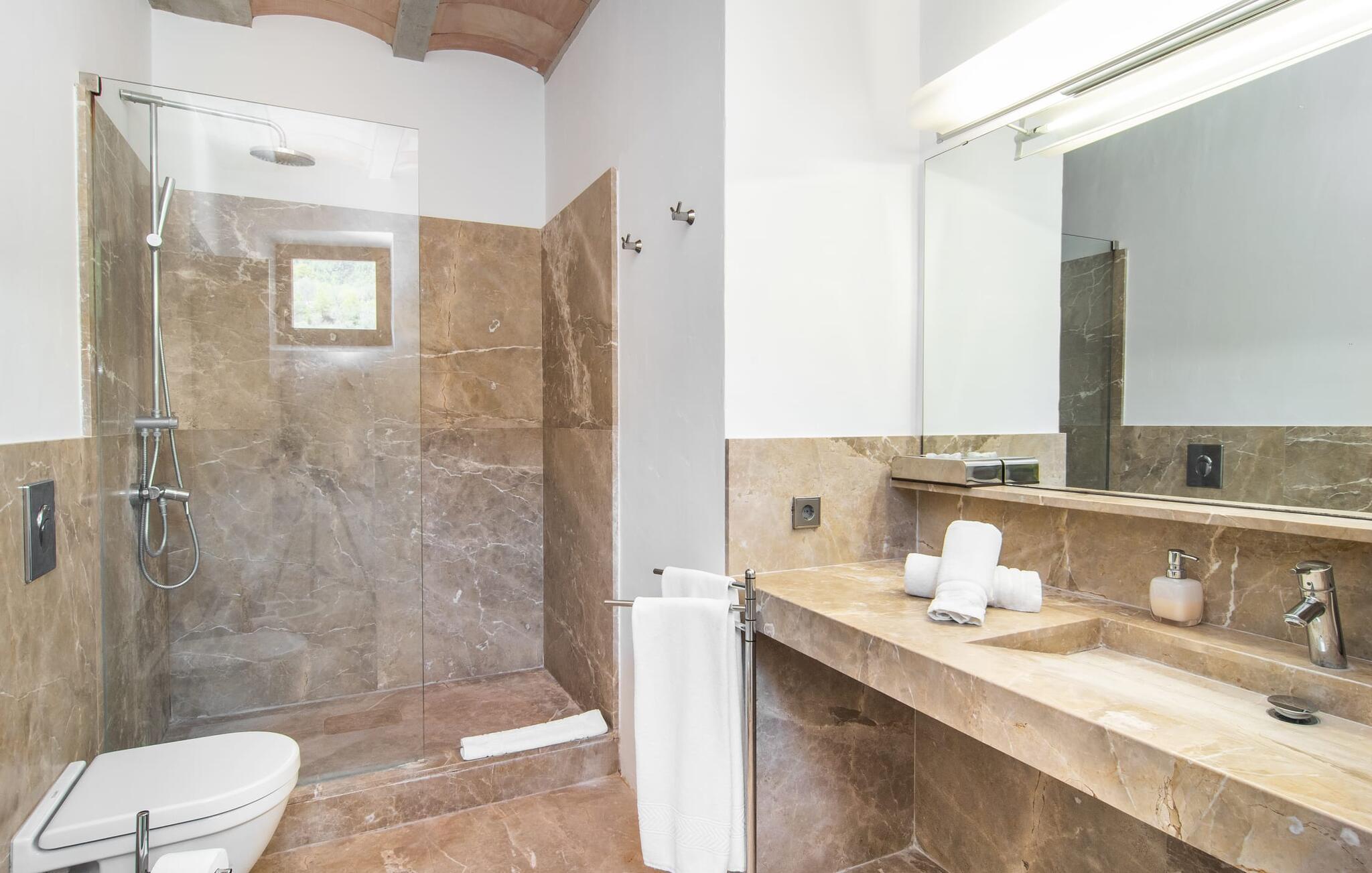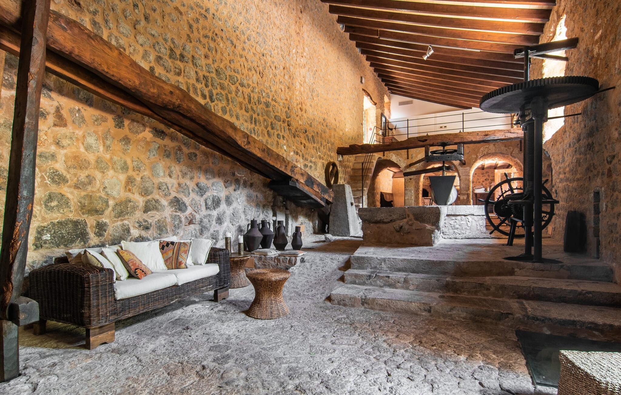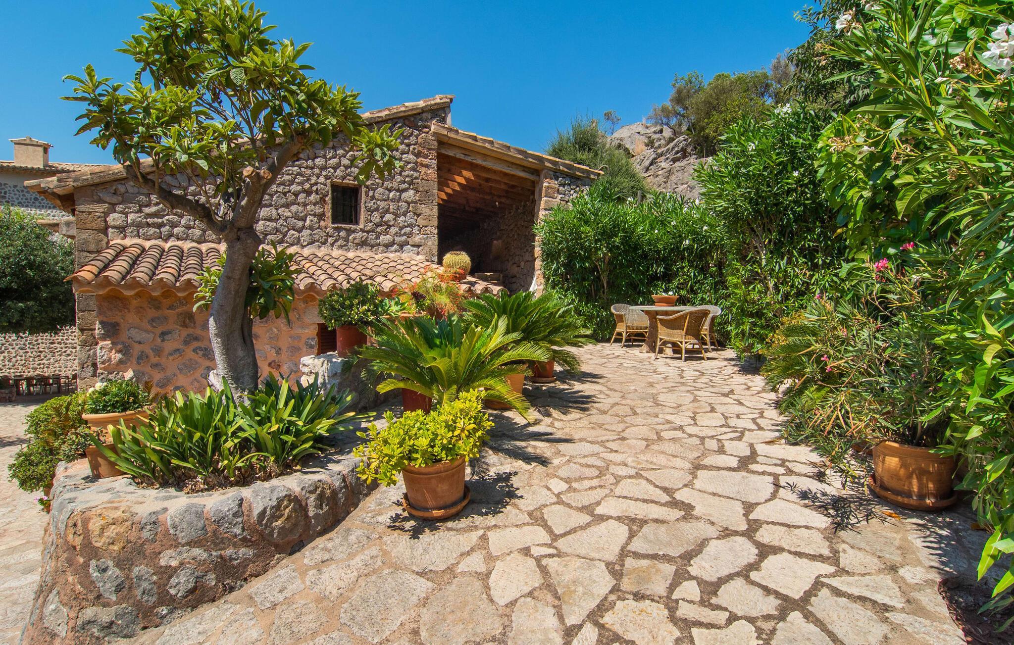 Kunne du tænke dig at tilbringe en uforglemmelig ferie med familie og venner? Det vidunderligt smukke og fantastisk beliggende bondehus “Ca S'Hereu del Puerto de Soller” i den nordvestlige del af Mallorca kan rumme op til tolv personer. Naturstensejendommen med den integrerede gamle oliemølle er ikke kun meget rummelig, men også rigtig smuk. Stuehuset blev totalrenoveret med stor indsats og smag og kombinerer i dag perfekt moderne komfort med traditionelle detaljer. Enhver, der elsker deres privatliv, er kommet til det rigtige sted, stuehuset ligger i en absolut rolig, landlig sydlig og afsondret beliggenhed. Der er forskellige meget velholdte terrasseområder rundt om huset - der er også tagterrasse - til afslapning. Hvis du har lyst, kan du spille et spil bordtennis eller tage en dukkert i poolen og nyde den unikke udsigt over de omkringliggende grønne bakker. Du kan også tage afslappende gåture på den enorme ejendom med terrassehave og måske tage et kig på din egen appelsinlund. Du kan parkere din lejebil direkte ved huset på grusparkeringspladsen eller under den skyggefulde carport. Et bondehus på Mallorca som noget ud af en billedbog - eller fra et blankt boligmagasin: naturstensgulve og -vægge overalt, kombineret med masser af hvide og naturlige farver, typiske mallorcanske antikke møbler, med en masse stil, suppleret med enkle, moderne designer stykker og smart placerede lamper, der bringer alt til sit bedste, flytter lyset. Huset strækker sig over 1. sal og har i alt tre overetager. Et særligt træk: et par trin fører ned fra første sal. Der er flere rum hugget ind i klippen, hvoraf nogle stadig indeholder elementer fra den gamle oliemølle - i dag et behageligt sted at læse og slappe af. De diskret og smagfuldt designede soveværelser, hver med luksuriøse en-suite badeværelser, er fordelt på de tre øverste etager. På første og tredje sal inviterer rummelige køkkener udstyret med højkvalitetsapparater til at lave mad og spise sammen. På anden og tredje sal er der desuden to store stuer med indbydende sofaer og fjernsyn. For at holde denne smukke ejendom i top stand arbejder gartnere og viceværter så diskret som muligt i flere timer næsten hver dag. Det stilfuldt renoverede bondehus "Ca S'Hereu del Puerto de Soller" ligger i en absolut rolig nordvestlig beliggenhed, kun 3 km fra Port de Sóller og dens strand i den nordvestlige del af Mallorca. Fra din kæmpe ejendom med pool, terrasser og din egen appelsinlund kan du nyde en vidunderlig udsigt over det bakkede landskab. Dette er et Fincallorca feriehus.