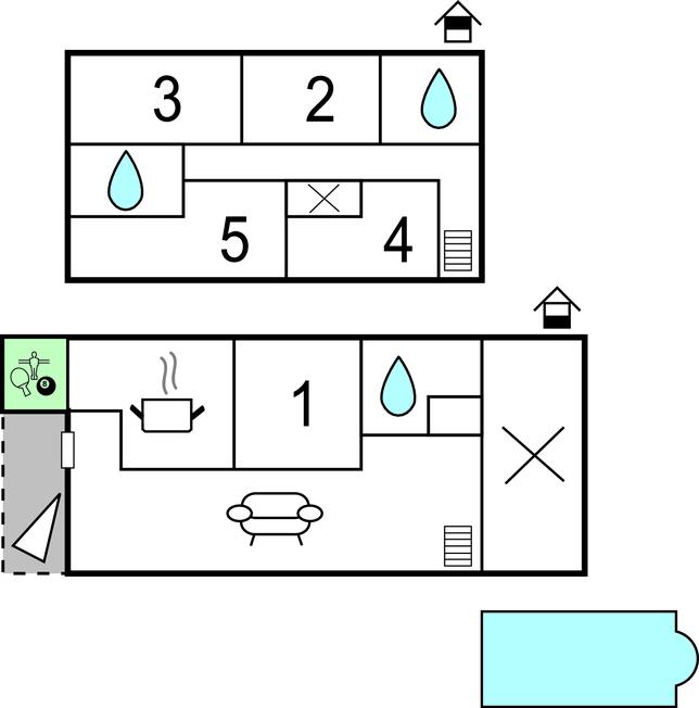 Soveværelse 20m2 (nr. 5) - 2 Sovepladser. (Enkeltseng(e)). 2 Sovepladser. (Etageseng(e)).