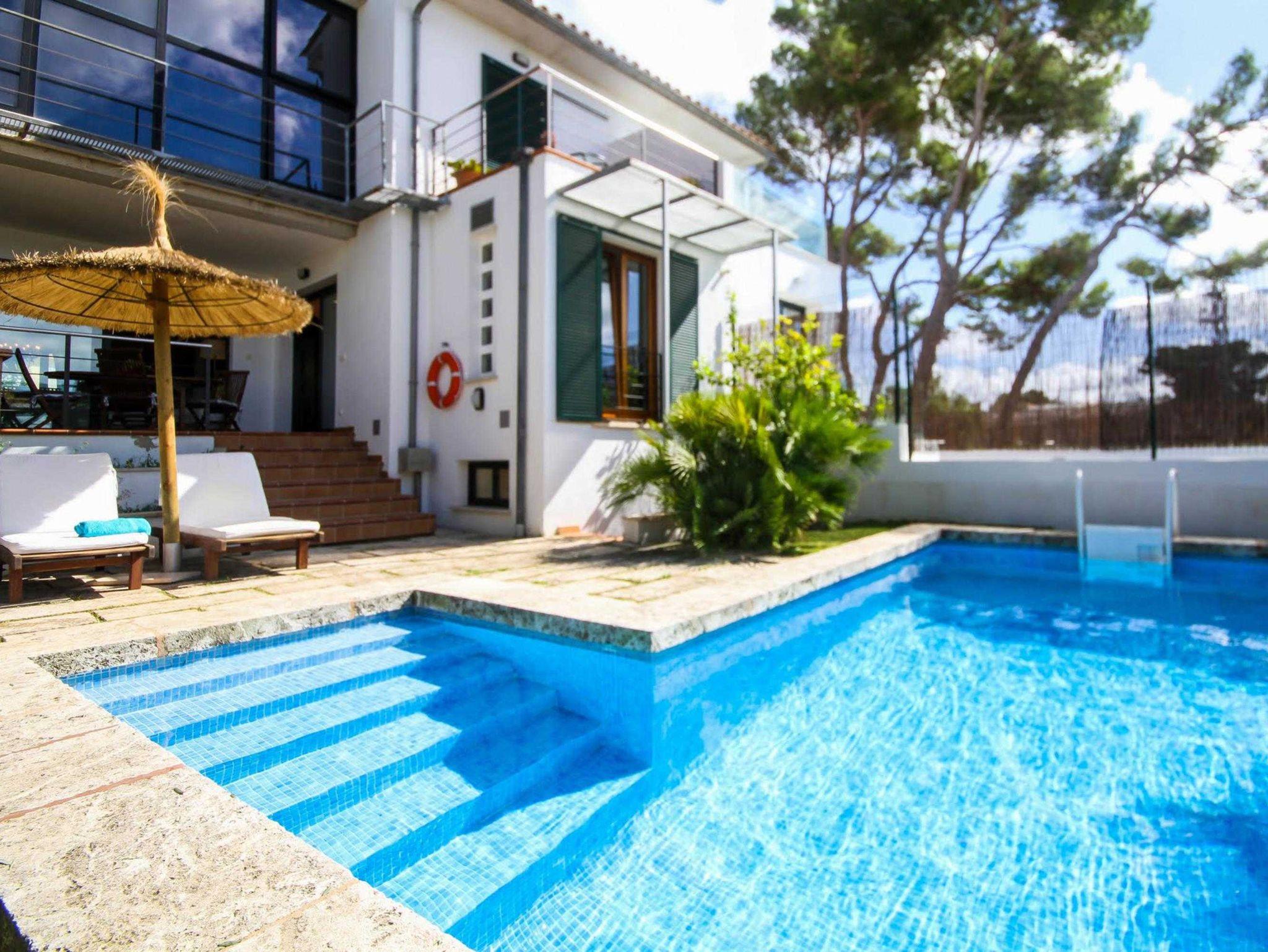 Moderne Villa Baulo Pleta: Mit gut 300qm Nutzfläche, Terrassen, Pool und dem 600 qm großen, sehr schönen Garten bietet diese moderne, helle Villa aus dem Jahr 2008 ausreichend Platz für bis zu 8 Personen. Am Rande des Villenviertels „Son Baulo“ gelegen hat das Grundstück direkten Anschluss an unbebaute Natur und ist sehr ruhig. Die Lage bedient in idealer Weise die Bedürfnisse einer Familie mit jugendlichen Kindern. Trotz der Ruhe ist der nächste Strand in wenigen Minuten zu Fuß erreichbar, in gleicher Entfernung finden sich auch einige Bars, Eiskaffees und Restaurants sowie kleinere Supermärkte für den Einkauf zwischendurch. Am Abend lockt dann Can Picafort mit einem sehr umfangreichen Angebot.