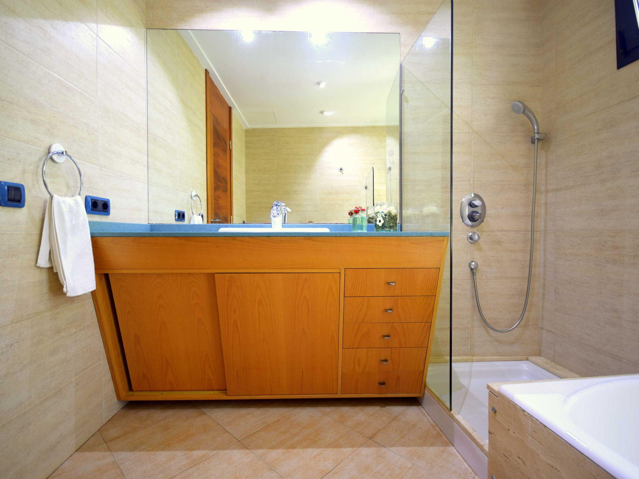 Moderne Villa Baulo Pleta: Die Ausstattung des Hauses ist komplett, selbstverständlich sind die kleinen Helfer wie Geschirrspüler & Waschmaschine vorhanden. Mit 4 Schlafzimmern und 3 Bädern , davon eines en suite bietet das Haus Platz für bis zu 8 Personen. Die Schlafzimmer und das Wohnzimmer sind klimatisiert. Die Mischung aus modernen Stilelementen und hochwertigen Antiquitäten ergibt eine angenehme Wohlfühlatmosphäre.