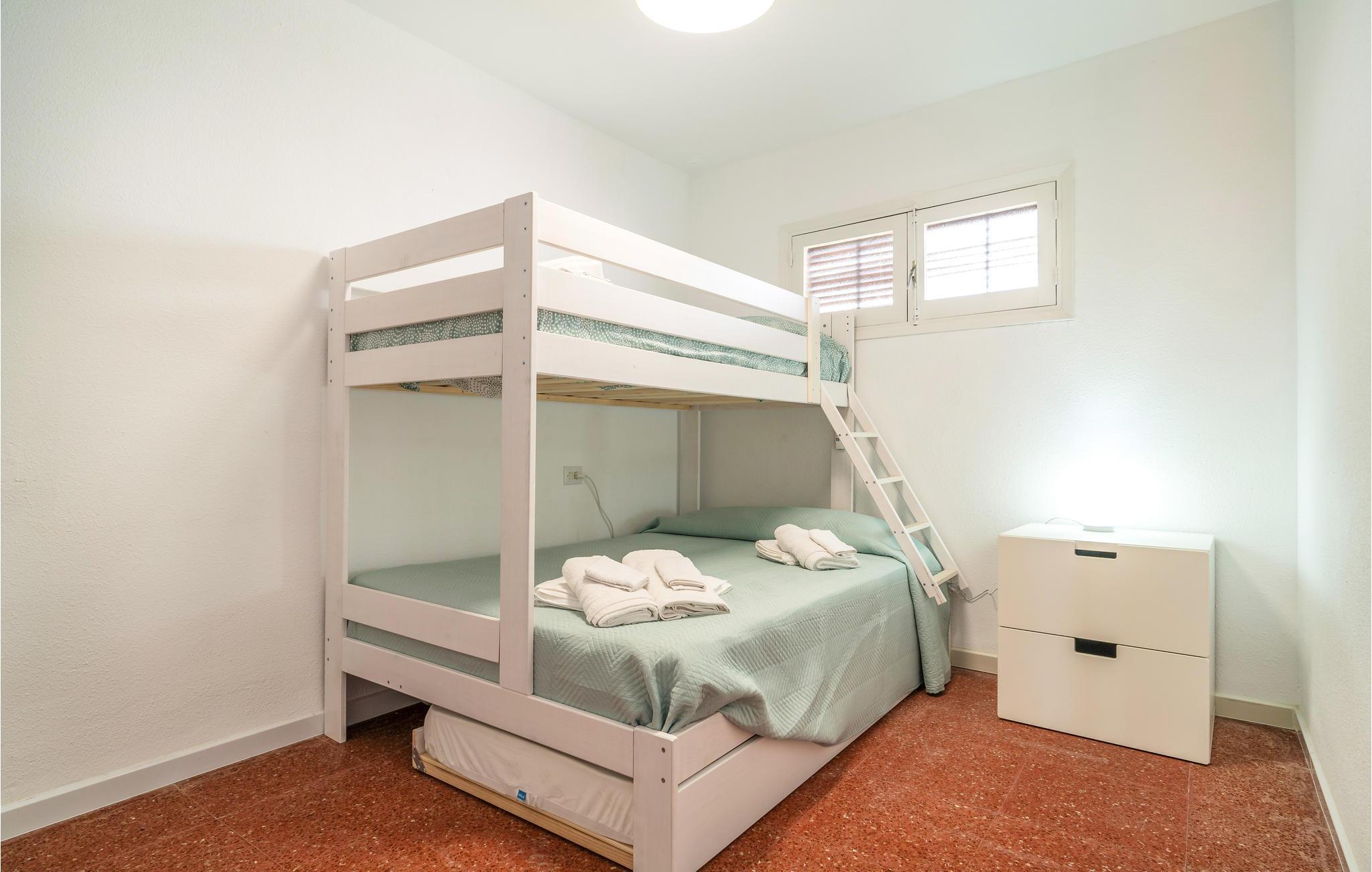 Soveværelse (nr. 2) - 1 Soveplads. (Enkeltseng(e)). 2 Sovepladser. (Dobbeltseng(e)). 1 Soveplads. (Etageseng(e)).