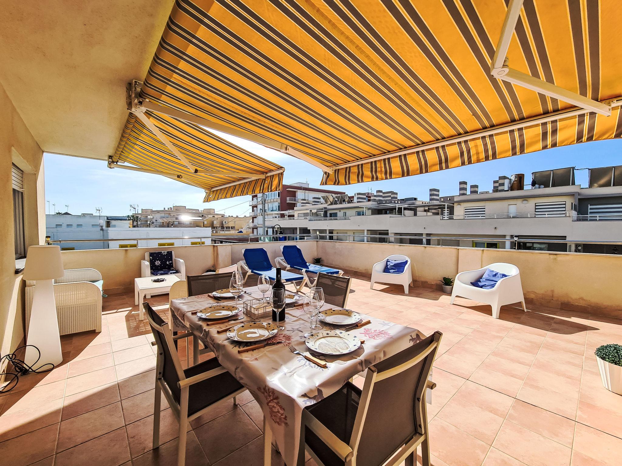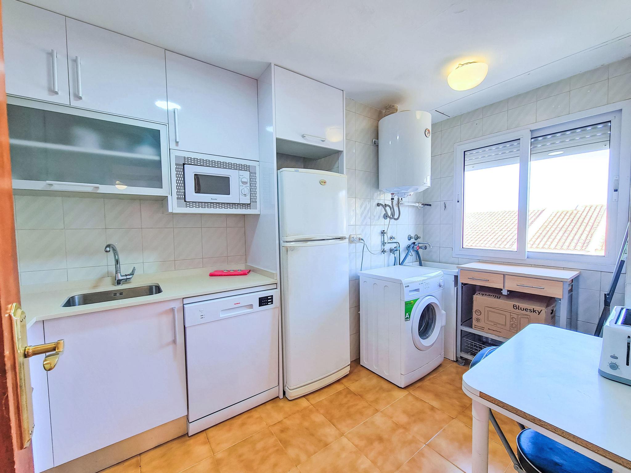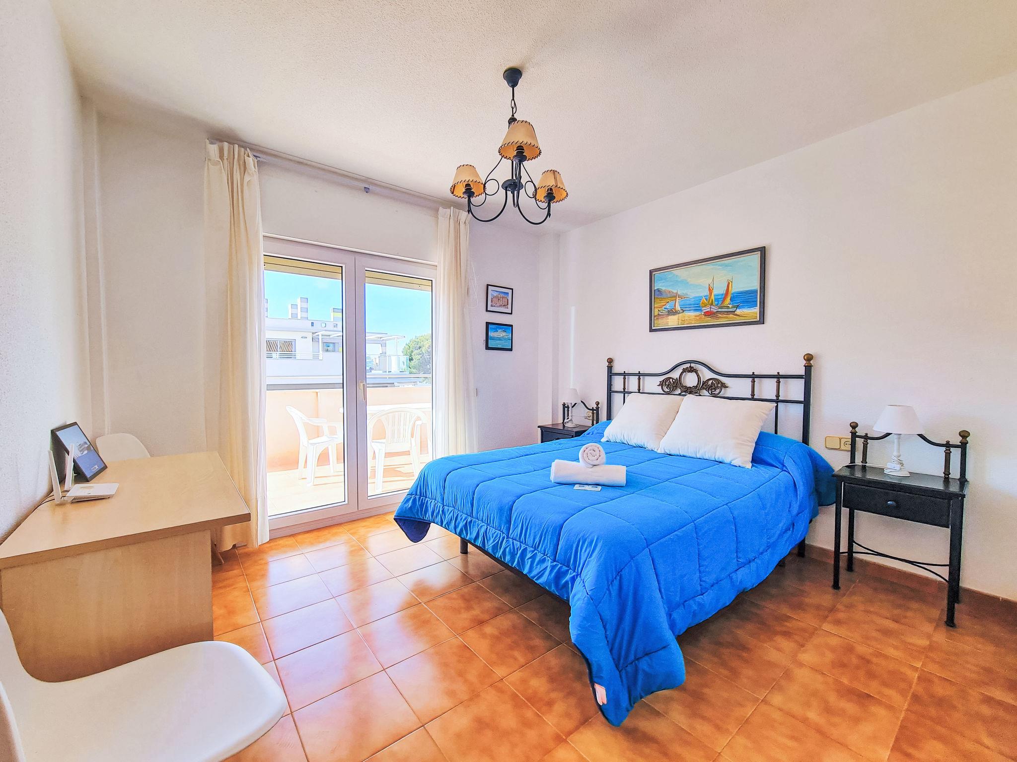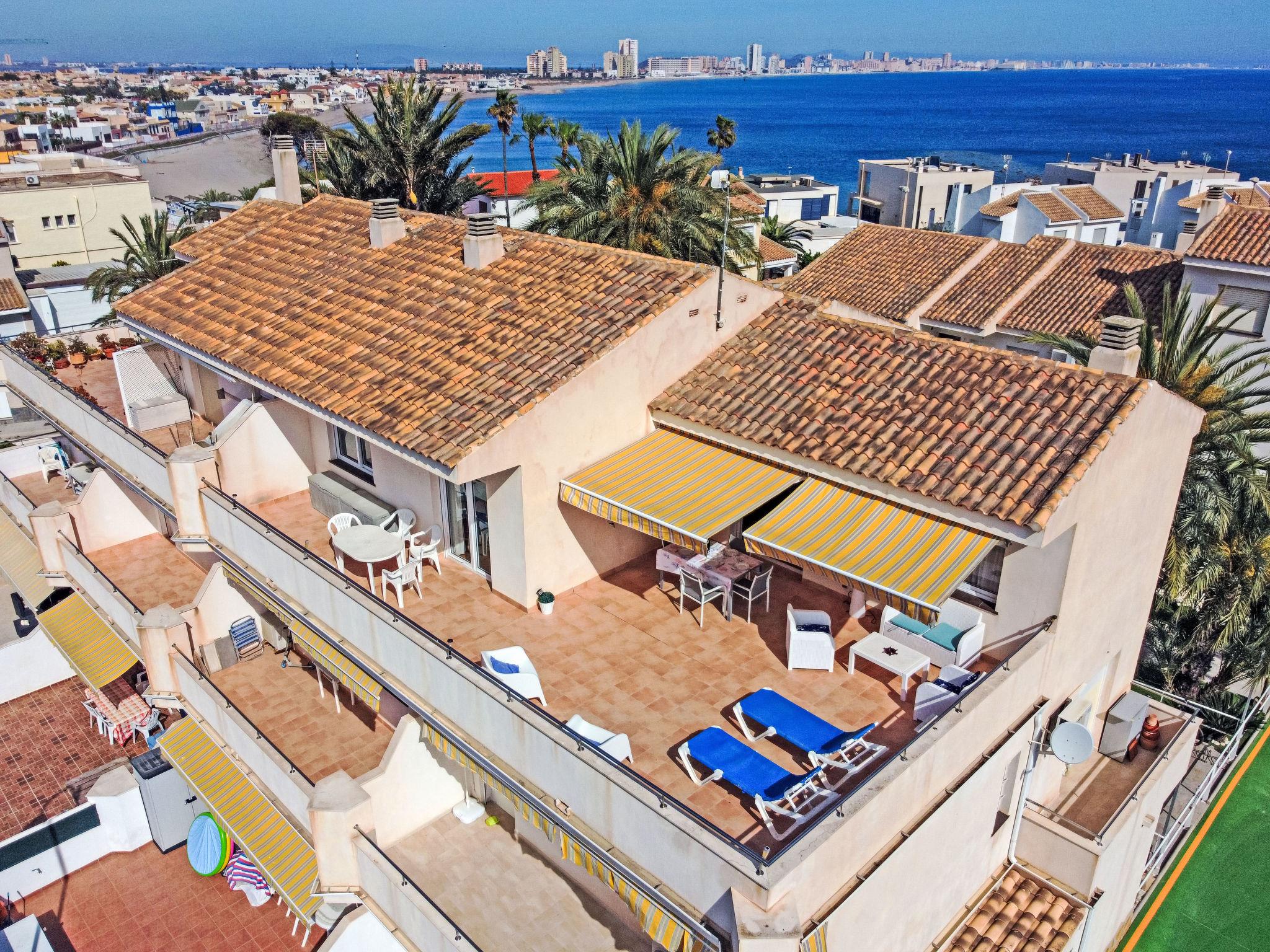 "La Galera - Cabo de Palos", 4-room penthouse 105 m2 on 3rd floor. Practical and comfortable furnishings: large living/dining room with open-hearth fireplace, dining table, digital TV, flat screen and fan. Exit to the terrace. 1 room with 1 french bed (150 cm, length 190 cm). Exit to the terrace. 2 rooms, each room with 2 beds (90 cm, length 190 cm). Kitchen (oven, dishwasher, 3 ceramic glass hob hotplates, toaster, kettle, microwave, freezer, electric coffee machine). Shower/bidet/WC. Electric heating. Large terrace 60 m2. Terrace furniture, deck chairs (2). Distant view of the sea. Facilities: washing machine, iron, hair dryer. Internet (WiFi, free). Parking (roofed, fenced) at the house. Please note: non-smokers only. VV.MU.7845 // Reg. Nr.: ESFCTU00000300090002873510000000000000000MU.7845