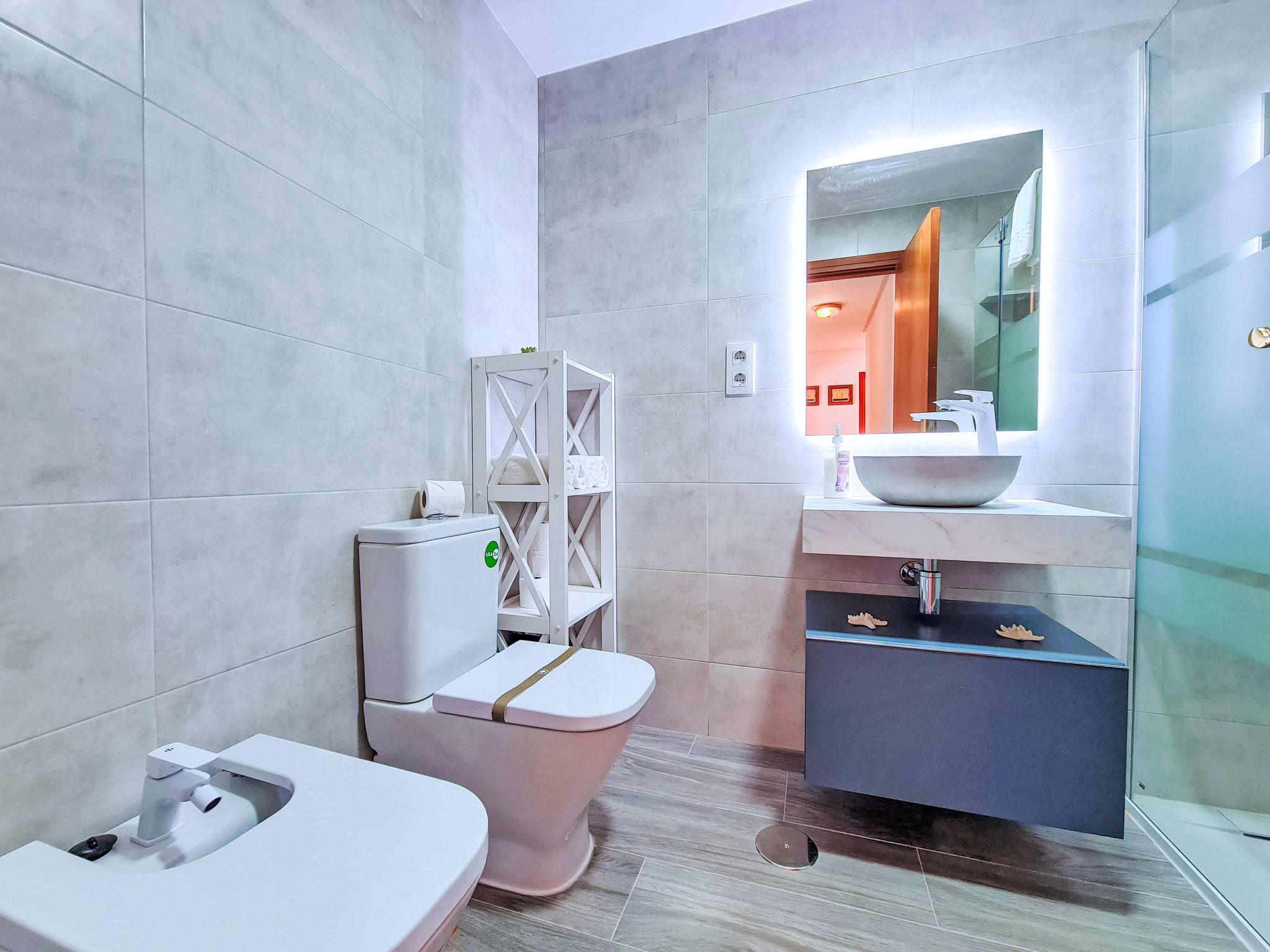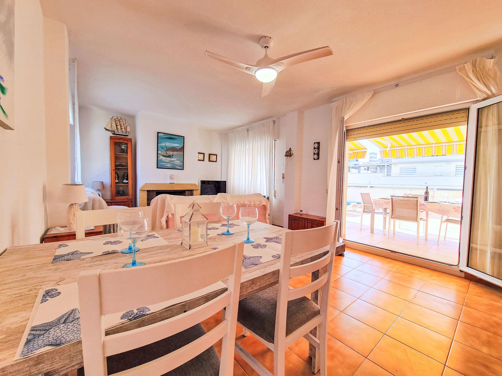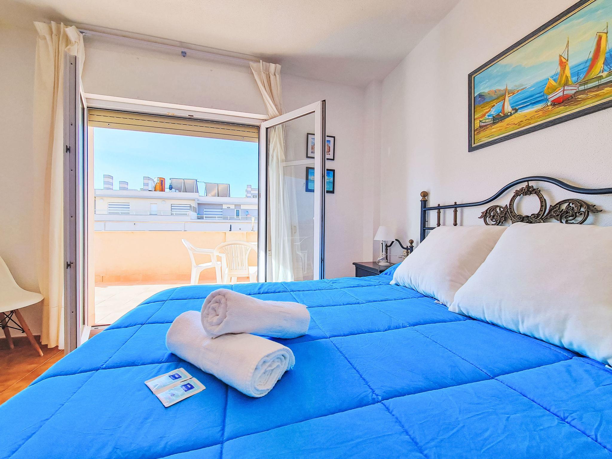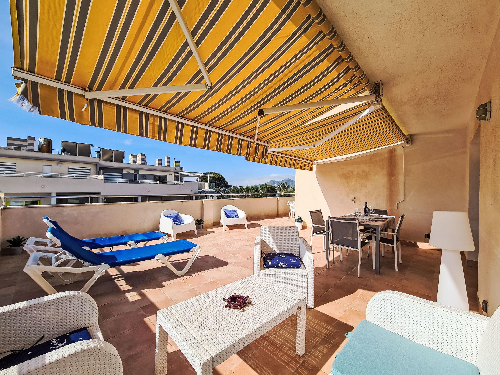"La Galera - Cabo de Palos", 4-room penthouse 105 m2 on 3rd floor. Practical and comfortable furnishings: large living/dining room with open-hearth fireplace, dining table, digital TV, flat screen and fan. Exit to the terrace. 1 room with 1 french bed (150 cm, length 190 cm). Exit to the terrace. 2 rooms, each room with 2 beds (90 cm, length 190 cm). Kitchen (oven, dishwasher, 3 ceramic glass hob hotplates, toaster, kettle, microwave, freezer, electric coffee machine). Shower/bidet/WC. Electric heating. Large terrace 60 m2. Terrace furniture, deck chairs (2). Distant view of the sea. Facilities: washing machine, iron, hair dryer. Internet (WiFi, free). Parking (roofed, fenced) at the house. Please note: non-smokers only. VV.MU.7845 // Reg. Nr.: ESFCTU00000300090002873510000000000000000MU.7845