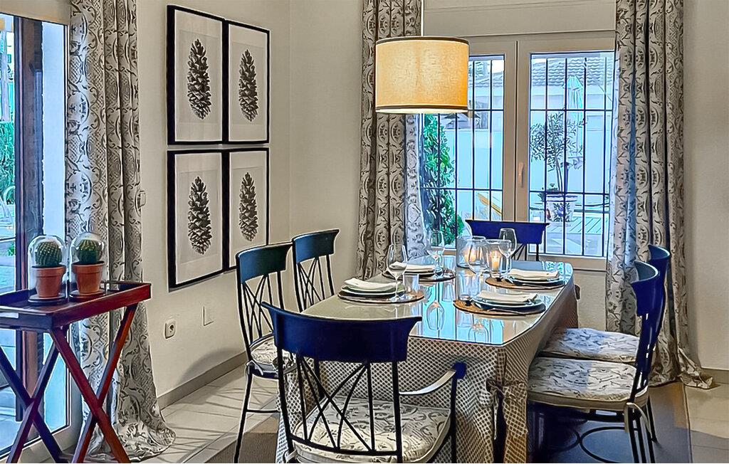 Dette smagfuldt indrettede feriehus i Cabo Roig byder på en indbydende og hyggelig atmosfære, der er perfekt til uforglemmelige øjeblikke med jeres nærmeste. Det komfortable opholdsområde med brændeovn lægger op til afslapning, mens det veludstyrede køkken og den rummelige spisestue skaber rammerne for hyggelige måltider. Tilbring afslappede stunder på terrasserne, i den velholdte have eller tag en forfriskende dukkert i swimmingpoolen – ideelt til solrige dage og lune aftener.