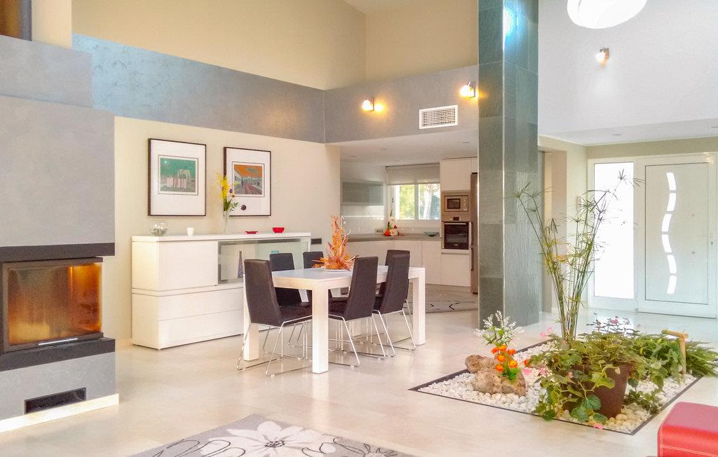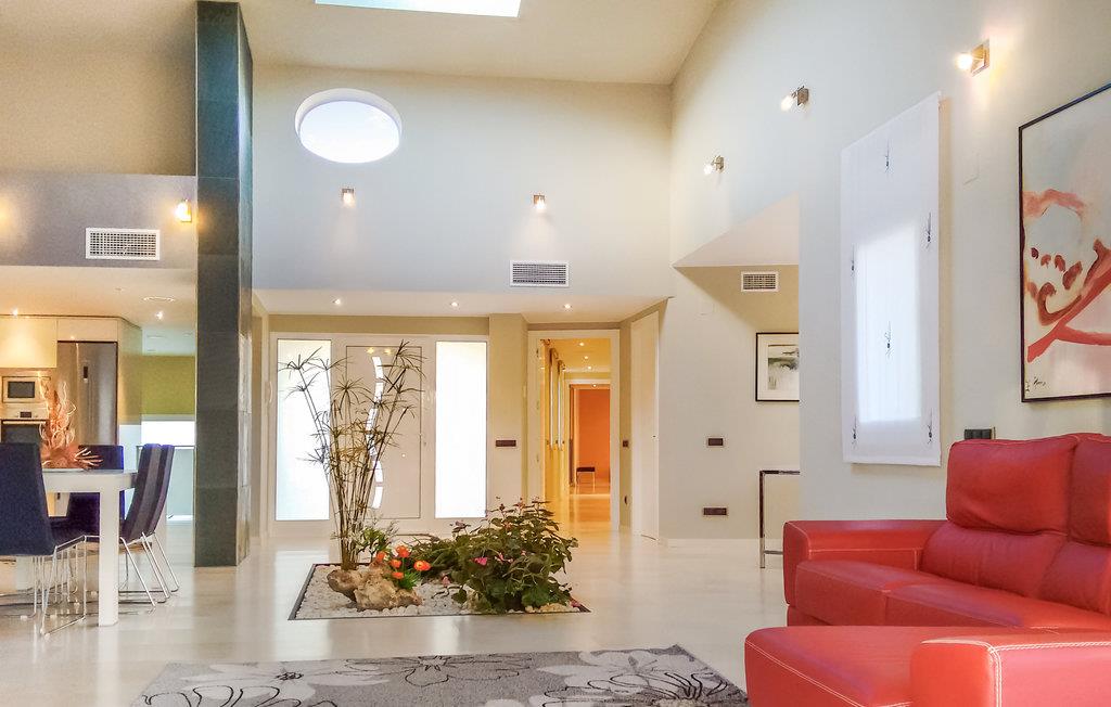 Træd ind i et rummeligt feriehus med højt til loftet og moderne møbler. Her kan du finde dig godt tilpas og eventuelt spise morgenmad udenfor, spille kort ved det store spisebord eller grille sammen på den overdækkede terrasse. Der er også en udendørs pool til rådighed, hvor du kan tage dejlige dukkerter.