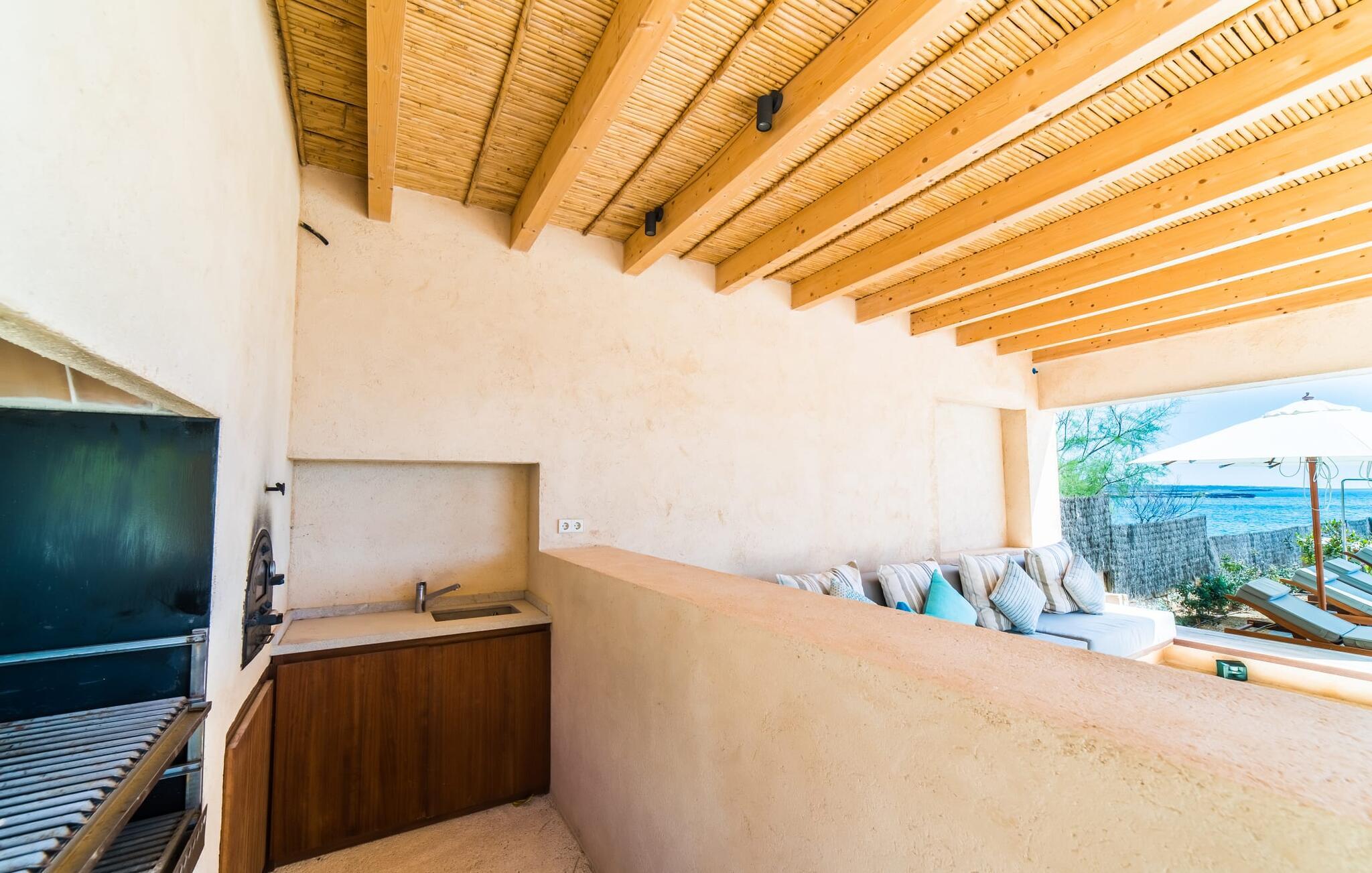 "Cabrera" - er det ikke sommerkærlighed ved første blik? Har I lyst til at smutte ind til byen, til Martas originale havnerestaurant eller i et supermarked for at fylde køleskabet? Aktive feriegæster, der elsker vandsport eller har lyst til at træne, som nyder at vandre, cykle og opleve ren natur får et fantastisk ophold her. Det samme gælder par, som kan se frem til en uforglemmelig ferie for to med denne topplacering. Hvis I ikke har noget imod at betale lidt ekstra for en uvurderlig beliggenhed, skal I se nærmere på dette lille, kubeformede strandhus. Det udendørs loungeområde med 11 meter lang pool, solterrasse og chill-out grillområde er større end interiøret, men hvem vil gå glip af et minut med denne sensationelle udsigt og den eksklusive følelse af at bo tæt ved vandet?