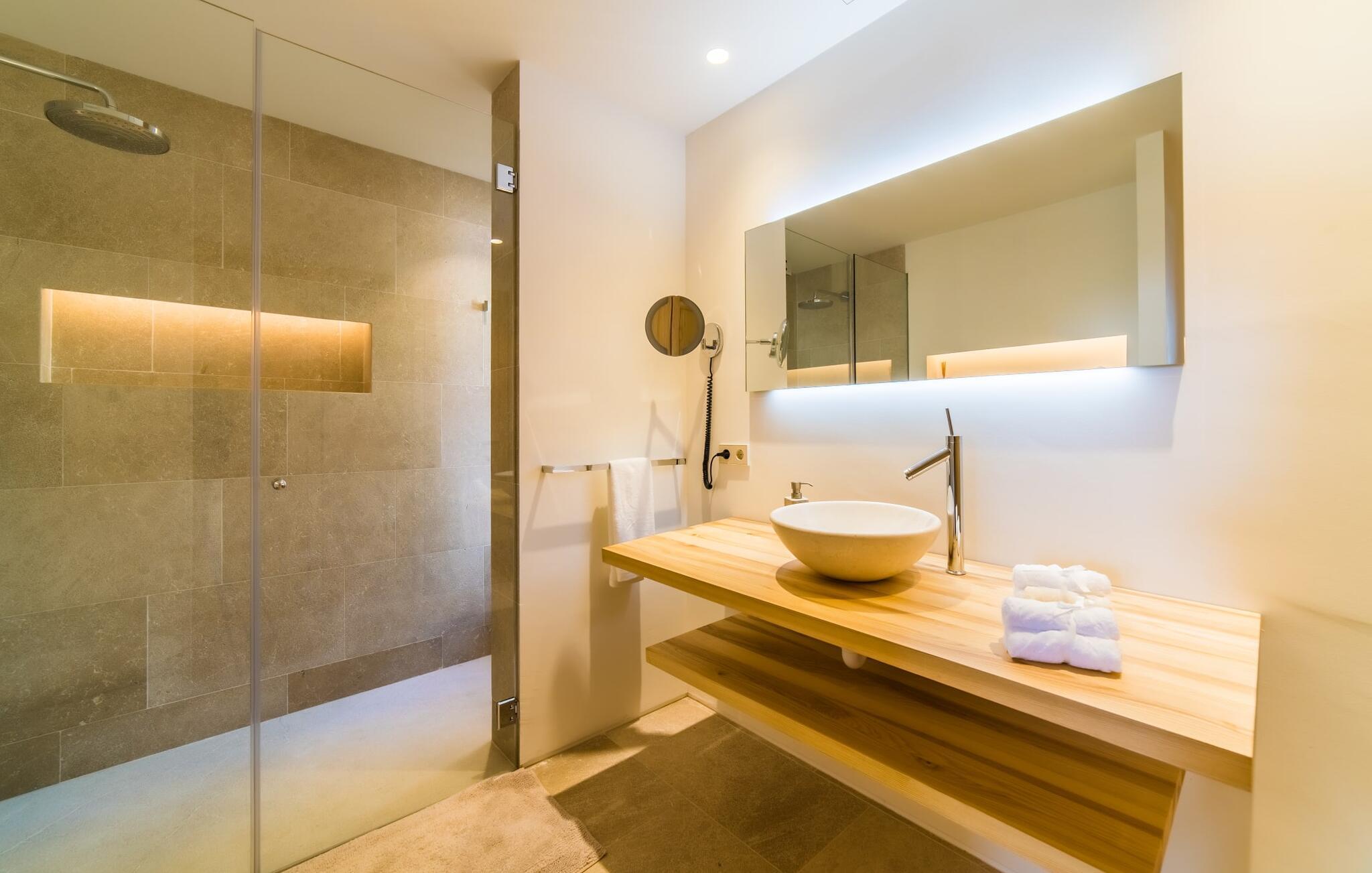 “Villa Cabrera” fordeler sig over 50 m² bag luftige gardiner – der er selvfølgelig også en dør. I kan også tage den afslappede strandfølelse med indendørs, hvor strandens og havets farver pryder væggene, bambusstolen og sofaen med behagelige hynder inviterer til en pause med aircondition. Det elegante, åbne køkken er også tæt på, hvis I har lyst til at lave en salat eller kaffe - og selvfølgelig for at få endnu en omgang drinks fra køleskabet. Men når I nu har så mange gode restauranter i nærheden og måske holder af frisk fisk, vil I måske forkæle jer selv med en aften i byen. Der er også en dobbeltseng med eget fjernsyn og udsigt over havet mod den elegante kulisse af et værelse indrettet med mange forskellige træsorter. Det meget moderne en-suite badeværelse har ingen vinduer, men der er et godt lys fra lamperne. Og bliver det for livligt i strandhuset, sørger gulvvarmen hurtigt for hyggelig varme.