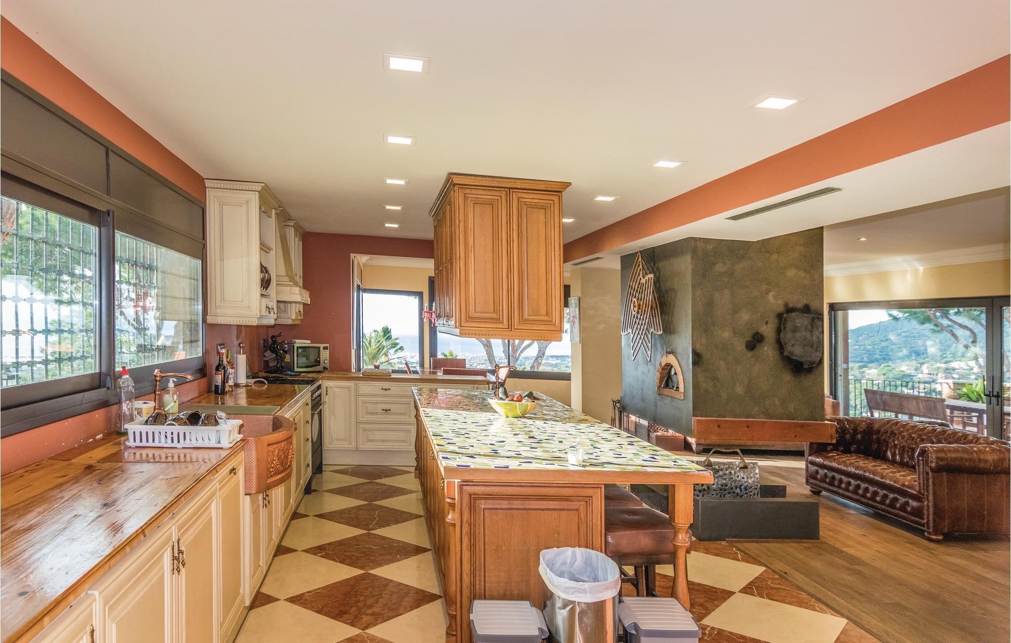 På første sal er der et yderligere stort soveværelse med dobbeltseng. Huset ligger i en pragtfuld mediterran have, hvor der er en stor privat pool og en dejlig terrasse - alt sammen med en fantastisk udsigt over havet.