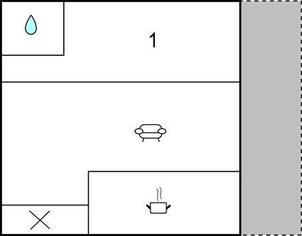 Opholdsstue 25m2 - 2 Sovepladser. (Sofa, madras eller lignende).