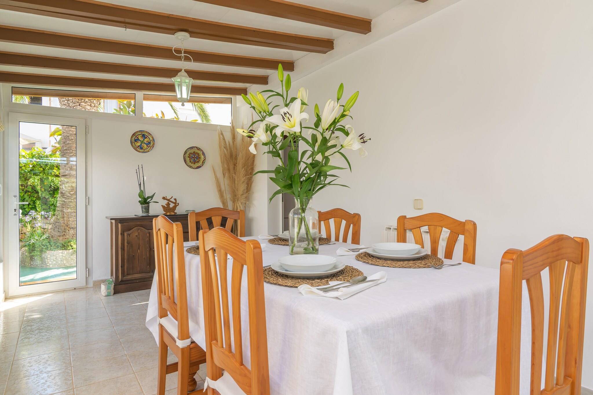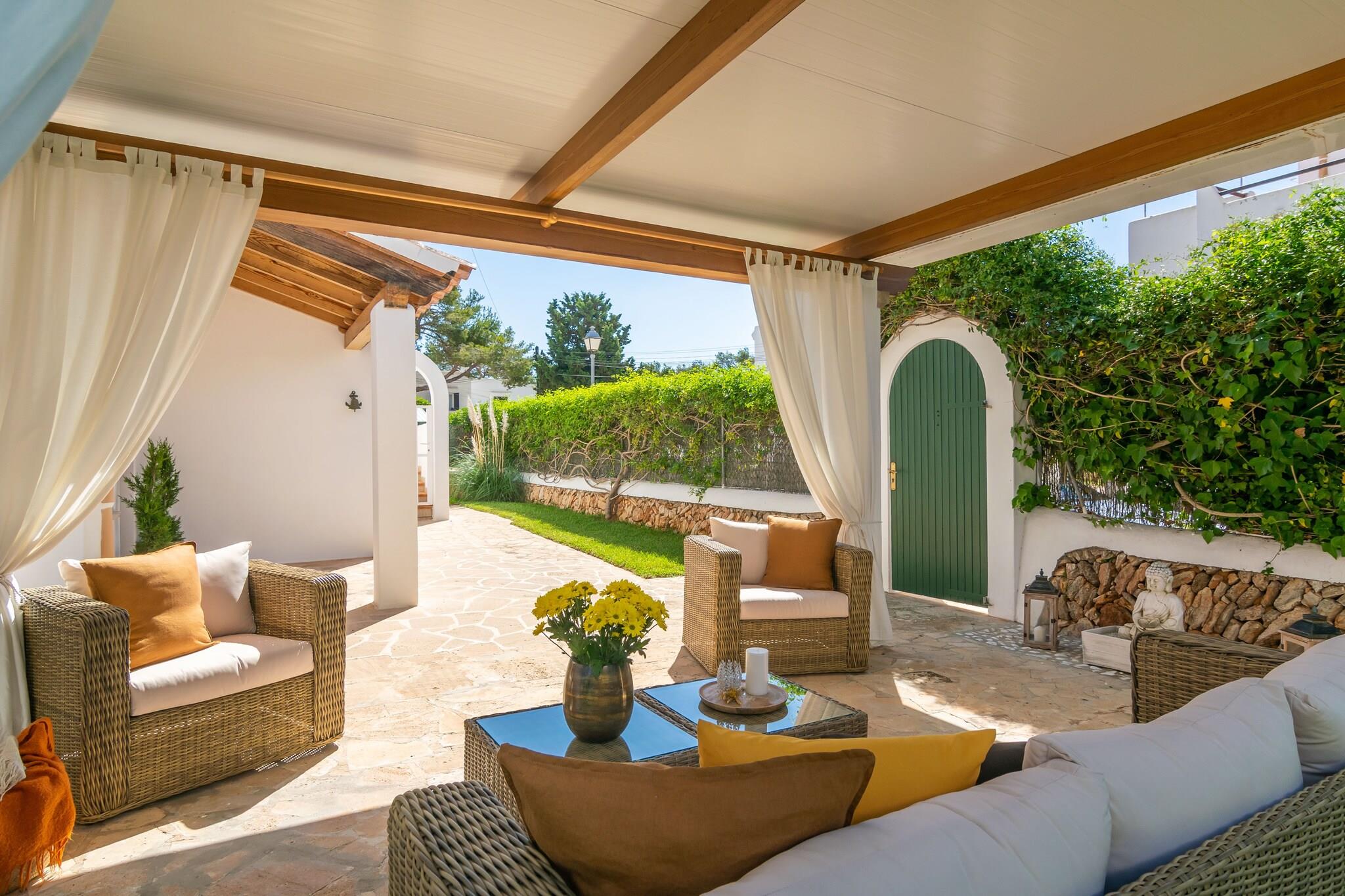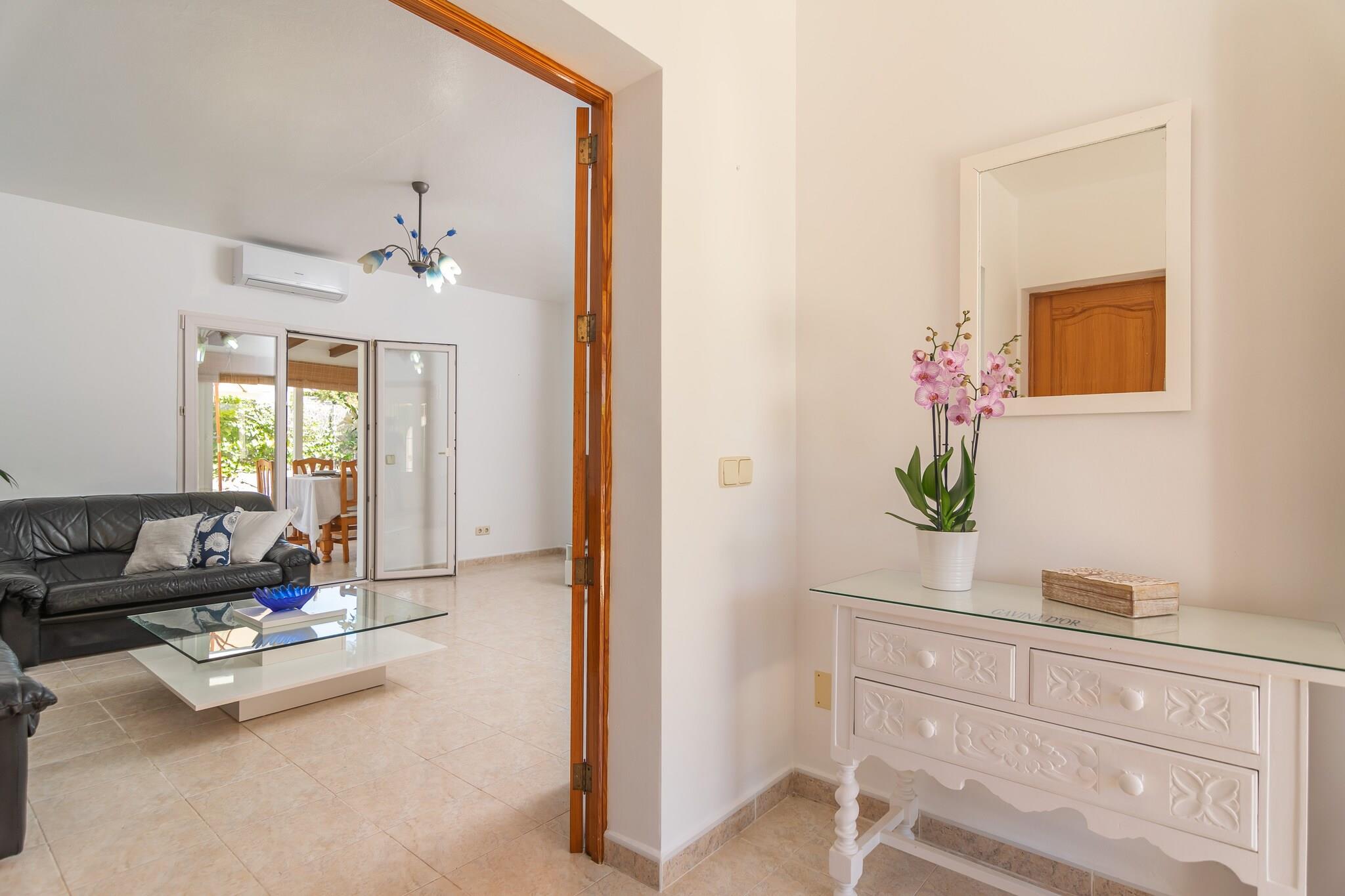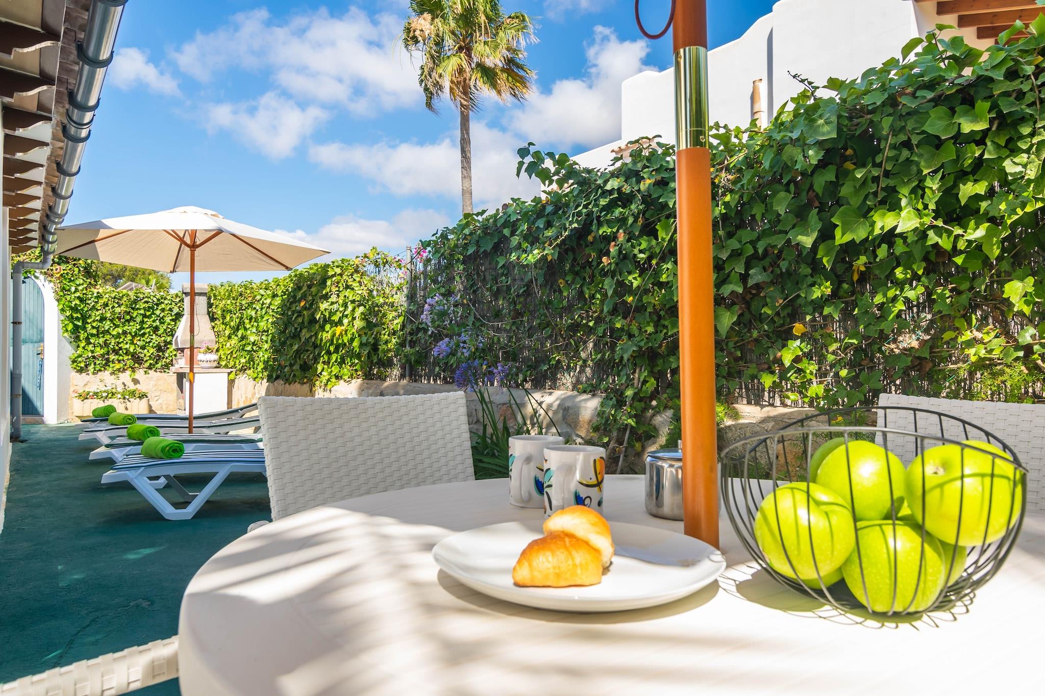 Slap af i denne hyggelige villa kun 300 meter fra havet. Nyd solrige dage på liggestolene i haven, grill dine yndlingsretter på grillen, eller nyd en drink på den rummelige veranda. Indvendigt er villaen opdelt i to niveauer og byder på komfort for familier eller grupper. I stueetagen finder du en lys stue med AC og Smart TV, et fuldt udstyret køkken med gaskomfur, en spisestue, to soveværelser (et med dobbeltseng og et med to enkeltsenge og en-suite bruser), plus et badeværelse med badekar. Få adgang til øverste etage via udvendige trapper, hvor du finder en anden lounge, et soveværelse med 2 enkeltsenge med AC og loftsventilator og et stort badeværelse med bruser. Hjemmet har olie centralvarme og inkluderer en vaskemaskine, strygejern, strygebræt, barneseng og høj stol. Beliggende i et roligt boligområde i Cala d'Or, er du tæt på butikker, restauranter og dejlige bugter som Caló des Pou (700 m) og Cala Gran. Kæledyr og arrangementer er ikke tilladt. Ecotasa betales ved check-in.