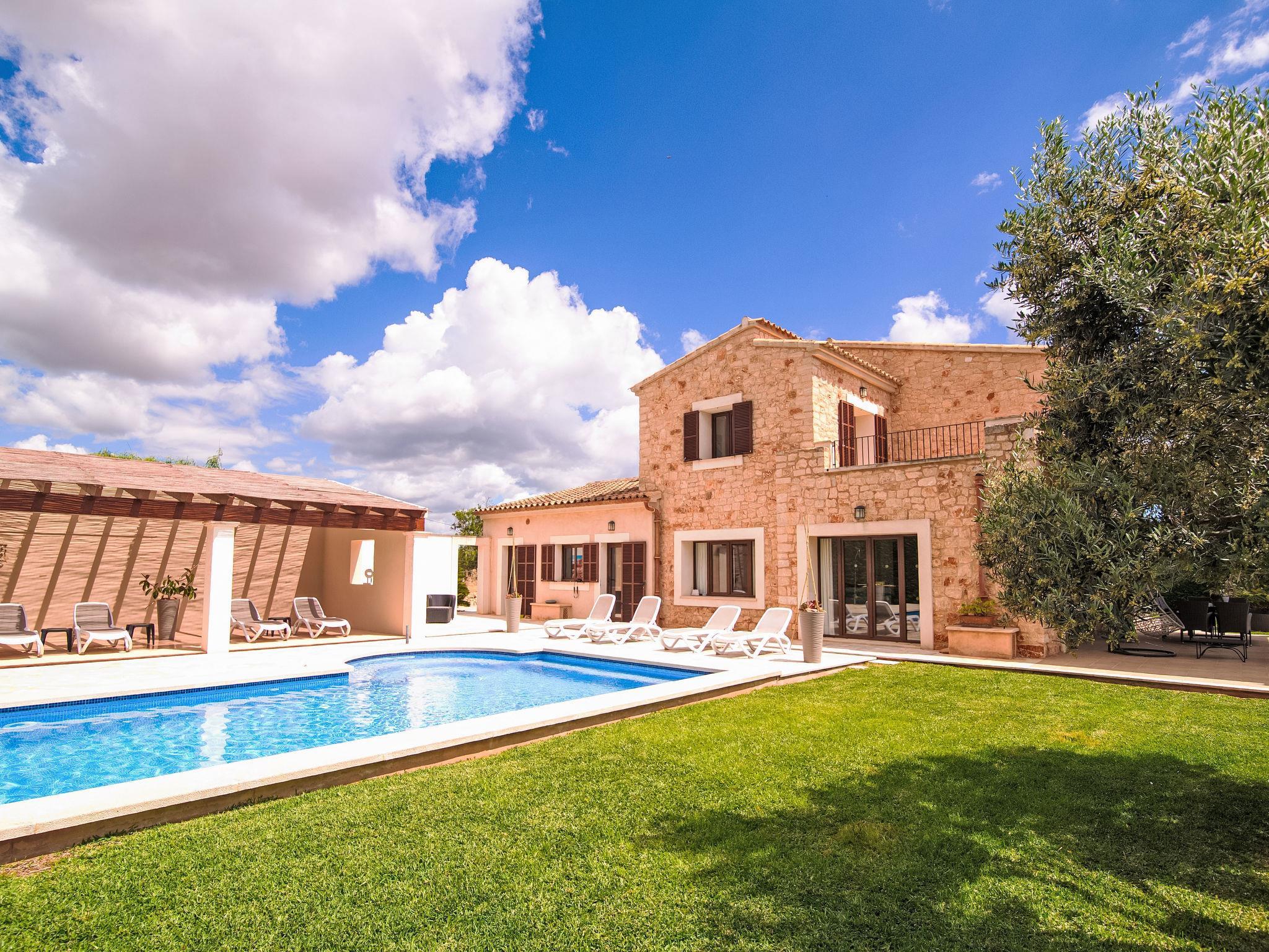 Es Pinaro 2 km from Cala d'or: Modern, cosy house "Finca del Sol", 2 storeys. 150 m from the edge of the forest, 2 km from the sea, 2 km from the beach. Private: property with lawn, natural garden, swimming pool angular (10 x 3 m, depth 100 - 150 cm, seasonal availability: 01.Mar. - 31.Oct.). Pergola (10 m2), terrace, garden furniture, barbecue. In the house: WiFi, laundry. Parking at the house. Shop 2 km, grocery 2 km, supermarket 2 km, shopping centre 10 km, restaurant 2 km, bar 2 km, bakery 1 km, café 1 km, pedestrian zone 1.5 km, bus stop "Cala d'or" 2.5 km. Nearby attractions: Platja Cala d'or 2 km, Santuari Sant Salvador Felanitx 10 km, Es Forti 4 km. Please note: car recommended. Suitable for families. Object suitable for 5 adults + 4 children. The owner does not accept any groups. The owner does not accept any youth groups. Loading and unloading of baggage is possible at the holiday house. Motorway 10 km from the property. Main road 1.5 km from the property. Nightclub/disco 2 km from the property. Airfield 45 km from the property. Neighbourhood highly sensitive to noise. Quietness and good behaviour expected.