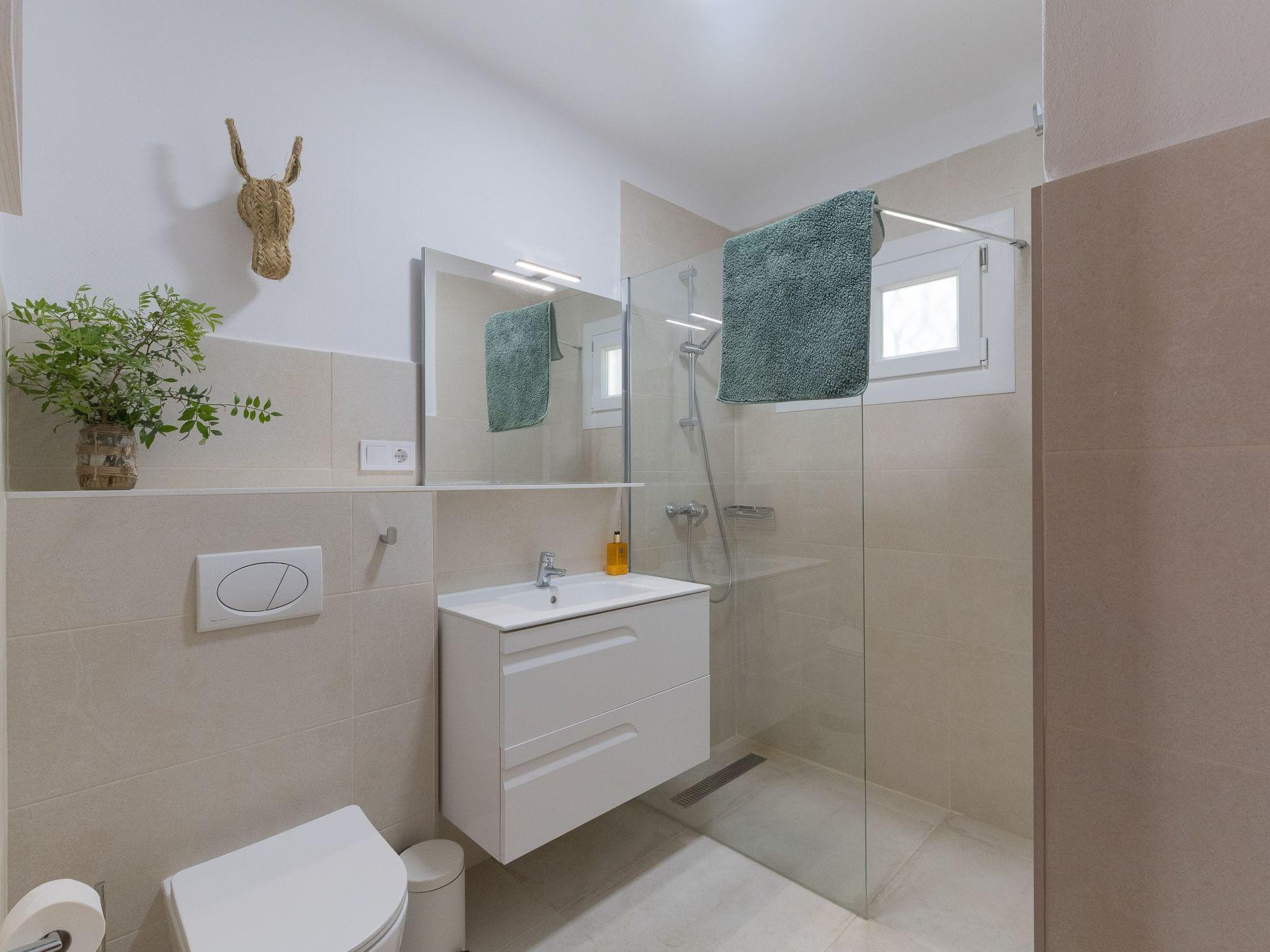 The house Dora is built in the typical Ibizan style of Cala D'Or and has been recently renovated while retaining some original elements. The entrance leads directly into the spacious living/dining room with a cosy sofa and dining area. French doors lead out onto the terrace and pool area. The well-equipped kitchen has access to the terrace and the rear garden. Three bedrooms are available. Two rooms each have two single beds, the third room has a double bed. The bedrooms share two modern bathrooms with showers.