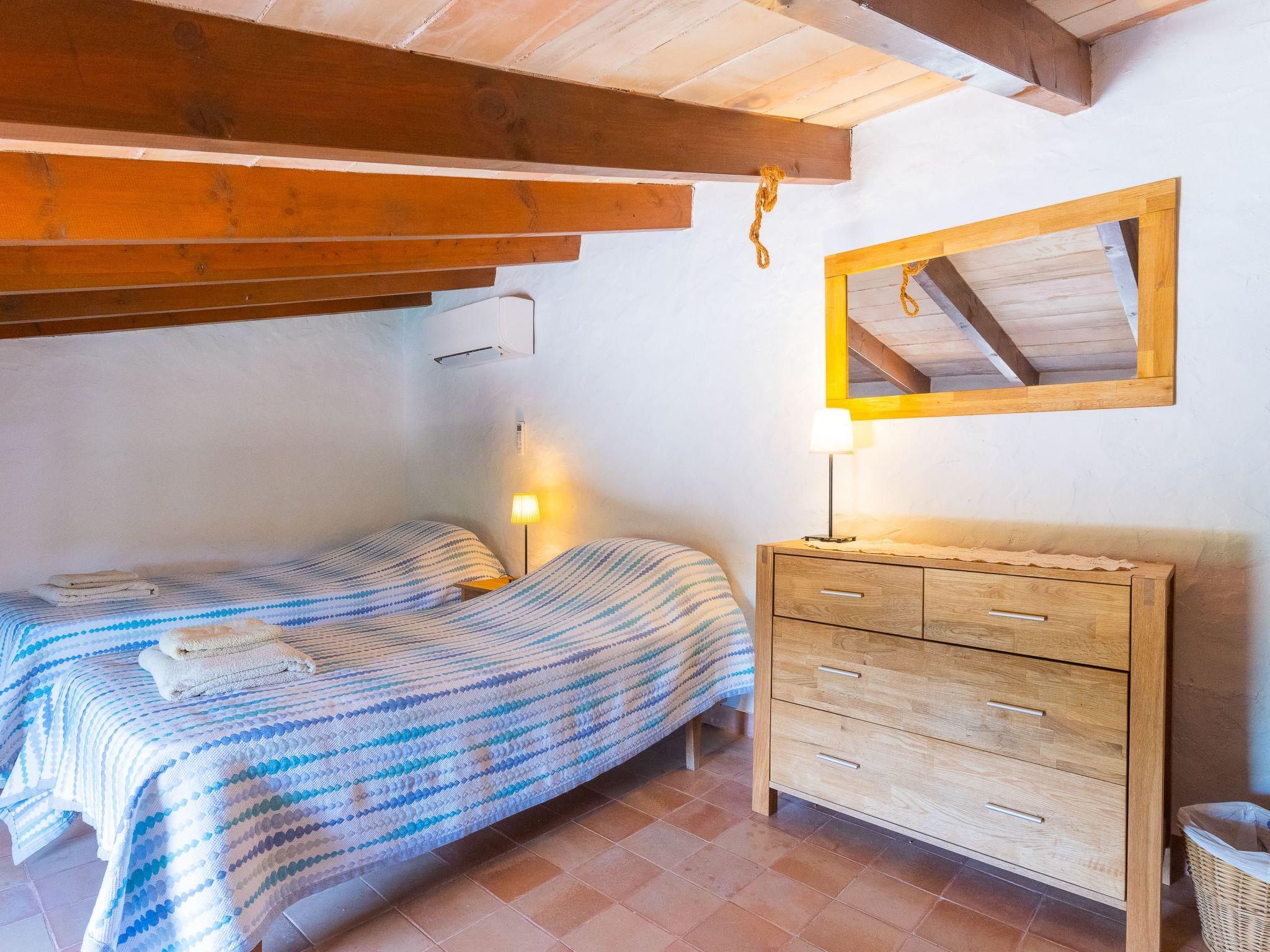 Cosy farmhouse with a beautiful garden. When we enter the house, we arrive in a bright living-dining area. On this floor we also have a fully equipped kitchen, a guest toilet and the master bedroom with en suite shower. On the first floor there are three more bedrooms, two of them with two single beds and another with a double bed. These bedrooms share a bathroom with shower and bath.Air conditioning in the bedrooms with fixed and limited schedule from 21.00 to 08.00.If your stay is longer than a week and you wish to change the bed linen/towels, this is only possible for an extra fee.