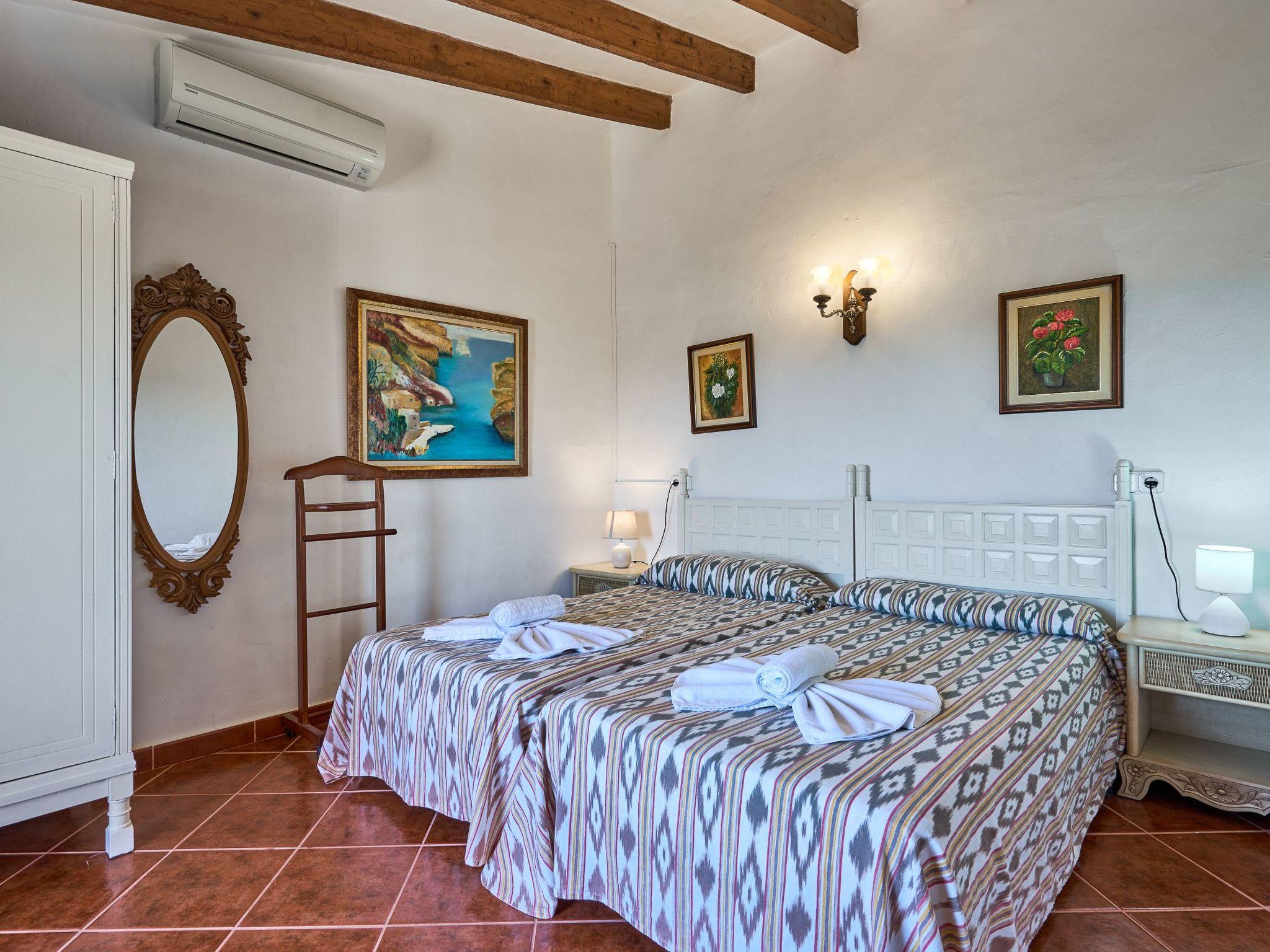 Can Tanca is a typical Mallorcan country house that has retained its traditional ambience, with high ceilings, rustic wooden beams and the dark, antique wooden furniture so typical of the island. The entrance leads into a spacious reception room, off which are 2 double bedrooms and the kitchen. The very spacious kitchen also serves as a dining area and has access to the outside terrace and the garden/pool area. Both bedrooms on the ground floor are furnished with double beds and antique Mallorcan furniture. Both rooms have en suite bathrooms. The upper floor offers a living area with sofas, satellite TV and beautiful views of the garden. There are also two further double bedrooms, each with 2 single beds. Both bedrooms share a bathroom with bath and shower. A small sun terrace with fantastic distant sea views completes the upper floor.