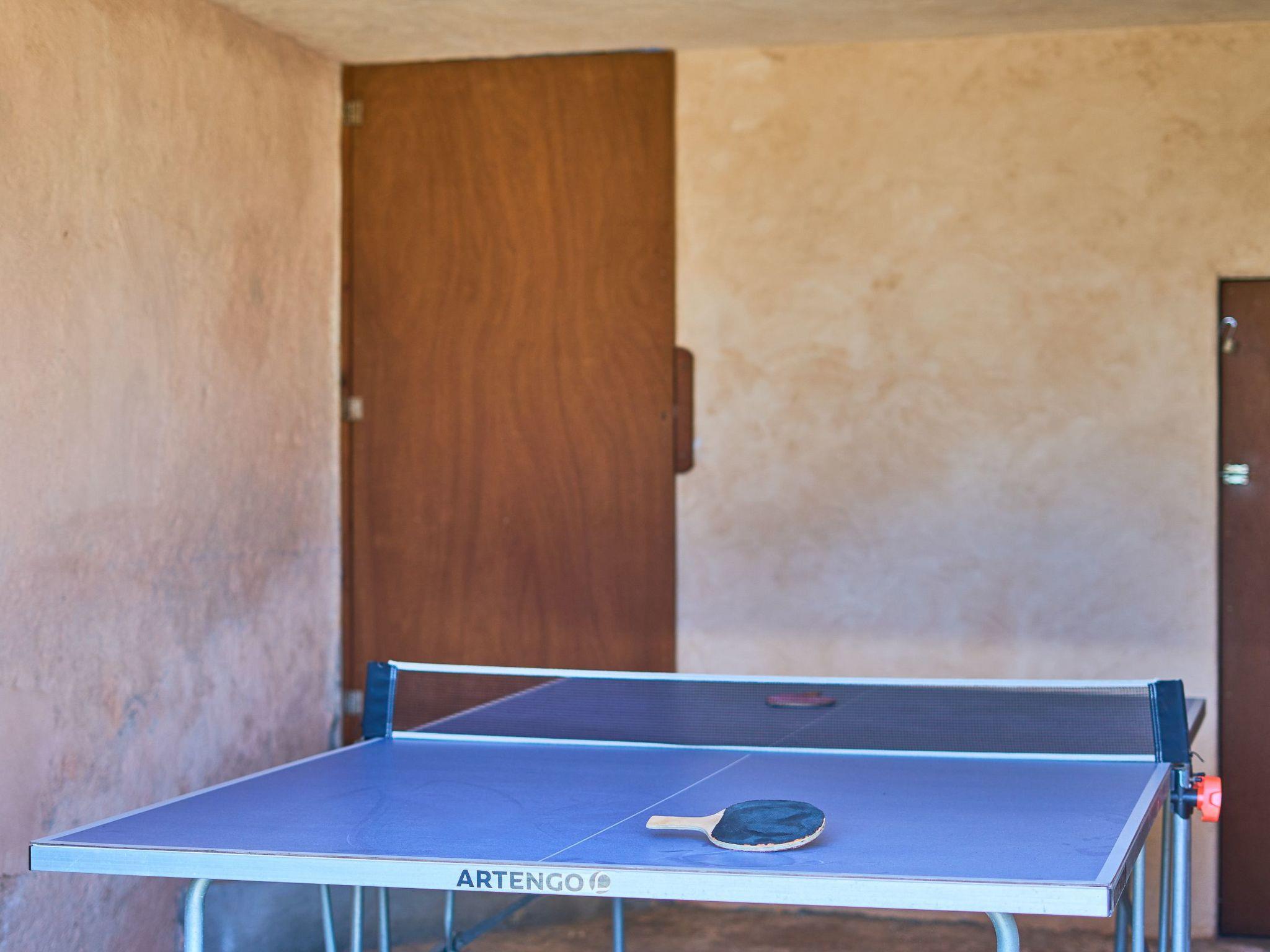 The beautiful, spacious outdoor area offers privacy and is landscaped with lawns, tall palm trees and Mediterranean plants. The large pool with Roman steps (10m x 5m and min. 1.2m to max. 2.00m deep) is surrounded by a sun terrace that invites you to sunbathe and relax. The entire terrace offers a marvellous view across the landscape to the shimmering blue sea. The barbecue area with brick barbecue and outdoor sink is located under a covered and shady terrace. The large, rustic wooden table invites you to enjoy long barbecues in the balmy summer air. There is a swing and a table tennis table for the children. There is space for several vehicles on the enclosed plot of land.
