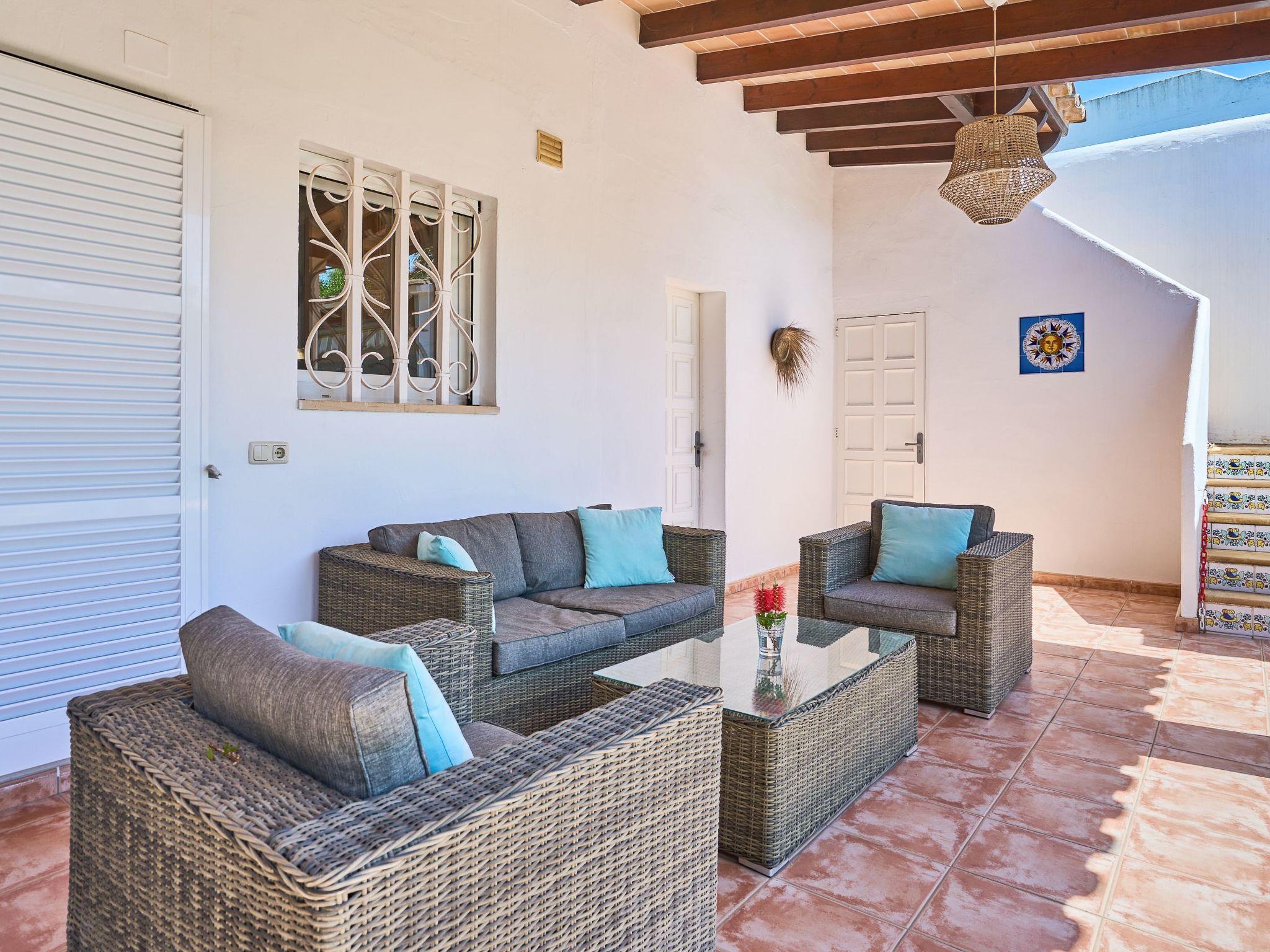 The outdoor area of this holiday home is a real highlight. The terrace with a brick barbecue invites you to enjoy al fresco meals together, while the adjoining lawned garden leads to the pool area, which is exclusively for your use. Here you can relax in complete privacy and enjoy the Mallorcan sunshine.