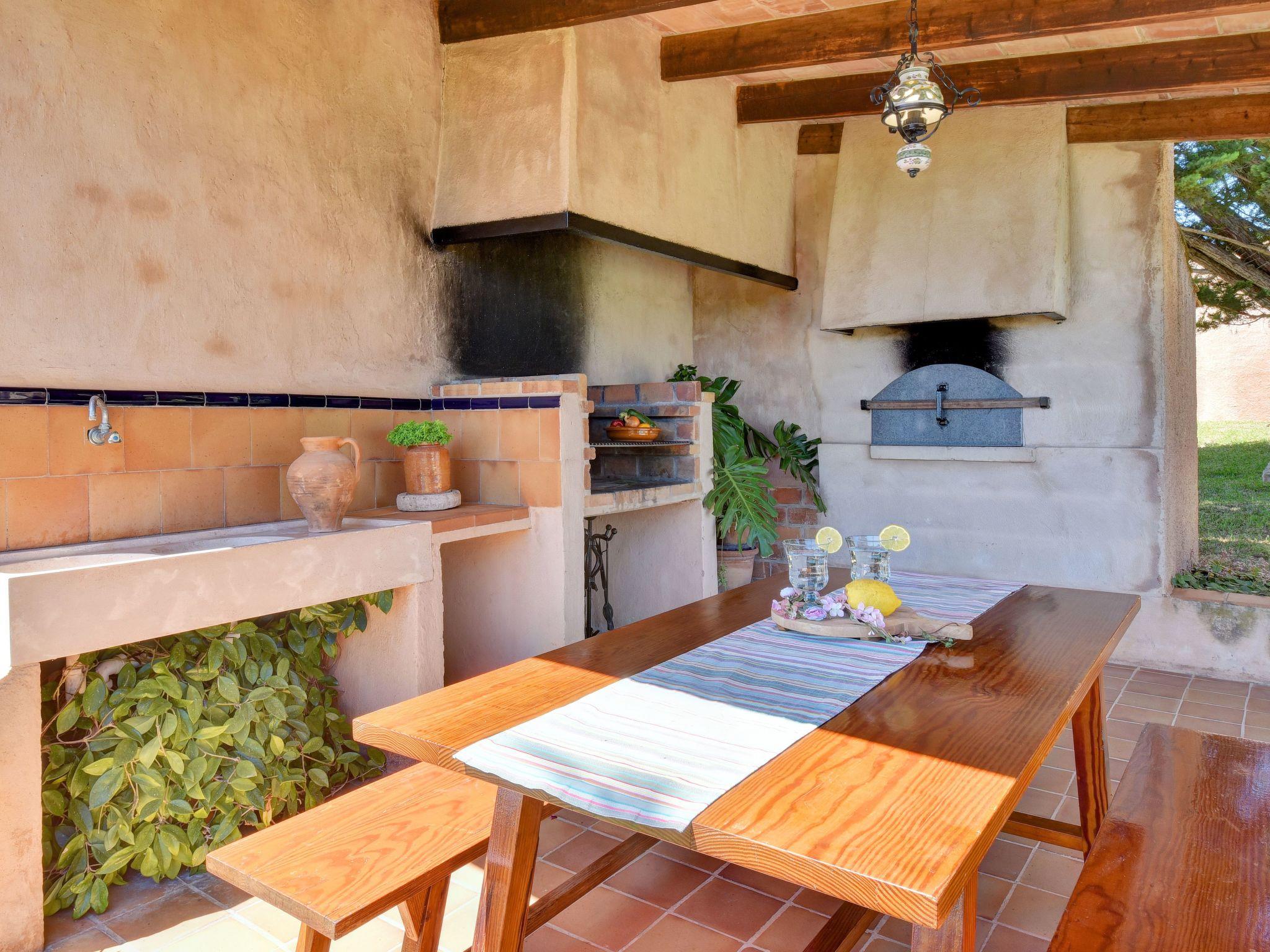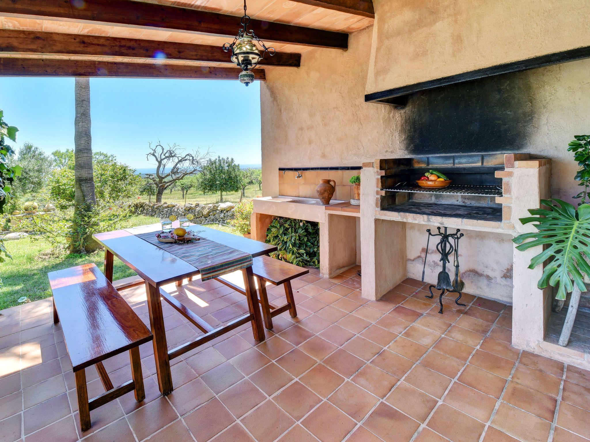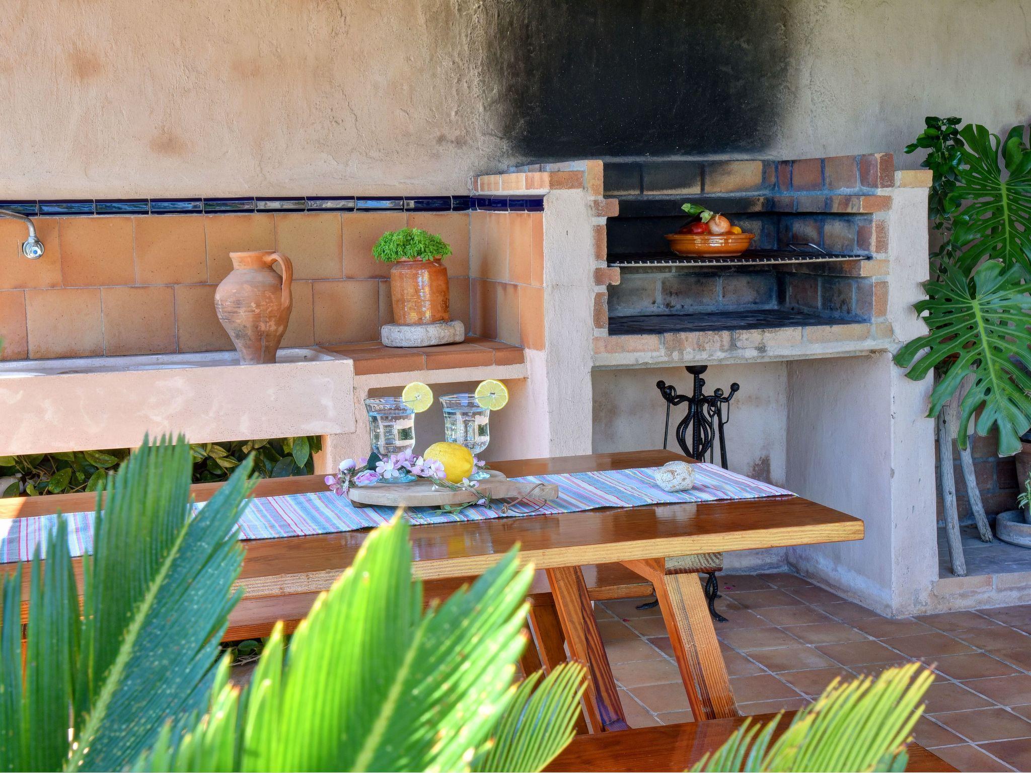 The beautiful curved pool of 10 x 4.5 metres is surrounded by several palm trees in front of the terrace. The brick-built barbecue is located on a covered terrace which invites to long barbecue evenings "al fresco". There is also a second dining area on the terrace with views of the pool and the surrounding countryside.