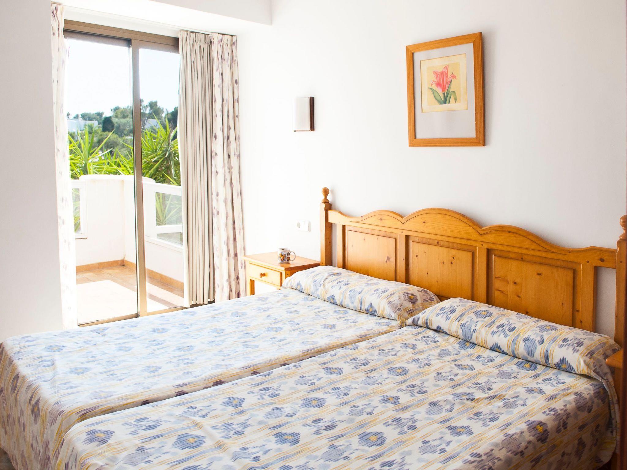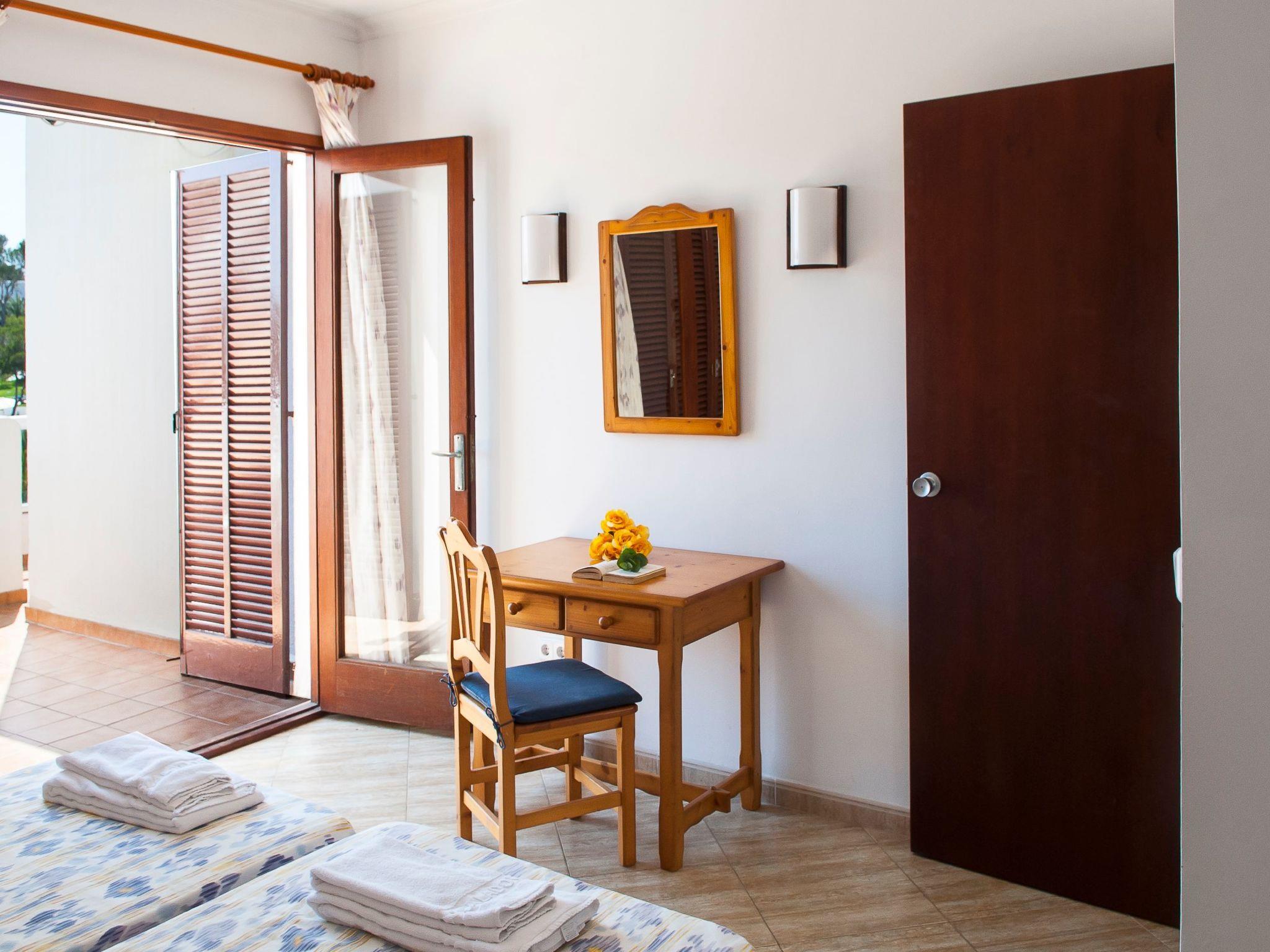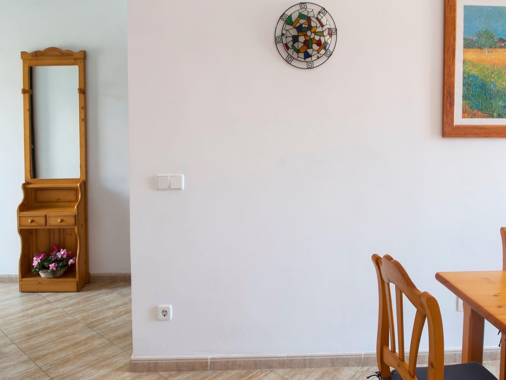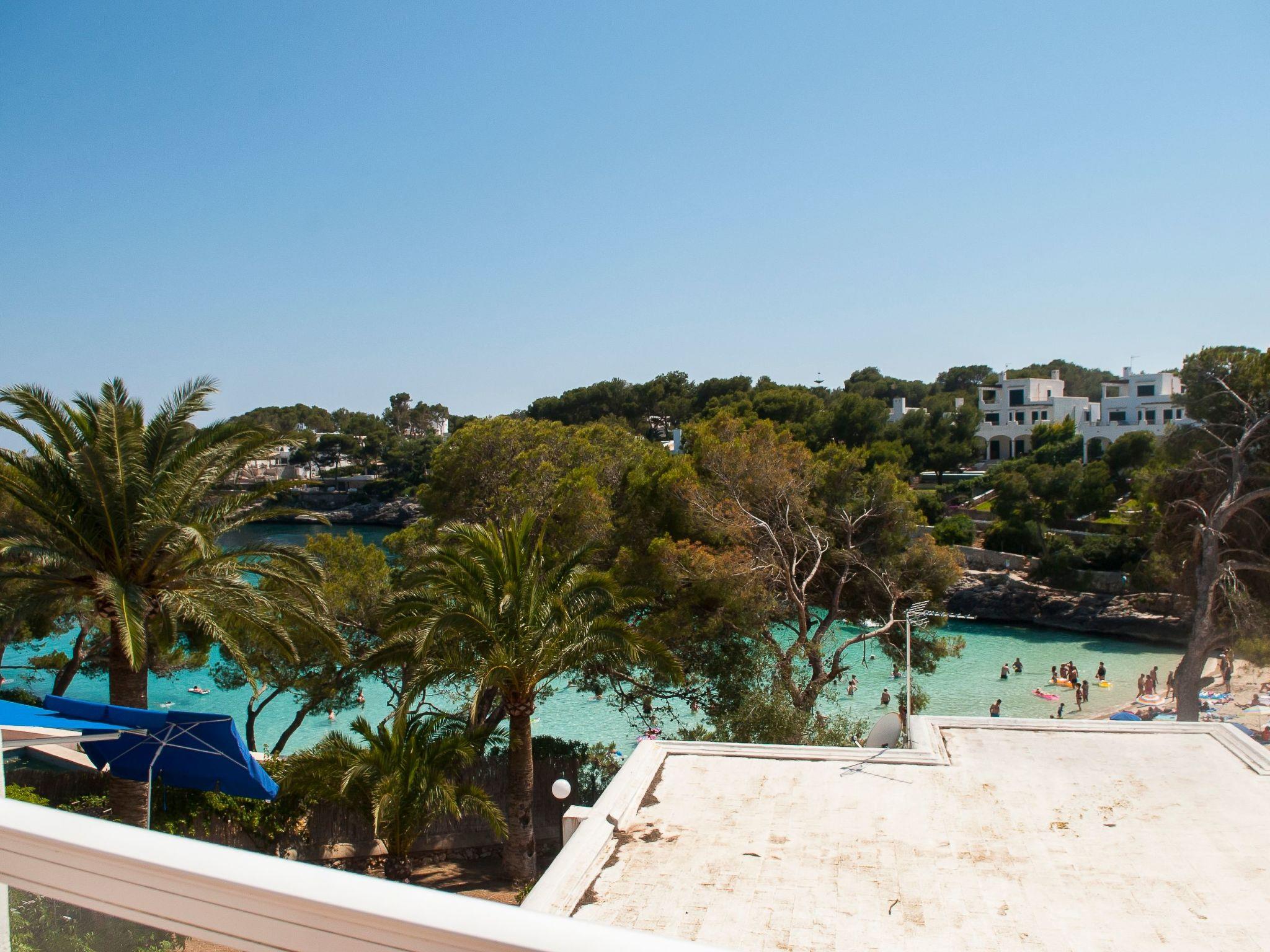 Here you will find shopping streets, restaurants, bars, cafés and the fashionable marina, which is well worth seeing. The bright living/dining area has direct access to the balcony with a partial view of the sandy bay and a small dining table. The compact kitchen is equipped for holiday use. The flat has two bedrooms, each with two single beds and access to the balcony. One bedroom has a bathroom with bathtub, where the washing machine is also located, while the other bedroom has a shower room. The beautiful, large communal pool is located directly above the sandy bay of Cala Gran - ideal for refreshing, sunbathing and relaxing. A path leads from here directly to the sandy bay.