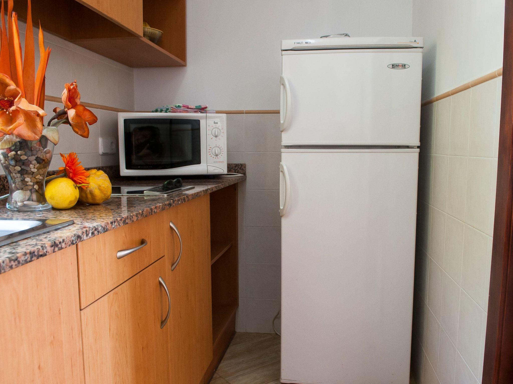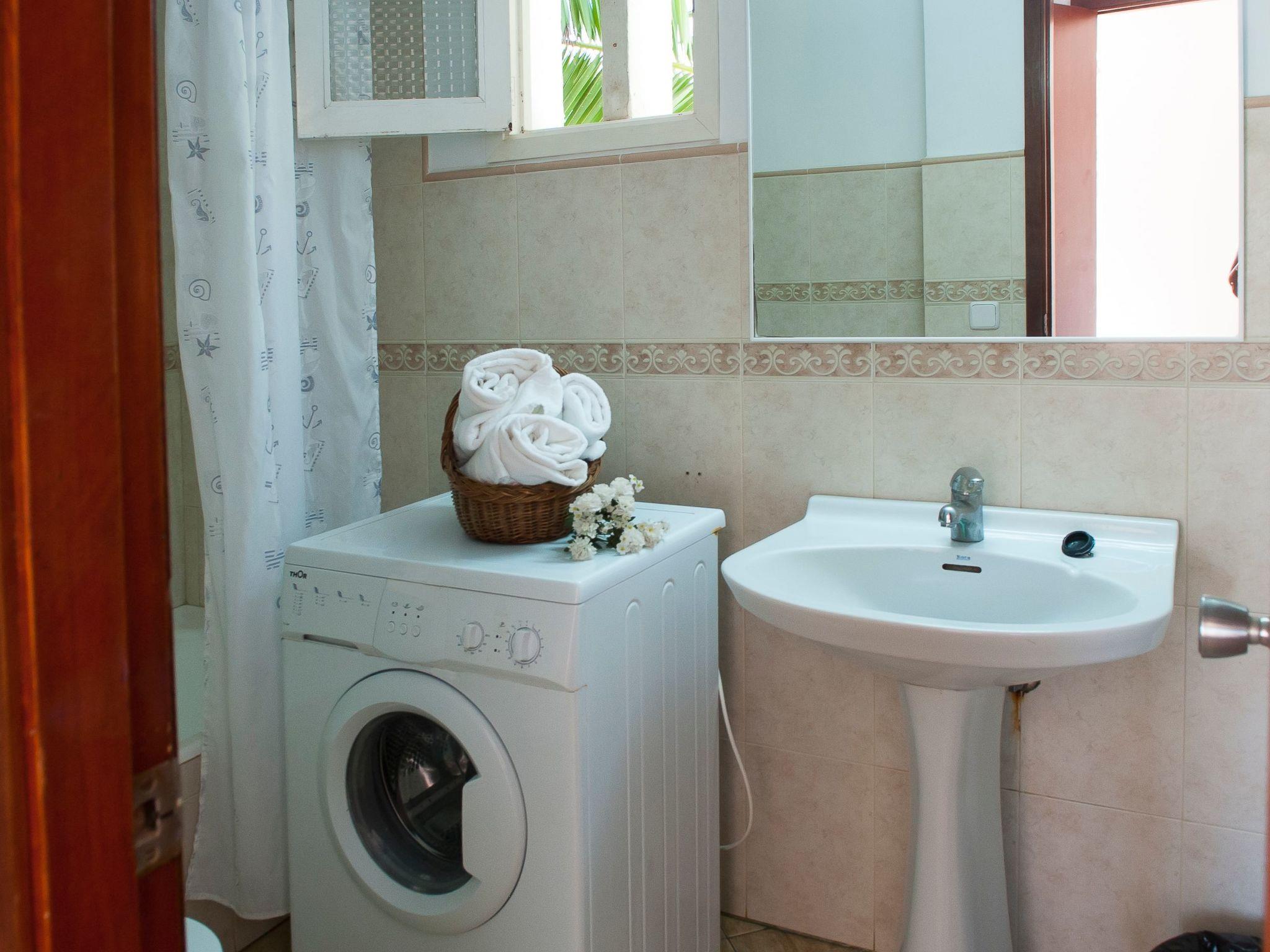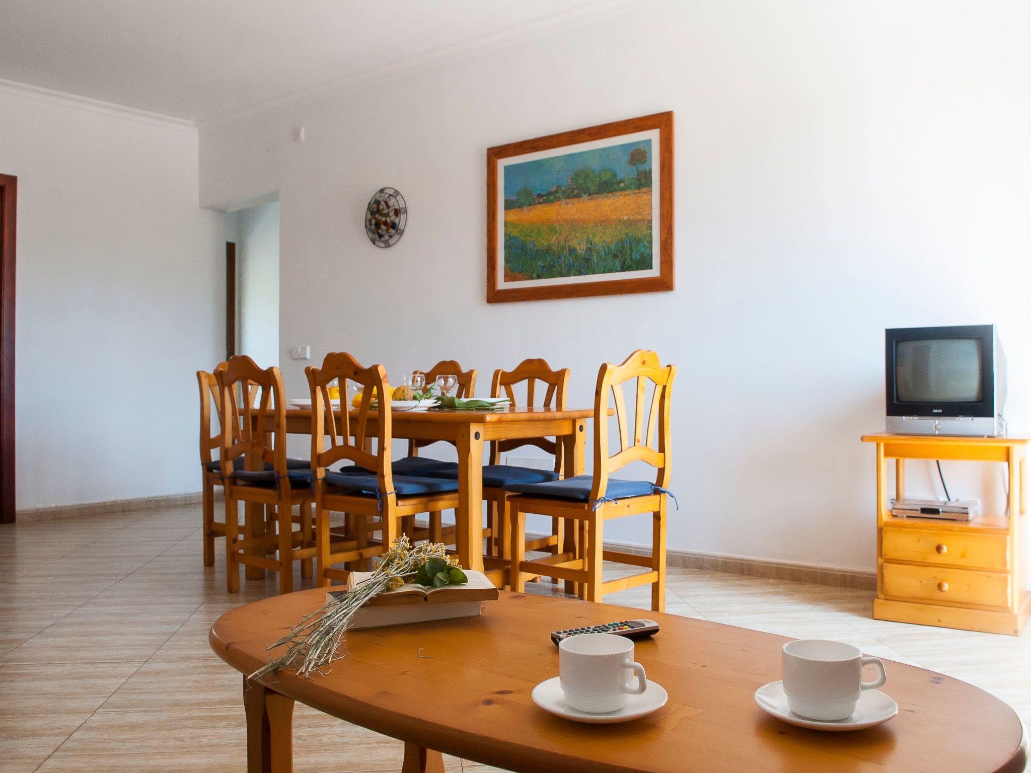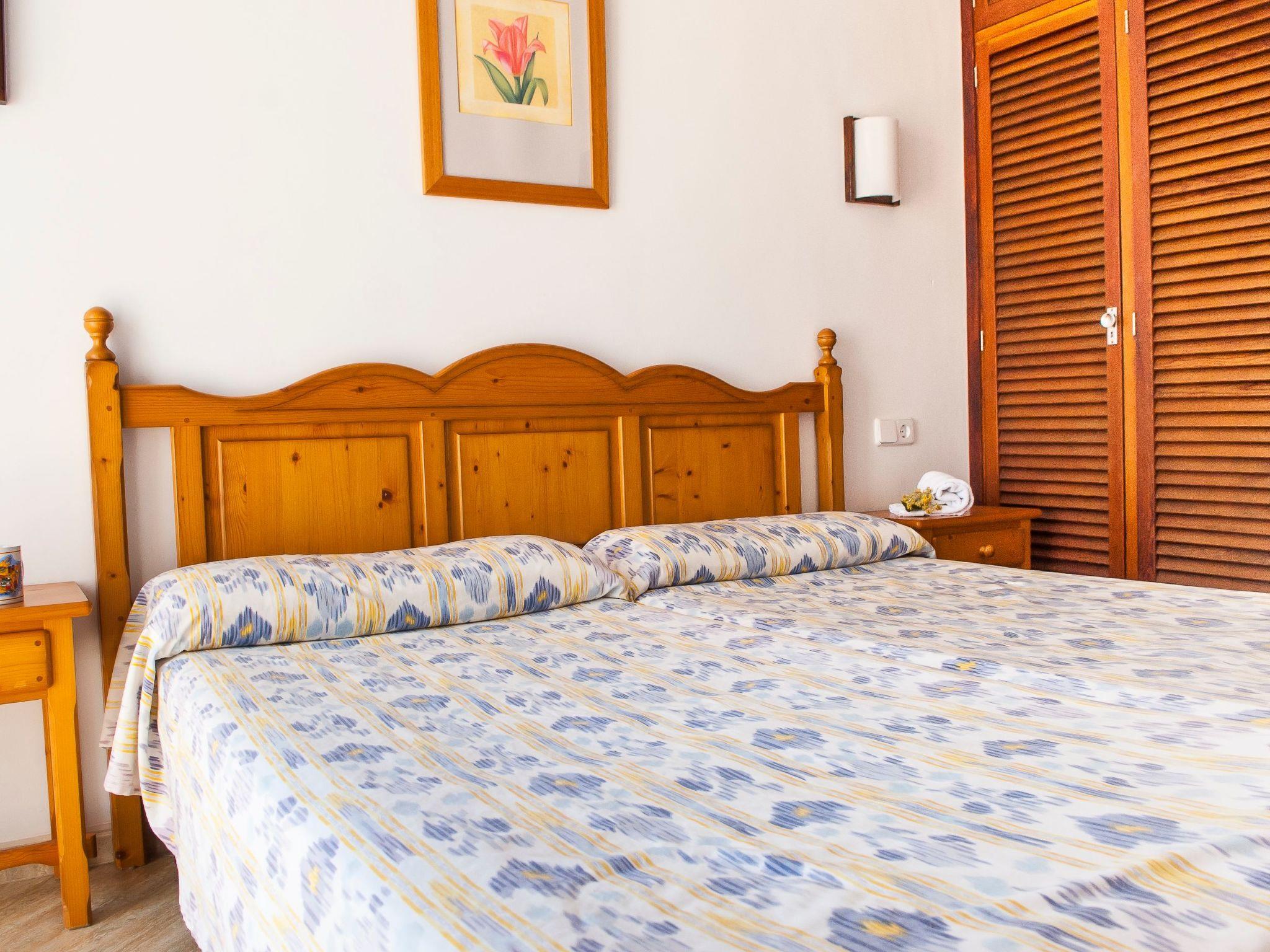 Here you will find shopping streets, restaurants, bars, cafés and the fashionable marina, which is well worth seeing. The bright living/dining area has direct access to the balcony with a partial view of the sandy bay and a small dining table. The compact kitchen is equipped for holiday use. The flat has two bedrooms, each with two single beds and access to the balcony. One bedroom has a bathroom with bathtub, where the washing machine is also located, while the other bedroom has a shower room. The beautiful, large communal pool is located directly above the sandy bay of Cala Gran - ideal for refreshing, sunbathing and relaxing. A path leads from here directly to the sandy bay.