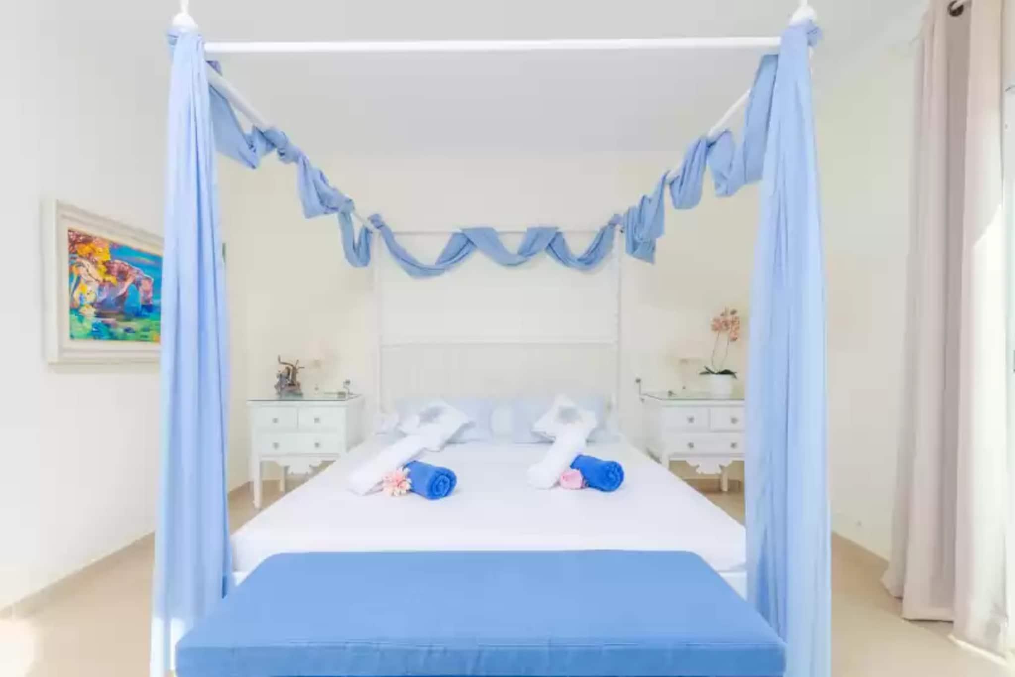 Stue, spisestue, Køkken(komfur, kaffemaskine, ovn), soveværelse(2x enkeltseng), soveværelse(dobbeltseng), soveværelse(dobbeltseng), badeværelse, badeværelse, badeværelse, mikrobølgeovn, opvaskemaskine , køleskab, fryser, badekar, badekar, bruser, bruser, håndvask, håndvask, håndvask, toilet, toilet, toilet, bidet, klimaanlæg, klimaanlæg, klimaanlæg, have, havemøbler, 6x solstole, grill, swimmingpool, barneseng, barnestol