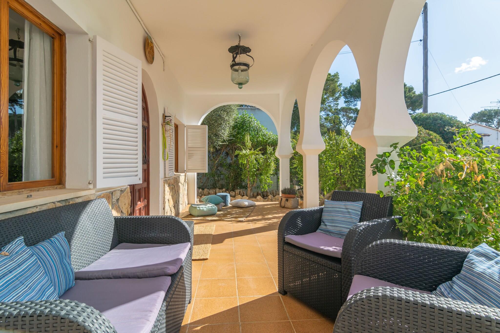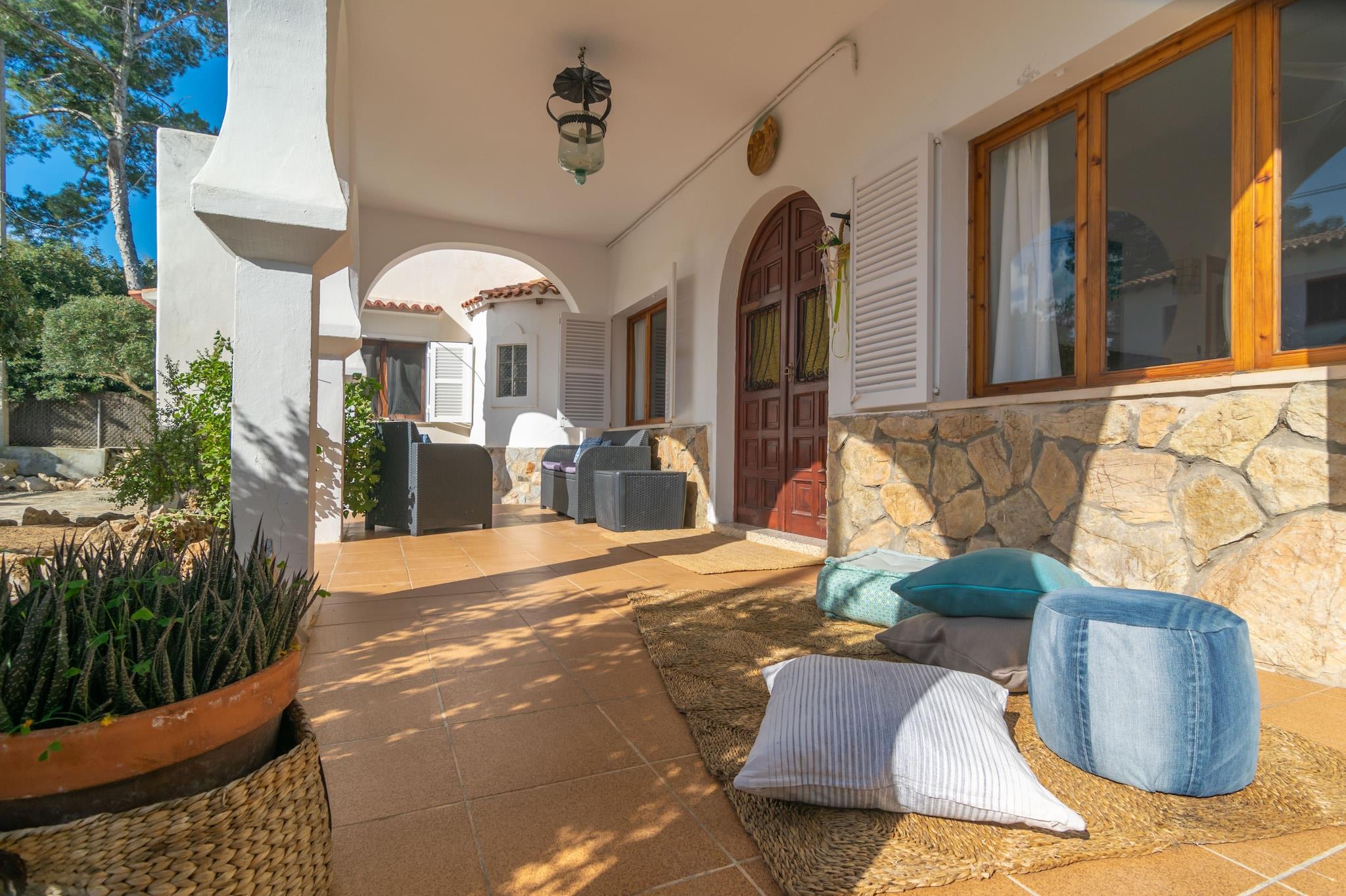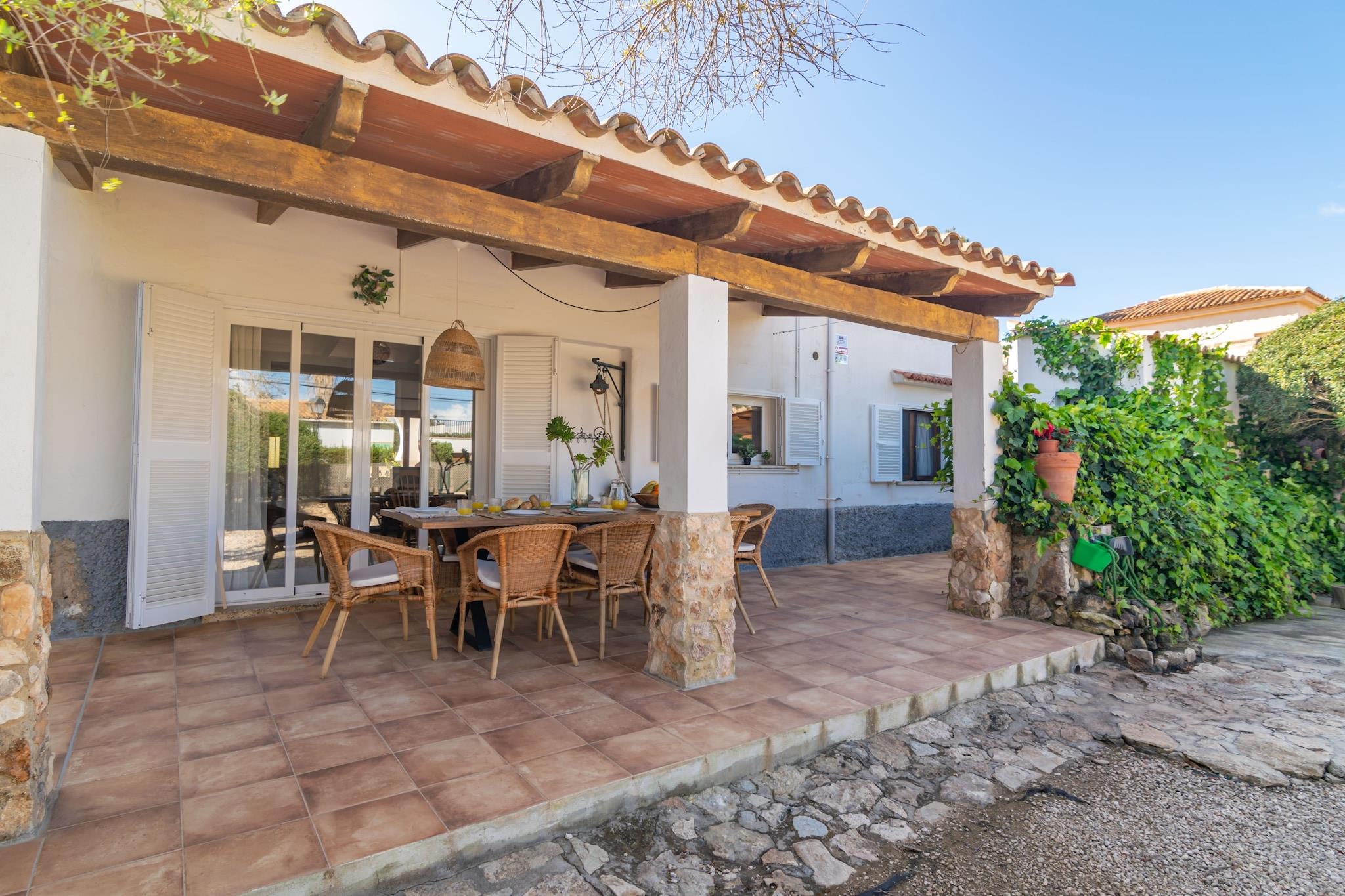 Denne charmerende villa i Cala Llombards er et sandt middelhavs-tilflugtssted kun 650 meter fra den fantastiske sandbugt. Udendørs vil du nyde to indbydende verandaer og en stor gårdhave - ideel til hvert øjeblik af dagen. Start din morgen med morgenmad i chill-out-området, tilbered en lækker grill ved middagstid, og slap af om aftenen med vin og latter på de udendørs sofaer under stjernerne. Huset blander smukt traditionel og moderne stil, og byder på en lys stue med AC og satellit-tv, en spisestue og et fuldt udstyret køkken med keramisk kogeplade, ovn og direkte adgang til verandaen. Vaskerummet indeholder vaskemaskine, strygejern og strygebræt. Der er fire soveværelser - tre med dobbeltsenge og et med to enkeltsenge (kan sættes sammen) - plus to badeværelser med bruser. Op til to barnesenge og høje stole er tilgængelige, og fem ventilatorer hjælper med at holde rummet køligt. Beliggende i rolige omgivelser, er huset tæt på idylliske steder som Cala s'Almunia og Caló des Moro. Barer, restauranter og det vigtigste er kun få skridt væk. Kæledyr og arrangementer er ikke tilladt. Gæster under 28 kun hvis de er sammen med familie.