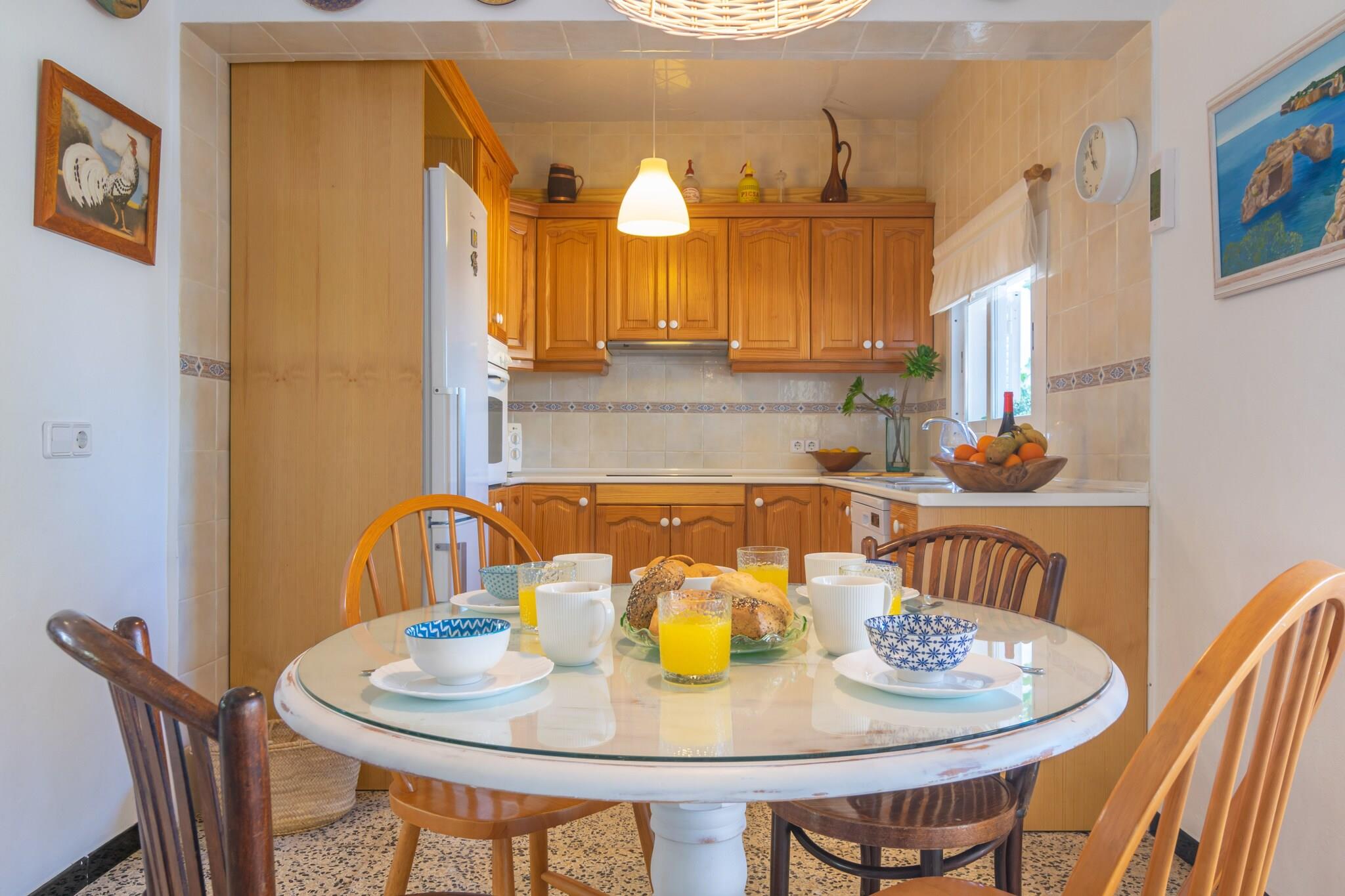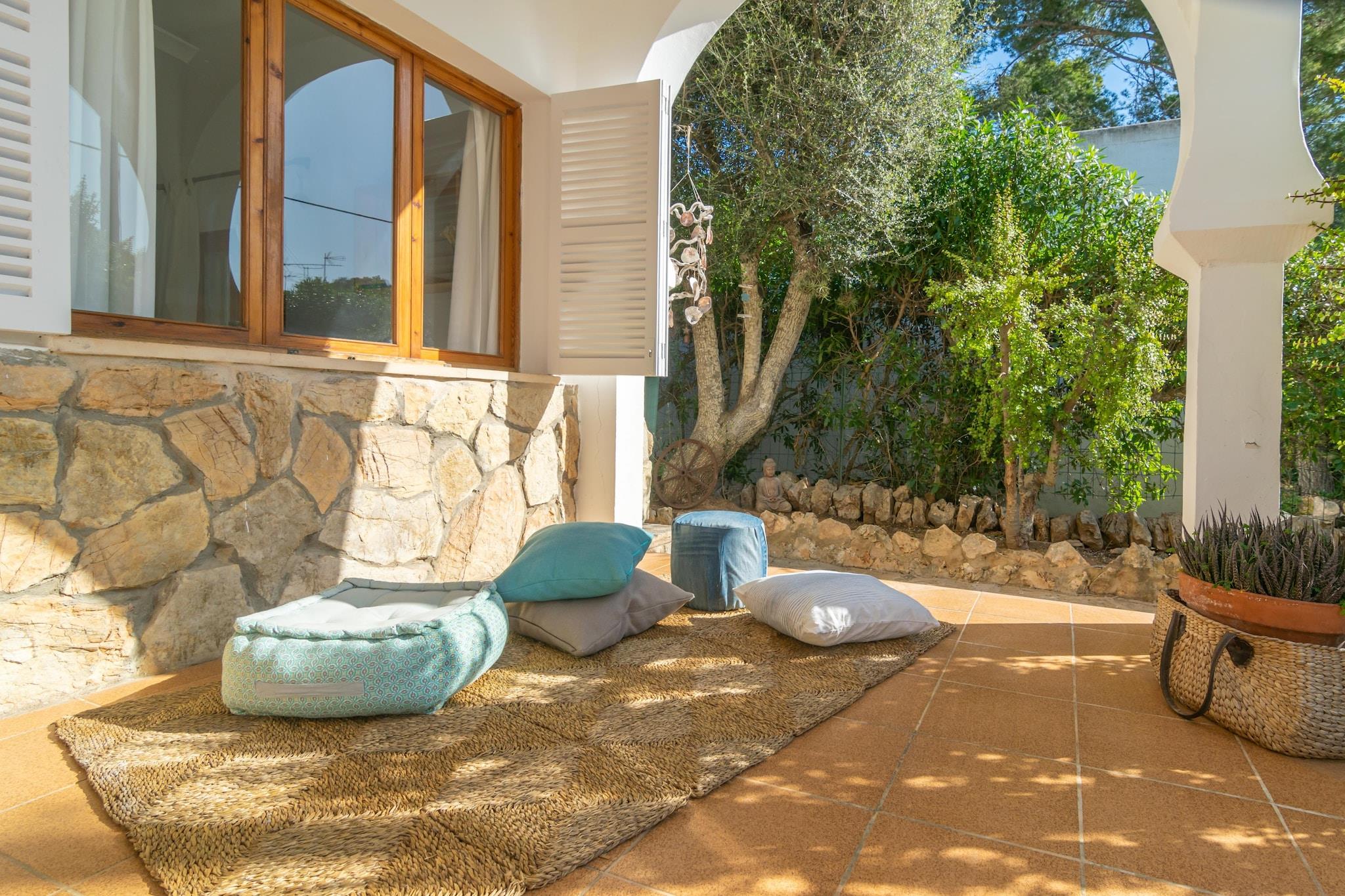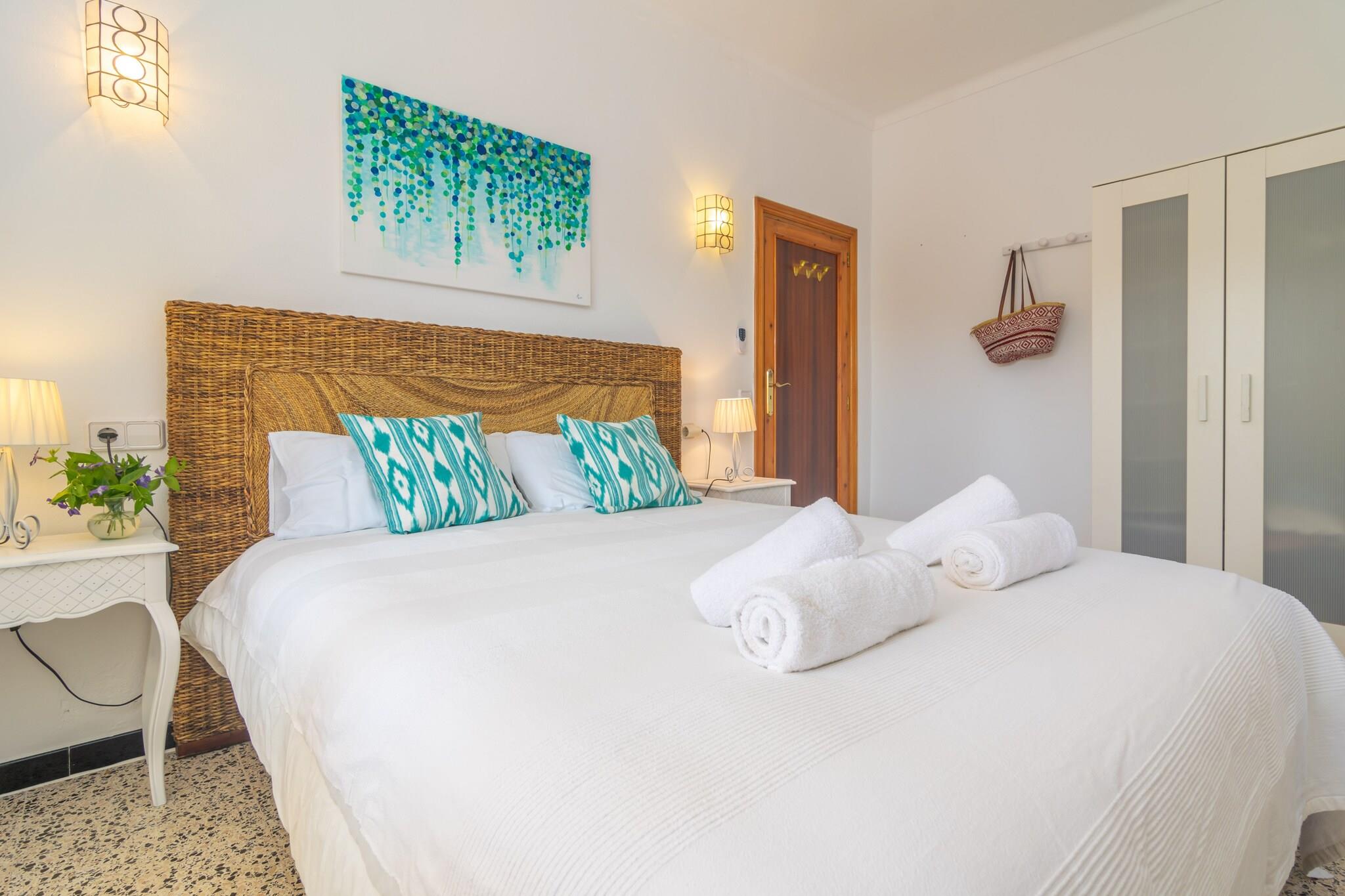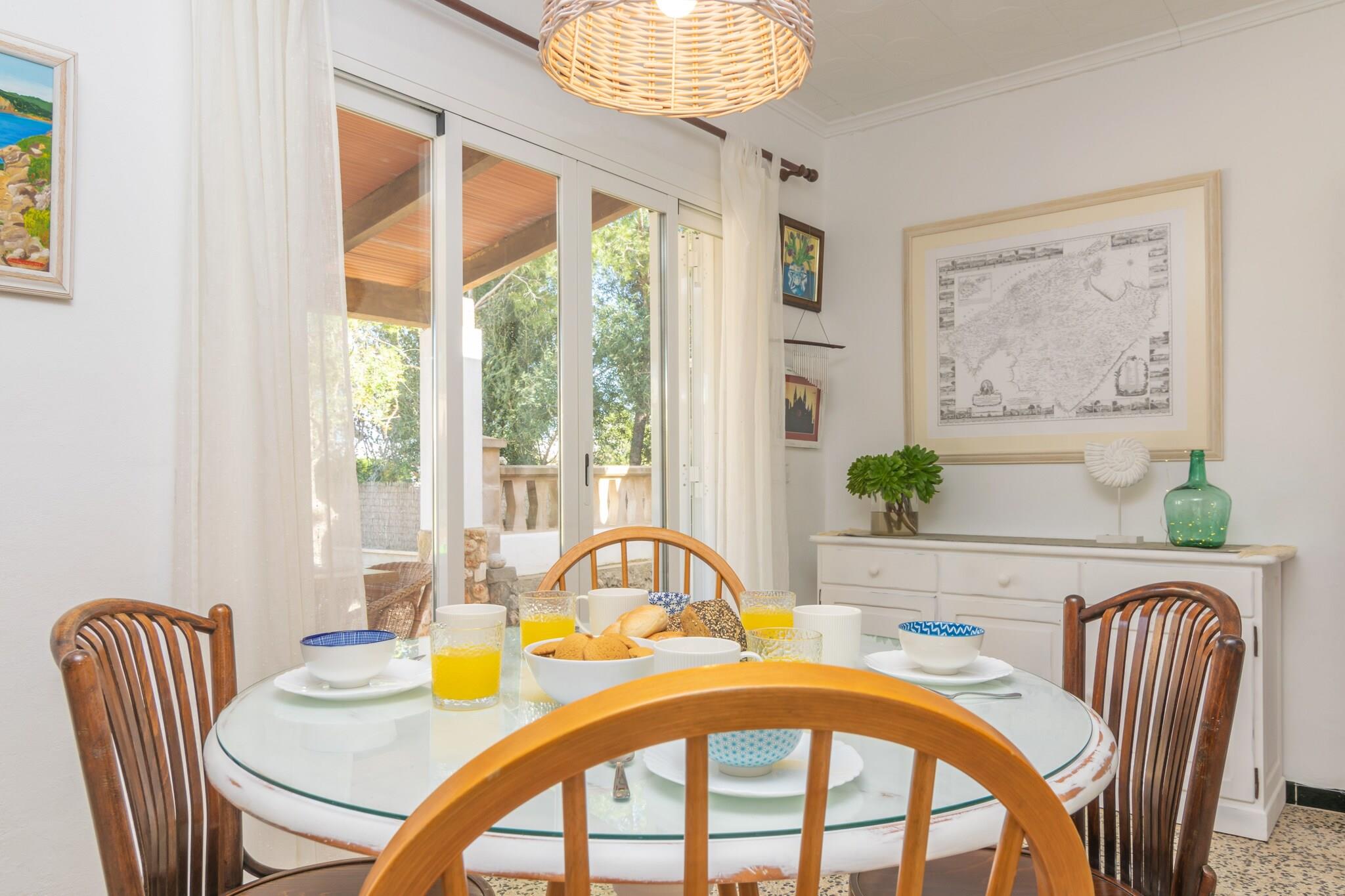 Denne charmerende villa i Cala Llombards er et sandt middelhavs-tilflugtssted kun 650 meter fra den fantastiske sandbugt. Udendørs vil du nyde to indbydende verandaer og en stor gårdhave - ideel til hvert øjeblik af dagen. Start din morgen med morgenmad i chill-out-området, tilbered en lækker grill ved middagstid, og slap af om aftenen med vin og latter på de udendørs sofaer under stjernerne. Huset blander smukt traditionel og moderne stil, og byder på en lys stue med AC og satellit-tv, en spisestue og et fuldt udstyret køkken med keramisk kogeplade, ovn og direkte adgang til verandaen. Vaskerummet indeholder vaskemaskine, strygejern og strygebræt. Der er fire soveværelser - tre med dobbeltsenge og et med to enkeltsenge (kan sættes sammen) - plus to badeværelser med bruser. Op til to barnesenge og høje stole er tilgængelige, og fem ventilatorer hjælper med at holde rummet køligt. Beliggende i rolige omgivelser, er huset tæt på idylliske steder som Cala s'Almunia og Caló des Moro. Barer, restauranter og det vigtigste er kun få skridt væk. Kæledyr og arrangementer er ikke tilladt. Gæster under 28 kun hvis de er sammen med familie.