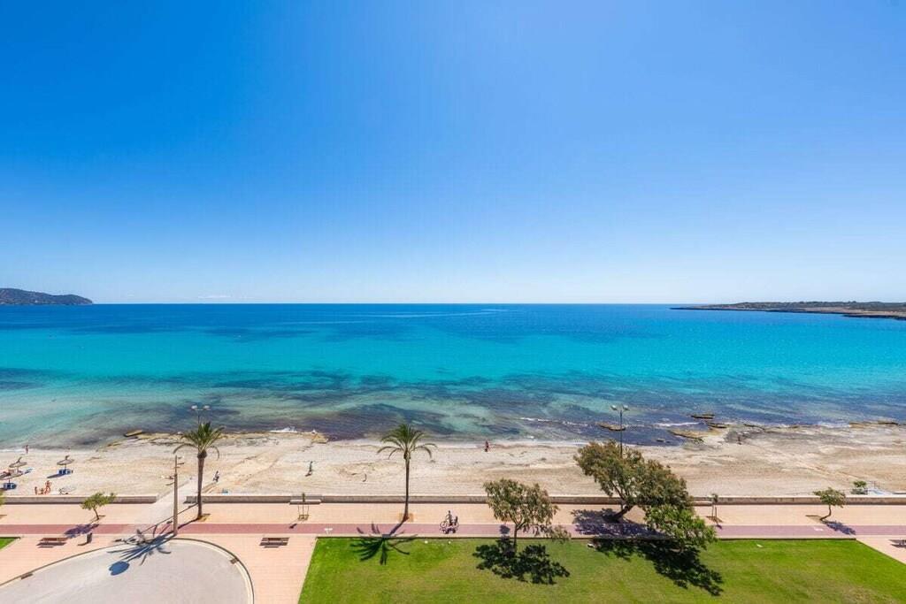 Lev som med venner! Individuelt designet strandlejlighed på 6. sal med majestætisk havudsigt ved frontlinjen. Den 64 m² store ferielejlighed på 6. sal (elevator tilgængelig) med havudsigt fra alle vinduer byder på soveværelse, badeværelse med bruser, stor stue/spisestue/køkken og et opbevaringsrum. Den 11m² overdækkede altan vender mod øst mod Cala Millor-bugten, men byder på bagsiden også udsigt ind i landet til bjergene mod vest. Den lyse ferielejlighed er stilfuldt indrettet med stor sans for detaljer efter mottoet "Moderne purisme møder Belle Époque". Dobbeltsengen i soveværelset er 180 x 200 cm (separate madrasser) og stuesofaen er udtrækbar (ca. 150 x 200 cm) - så ferielejligheden byder på plads til 3 personer. Ferielejligheden tilbyder også bøger (tysk, engelsk), spil, stereoanlæg, Astra satellitmodtager, fladskærms-tv og gratis WiFi