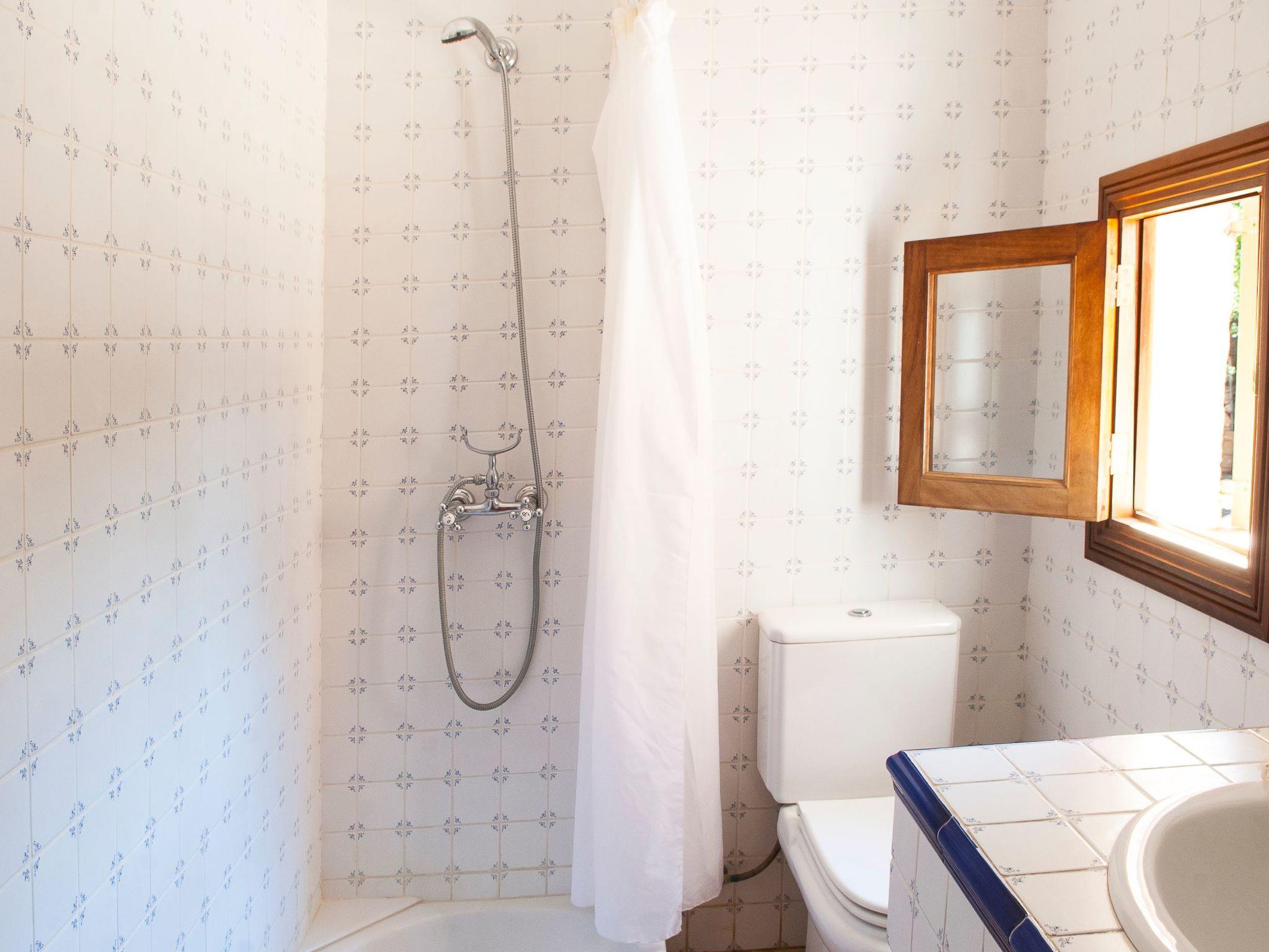 Main house: The living room, dining room and kitchen with breakfast nook are located on the ground floor. All rooms have access to the terrace. On this floor there is also a double bedroom with en-suite shower room and a separate shower room next to the kitchen. An internal staircase leads to the upper floor with two bedrooms: one with a double bed and the other with two single beds. One of these bedrooms has access to the balcony/terrace above the entrance. These two bedrooms share a bathroom.