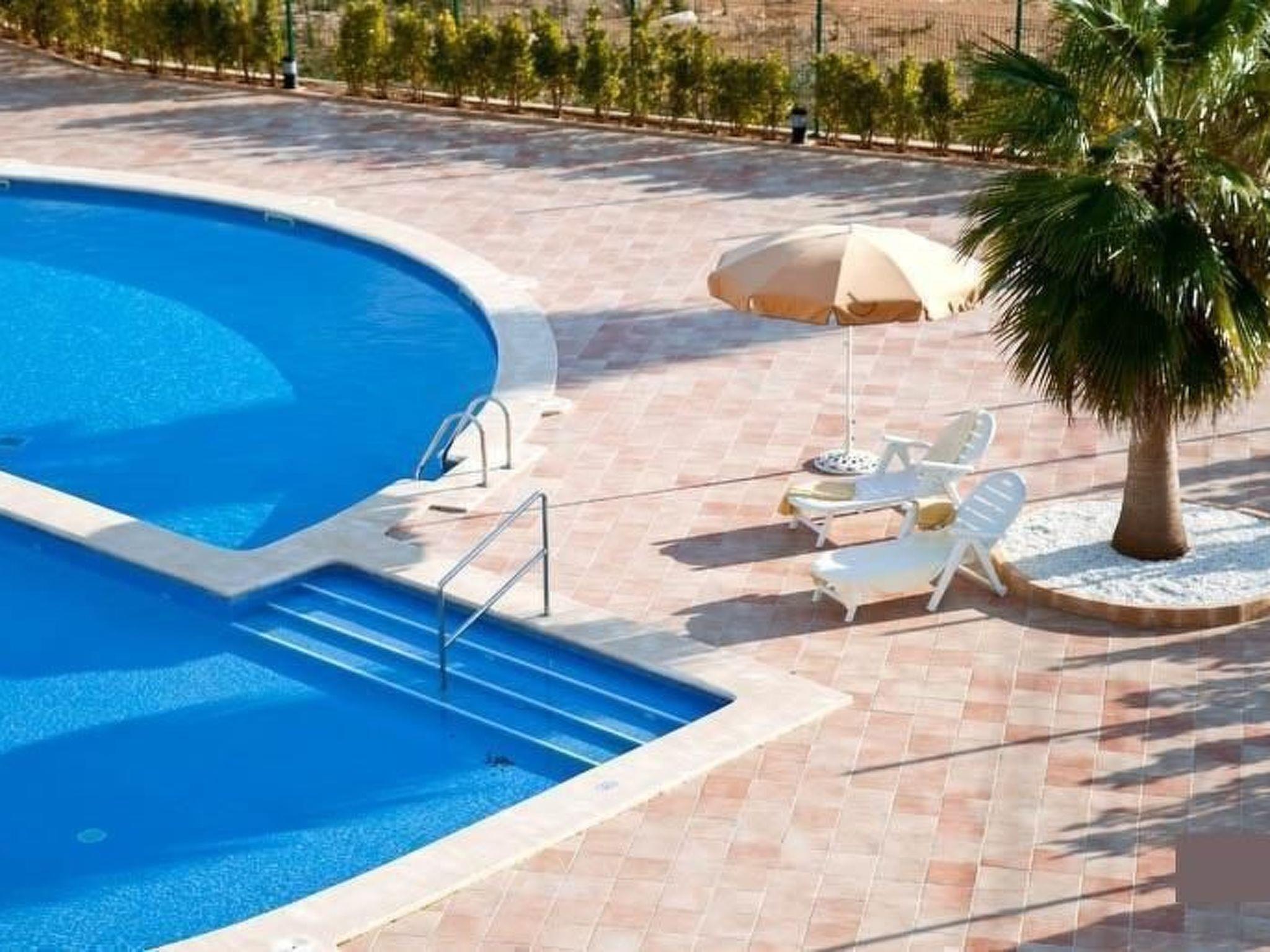 There is a covered and open terrace, as well as a private roof terrace with sea views. There is also a small private garden and a very large communal pool (including children's pool). The residential complex has a very spacious pool area. The complex has a café - restaurant area