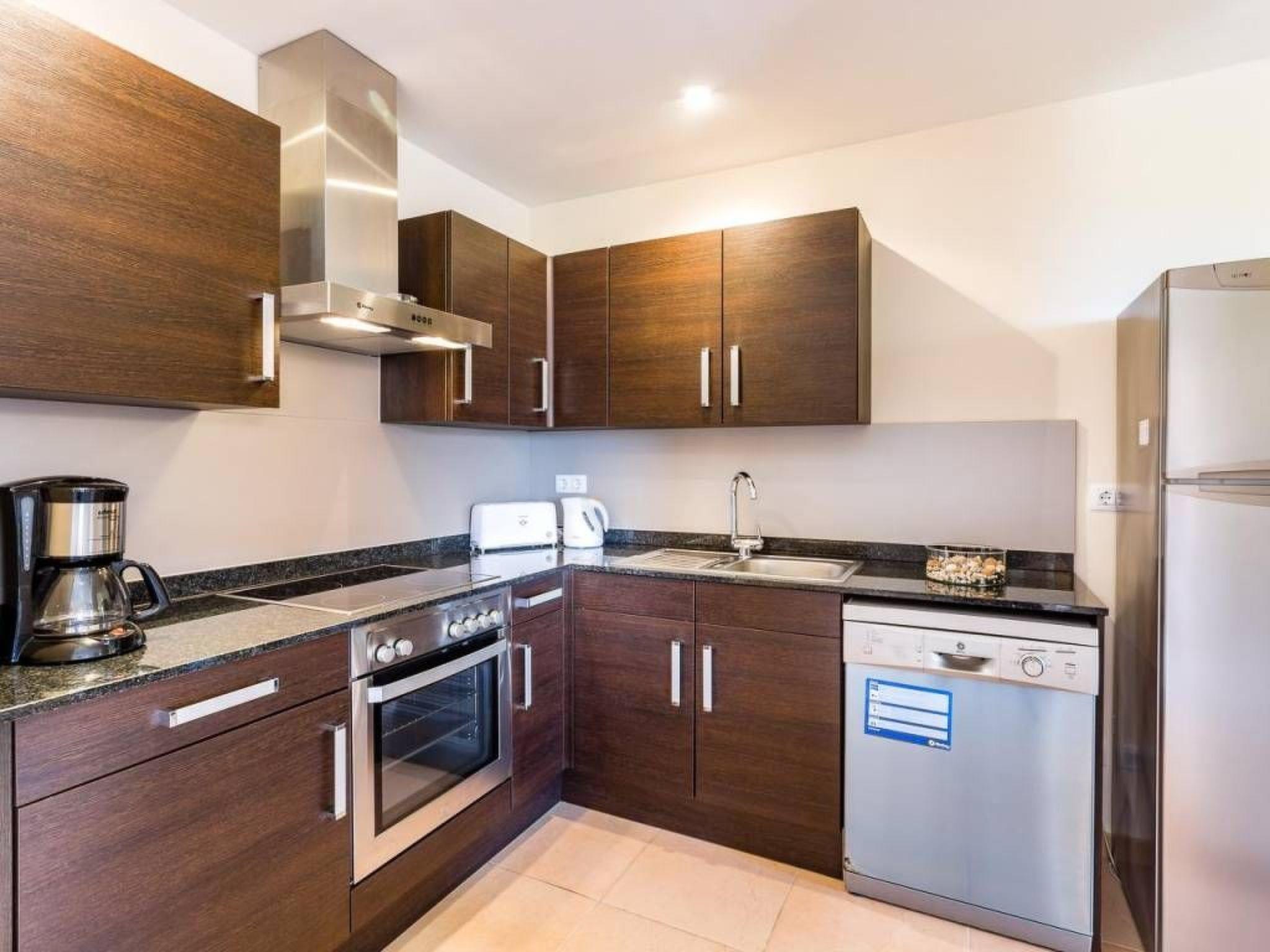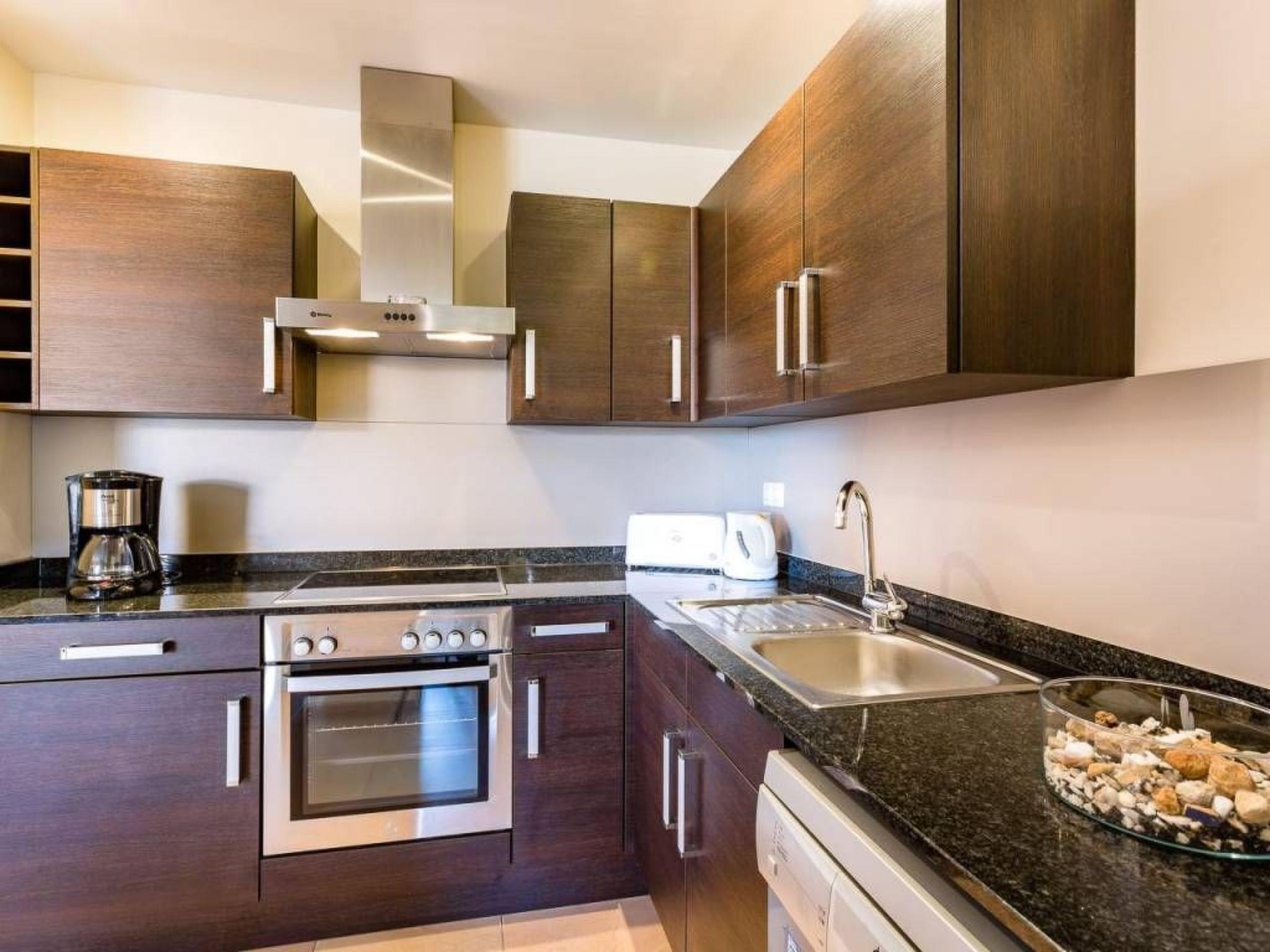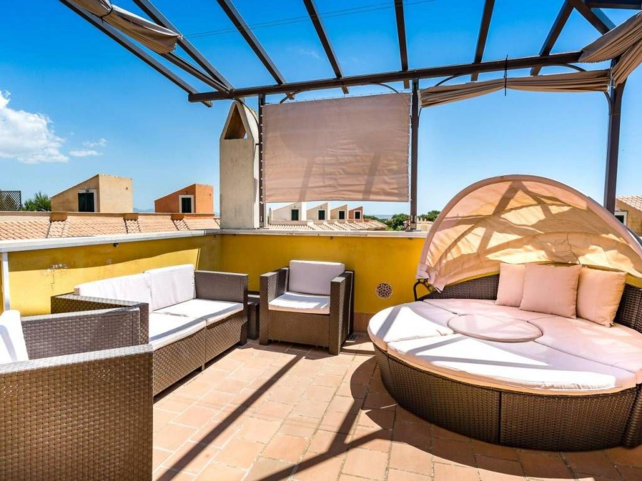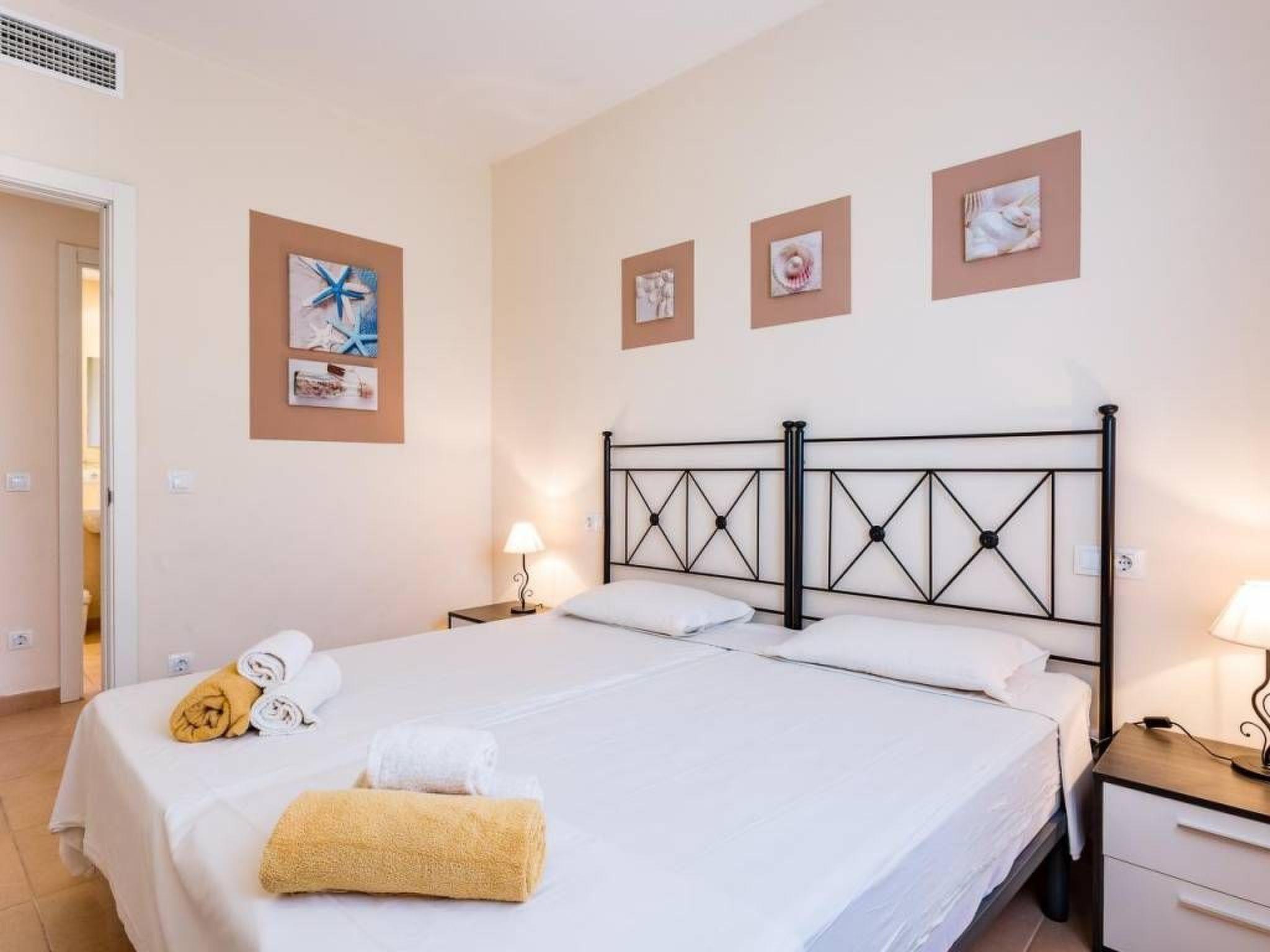 Modern holiday apartment with communal pool near to the beach and golf courses in the surrounding areaThe Mediterranean second floor apartment is located in the beautiful residential area of El Paraiso (Campos municipality/ Sa Rapita area). The complex is in close proximity to the beach of Es Trenc.The maximum occupancy is six people (four adults and two children) per apartment. This modern second floor apartment has high-quality furnishings. A spacious and light-filled living-dining area with direct access to the balcony, two bedrooms, two bathrooms are available. The modern kitchen is equipped with dishwasher, large fridge with separate freezer compartment, oven, Ceran hob, coffee machine, toaster, electric hand mixer and washing machine. Further amenities include satellite TV, an ironing board, iron and tea towels.A roofed and open balcony, as well as a private roof terrace with a partial sea view are available. There is a very large communal swimming pool (including children's pool). The residential complex has a very spacious pool area.Free WLAN access for all tenants is available throughout the whole complex. Upon request, children’s or extra beds can be provided.The second floor apartment in Sa Rapita (Campos municipality) is just 2 km from the beautiful sandy beach of Es Trenc. You can reach the popular natural sandy beach of Es Trenc and the surrounding golf courses of Son Antem, Son Gual and Maioris in a few minutes by car.