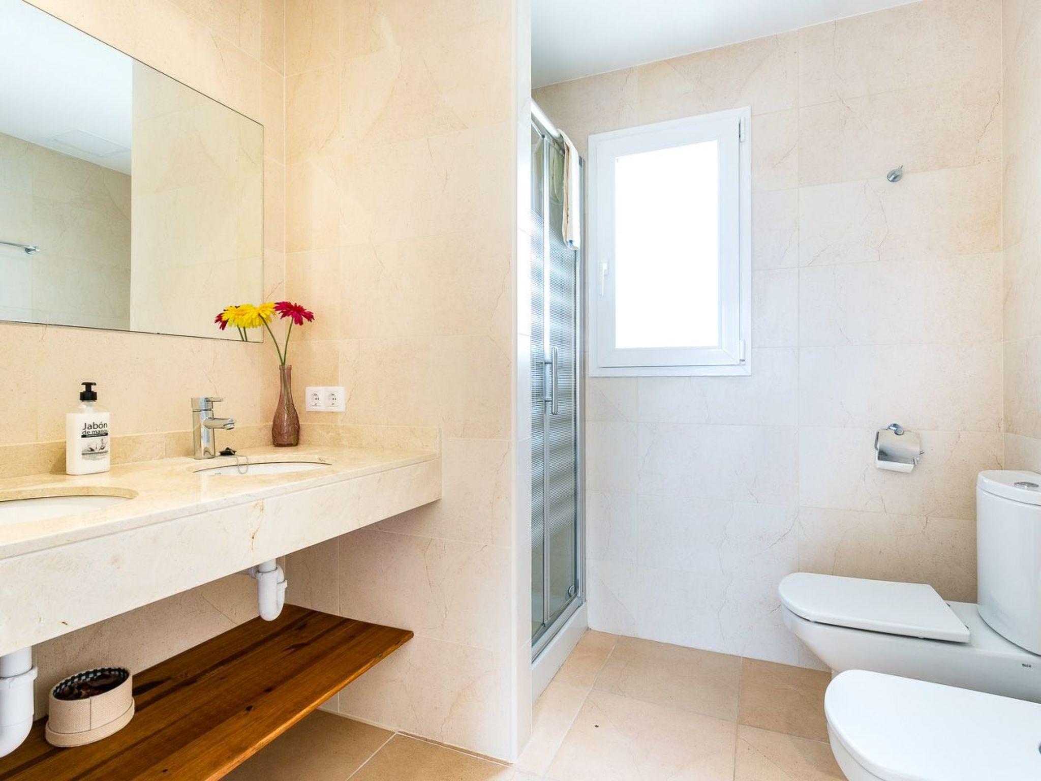 Modern holiday homes with communal pool near to the beach and golf courses in the surrounding areaThe complex is located in the beautiful residential area of El Paraiso (Campos municipality/ town of Sa Rapita) only 2km from the beautiful sandy beach of Es Trenc. The complex has a very spacious pool area (including children’s pool). You can reach the popular natural sandy beach of Es Trenc and the surrounding golf courses of Son Antem, Son Gual and Maioris in a few minutes by car. Free WLAN access is available throughout the whole complex. Beach, golf, biking, or wellness. There are many recreational possibilities. Ideal for families or large groups.Max occupancy 4 adults (+ children) per apartment, light-filled living and dining room , modern and fully-equipped open kitchen, two bedrooms, two bathrooms, terraces with sea view. Upon request, children’s or co-sleeper beds are available! Modern kitchen with dishwasher, large fridge with separate freezer, oven, Ceran hob, coffee machine, toaster, electric hand blender, satellite TV, washing machine, ironing board, iron, bed linen, towels, tea towels.The apartments in the basement have access to the garden, while the apartments on the upper floor have access to the balcony or roof terraces.Free WLAN access for all tenants is available throughout the whole complex. Upon request, children’s or extra beds can be provided.The semi-detached house in Sa Rapita (Campos municipality) is just 2 km from the beautiful sandy beach of Es Trenc. You can reach the popular natural sandy beach of Es Trenc and the surrounding golf courses of Son Antem, Son Gual and Maioris in a few minutes by car.