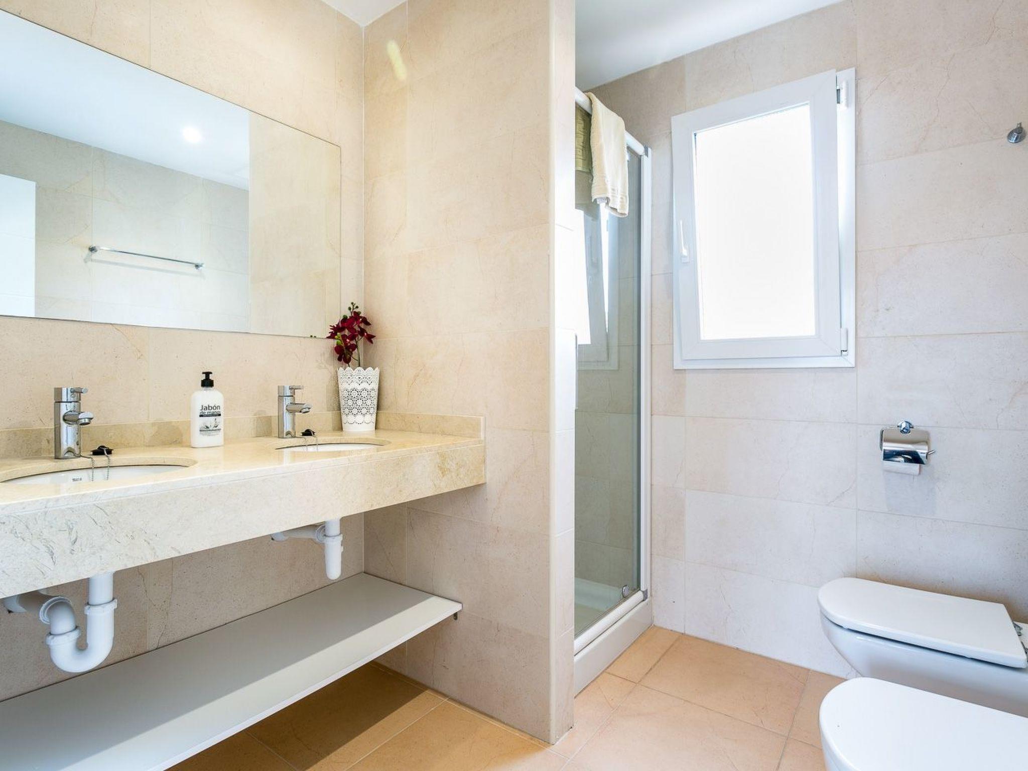 A roofed and open terrace, as well as a private roof terrace with a sea view are available. There is also a small private garden and a very large communal swimming pool (including children's pool). The residential complex has a very spacious pool area.