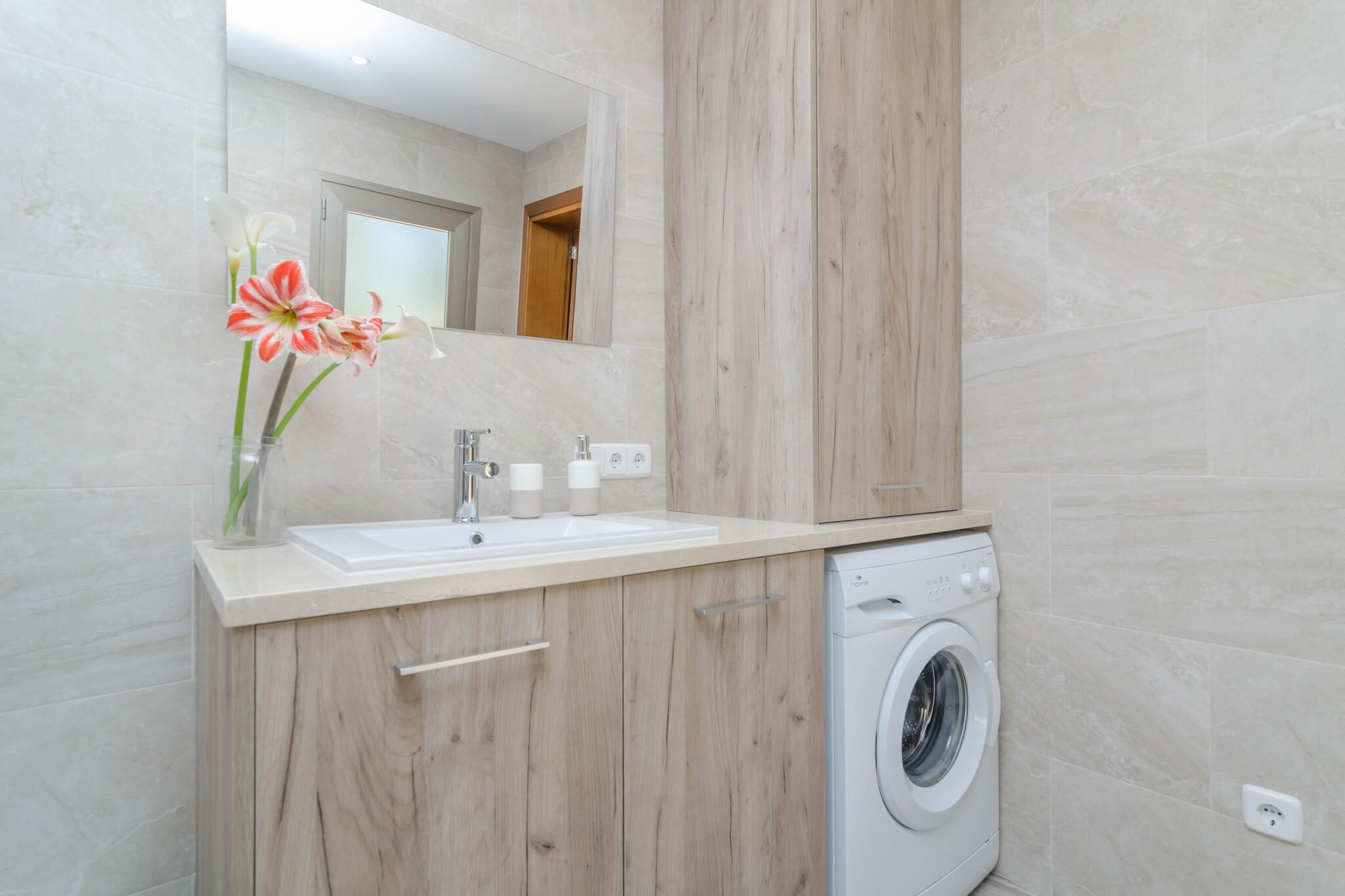 Stue, Køkken(komfur, kaffemaskine, ovn), soveværelse(2x enkeltseng), soveværelse(dobbeltseng), soveværelse(dobbeltseng), badeværelse, badeværelse, mikrobølgeovn, opvaskemaskine , køle-fryseskab, bruser, bruser, håndvask, håndvask, toilet, toilet, klimaanlæg, klimaanlæg, klimaanlæg, grill, swimmingpool, barneseng, barnestol