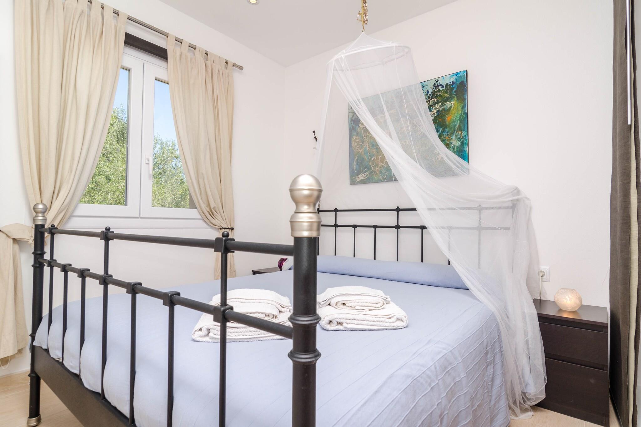 Het privé chloorzwembad heeft afmetingen van 6 m x 3 m en een diepte die varieert van 1,2 m tot 1,7 m. Op een van de zes ligstoelen kunt u een ontspannen middag zonnebaden en dankzij de buitendouche op elk gewenst moment een verfrissende douche nemen. Naast het zwembad is er een gemeubileerd terras, beschermd door een rieten luifel en witte gordijnen, een heerlijke plek voor een barbecue met vrienden. Op de eerste verdieping heeft u toegang tot nog een groot terras met hangmatten en uitzicht op de urbanisatie. Dit prachtige pand is onafhankelijk en volledig omheind, het is gelegen in een rustige urbanisatie, zeer dicht bij het strand en met directe buren. Houd er rekening mee dat de kelder van het huis gesloten is. De moderne woon-eetkamer met airconditioning nodigt u uit om satelliet-tv te kijken, naar muziek te luisteren of samen met het hele gezin te dineren. De open keuken is van alle gemakken voorzien, waaronder een keramische kookplaat, wasmachine, strijkijzer en strijkplank. Op de begane grond bevinden zich drie slaapkamers, waarvan twee met een tweepersoonsbed en één met een eenpersoonsbed. Op de eerste verdieping is er slechts één slaapkamer met een tweepersoonsbed en een grote en-suite badkamer met ligbad en douche. Twee badkamers, één met ligbad en één met douche op de begane grond, maken de uitrusting compleet. Alle slaapkamers zijn voorzien van airconditioning en kledingkasten en voor onze jongste gasten kunnen we een kinderbedje en kinderstoel klaarmaken. Alle kamers zijn liefdevol ingericht en hebben een romantische sfeer. In ongeveer tien minuten lopen bereikt u het strand van Cala SantanyÃ, een strand met fijn zand en kristalhelder water. Voor de kust ligt de rots Es Pontés midden in zee en waar vaak spectaculaire beklimmingen worden gemaakt. De hele oostkust kent vele droomstranden, bijvoorbeeld Cala Figuera, Cala Llombards, Cala S'Almonia en Caló des Moro. In Cala Egos kun je een bad nemen in het natuurlijke rotszwembad. Het natuurpark Mondragó ligt dichtbij en daar kunt u niet alleen een excursie maken door het mediterrane bos, maar ook zonnebaden op een van de twee zandstranden. In het stadje Santanyí kunt u boodschappen doen, uit eten gaan of door de steegjes slenteren. Op woensdag en zaterdag vindt de lokale markt plaats, waar ze verse groenten en fruit, souvenirs, kleding en handwerk aanbieden. In Las Salinas kun je de spectaculaire bergen zeezout zien drogen onder de mediterrane zon en zout van goede kwaliteit kopen in de winkels. Aan het begin van de stad ligt de Botani Cactus, een botanische tuin gespecialiseerd in vetplanten en cactussen. Opmerking: deze huuraccommodatie accepteert geen klanten jonger dan 30 jaar, behalve in gevallen waarin het om een ??gezinsverblijf gaat. We hebben kopieën van het identiteitsbewijs van elke persoon nodig om de reservering te kunnen accepteren. Voor eventuele extra kosten kunt u contact opnemen met de adverteerder. Wij accepteren geen huisdieren. Het vieren van evenementen is niet toegestaan. Er is buiten parkeergelegenheid voor 1 auto. Afstanden Strand: 0,9 km - Cala Llombards Luchthaven: 48,2 km - Son Sant Joan Golfbaan: 17,2 km - Vall D'or Golf Stad: 0,01 km - Cala Santanyi Treinstation: 34 km - Manacor Bushalte: 0,8 km - Carrer Llombards, Santanyi Veerboot: 56,1 km - Haven van Palma Ziekenhuis: 35 km - Manacor-ziekenhuis Toeristenvergunning: VT/1909 Op de Balearen geldt een toeristenbelasting, Ecotasa genaamd, die door de gast moet worden betaald. Het bedrag varieert tussen EURO 0,55 / per nacht per persoon in het laagseizoen en EURO 2,2 / per nacht per persoon in het hoogseizoen. Vanaf de negende dag wordt het met de helft verminderd. Personen onder de 16 jaar uitgesloten. Bij de ingang dient u de borg rechtstreeks aan de eigenaar te betalen. Airconditioning (januari - december): 0,32 EUR/Kw (optioneel)
