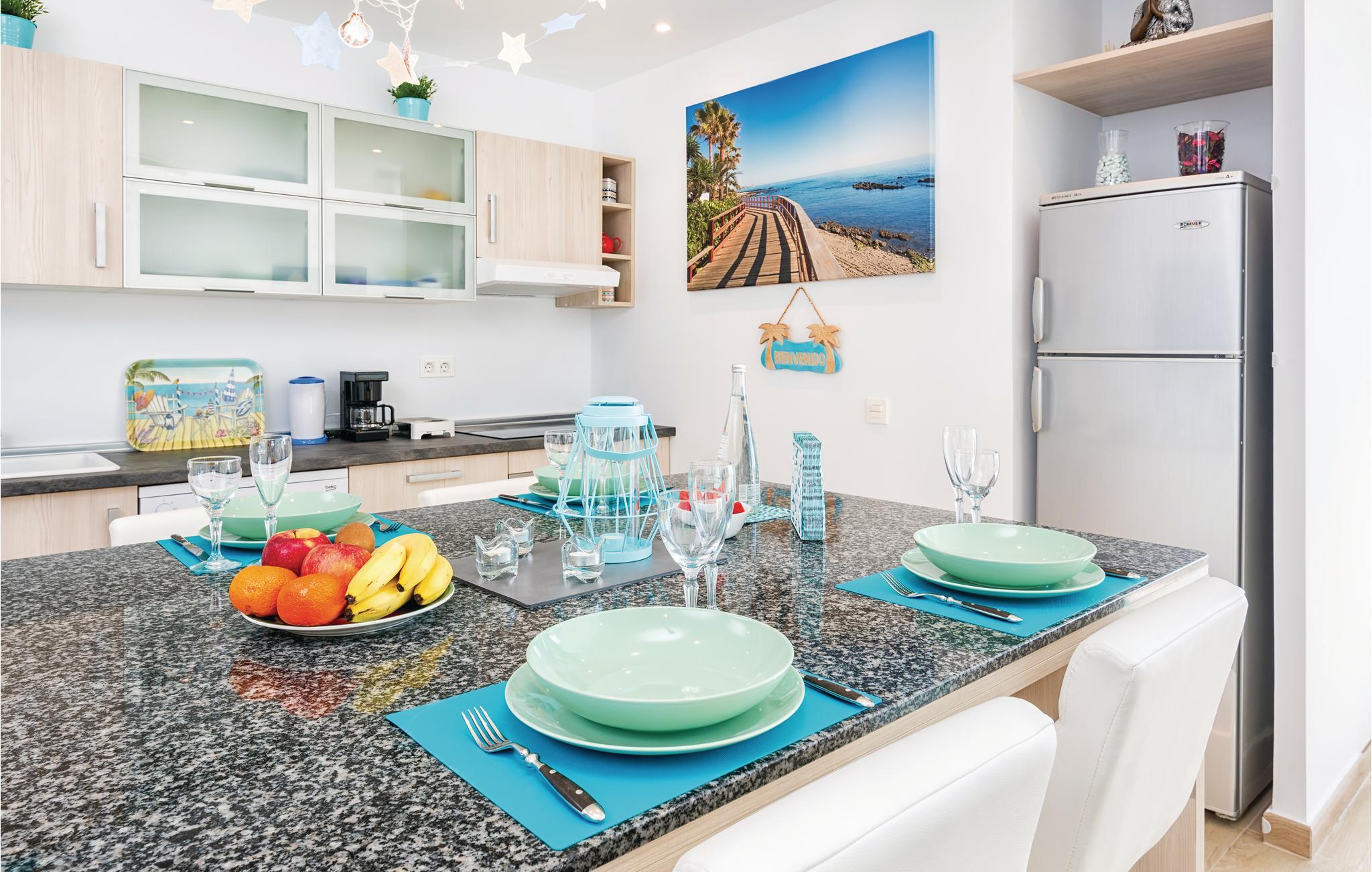 Denne dejlige ferielejlighed rummer to soveværelser og ligger i boliganlægget Algaida i Calahonda. Komplekset ligger kun 20 m fra den herlige strand og har både legeplads, tennisbane, to fælles pools og et stort velplejet haveanlæg, hvor I kan nyde den smukke udsigt over Middelhavet. I kan gå til alle former for restauranter, barer og butikker. Lejligheden er stilfuldt indrettet og fra terrassen kan I nyde en betagende 180grader udsigt over havet. I stuen er der bekvemme sofaer, stort tv, klimaanlæg (v/k) og i det åbne køkken en flot kogeø. I begge soveværelser er der dobbeltseng, i det største soveværelse et tv, og klimaanlæg. I badeværelset er der en rummelig bruseniche uden trin. I hele lejligheden er der lysdæmpere og praktisk USB-tilslutning og trådløst internet.