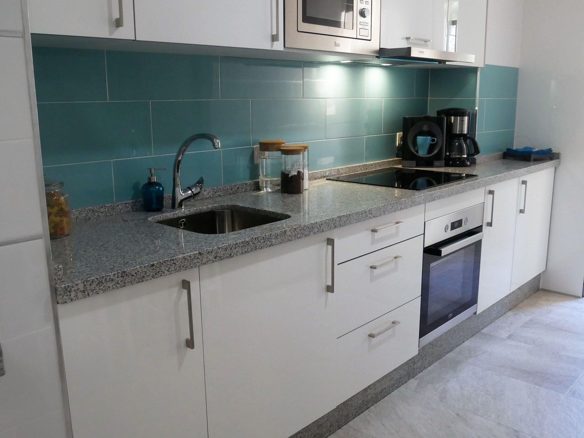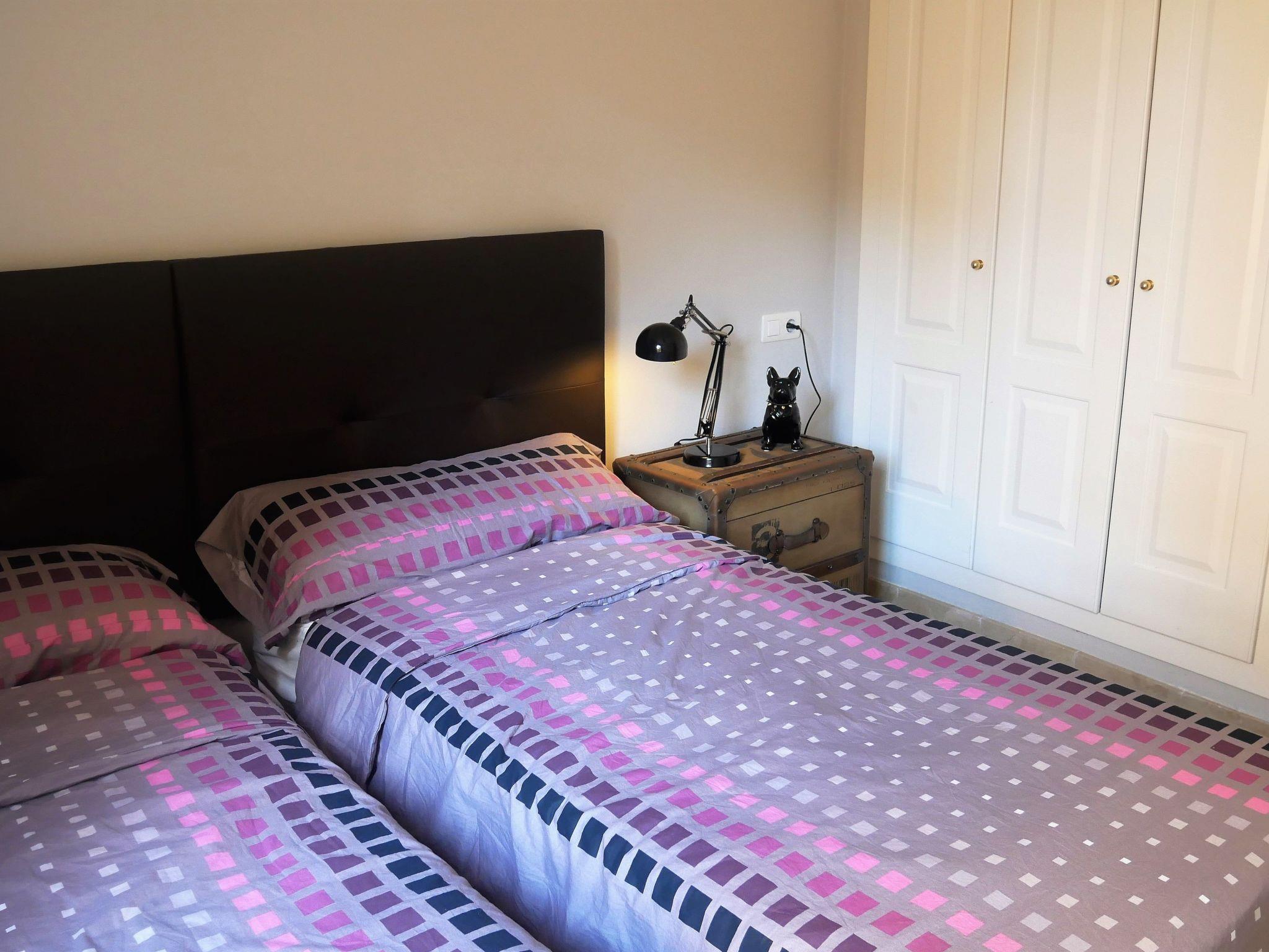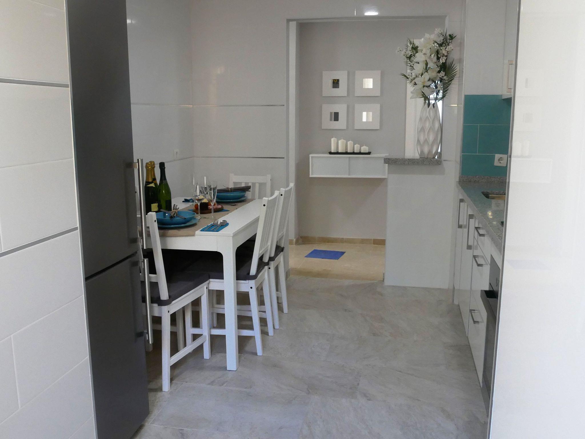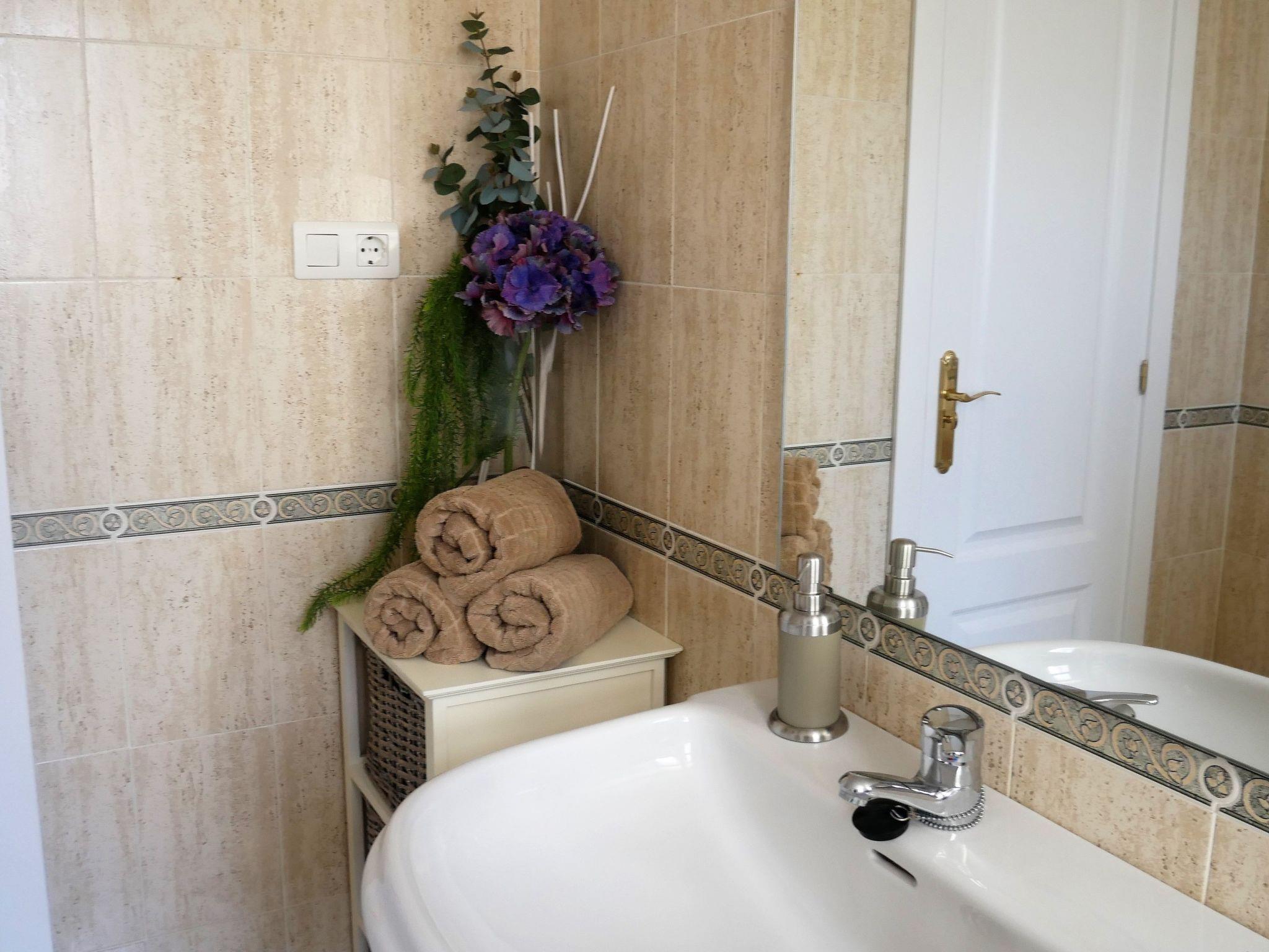 There are 3 bedrooms, a spacious lounge with dining room, 2 bathrooms and a spacious terrace for breakfast with stunning views. Space for 6 people and a cot are at your disposal. TV viewing via satellite TV and free Wi-Fi available. Air conditioning both cold and hot is provided in all rooms. The flat comes with bed linen, bath linen, all electrical appliances provided in the fully equipped kitchen such as a dishwasher, toaster , coffee maker etc.... There is also a free party room in the resort which you can use for any party if booked. A washing machine, iron and ironing board are also available.