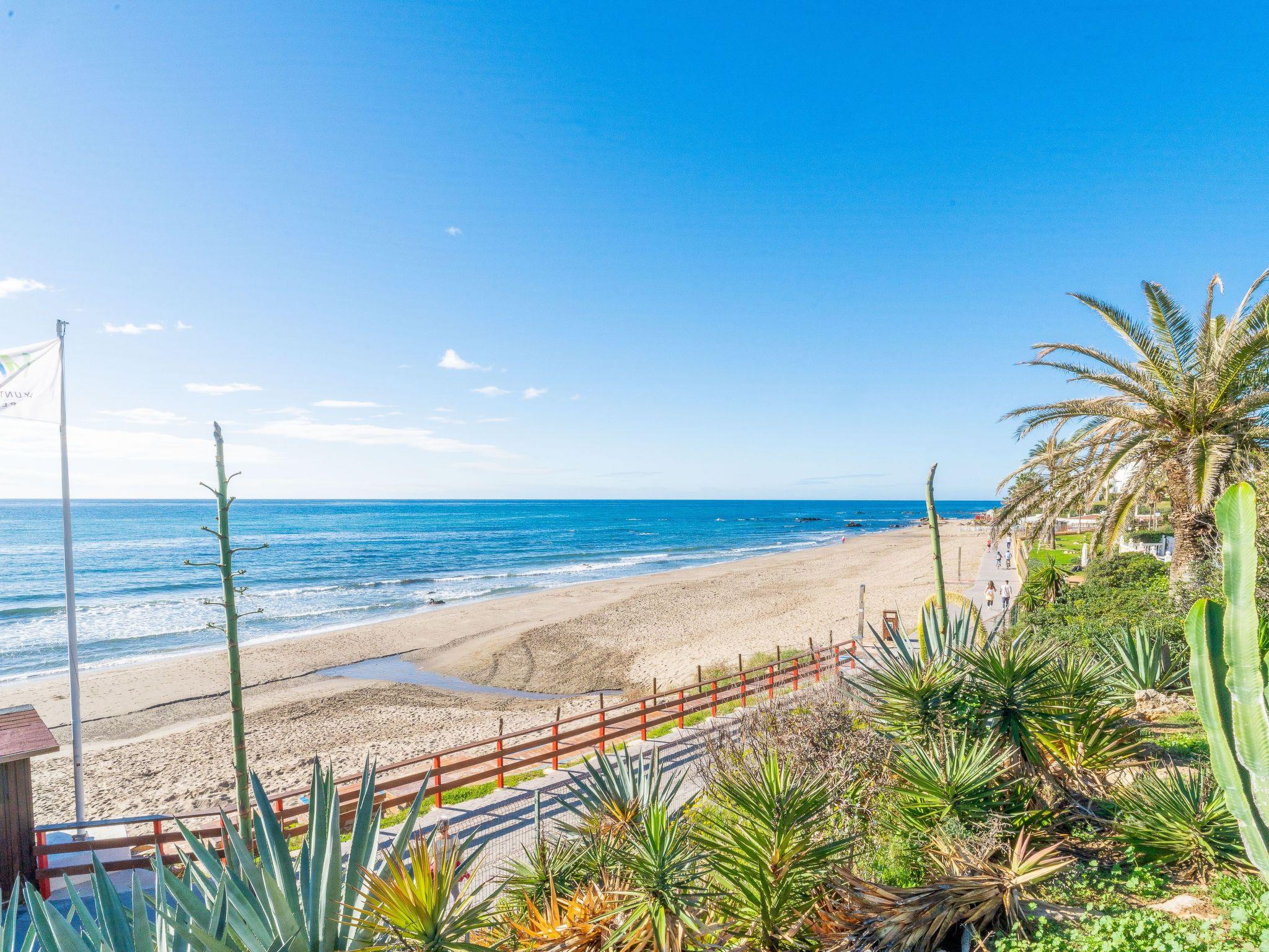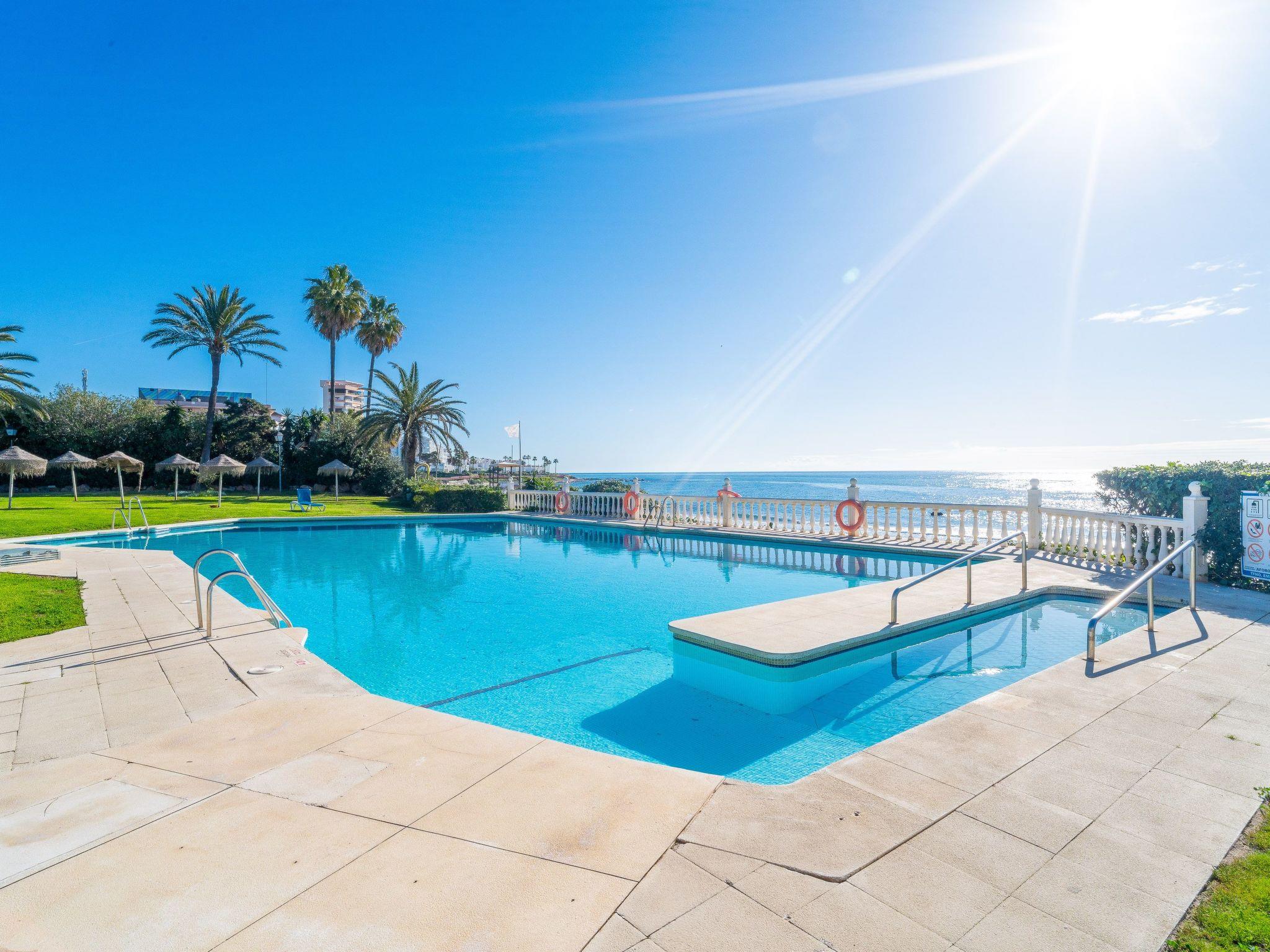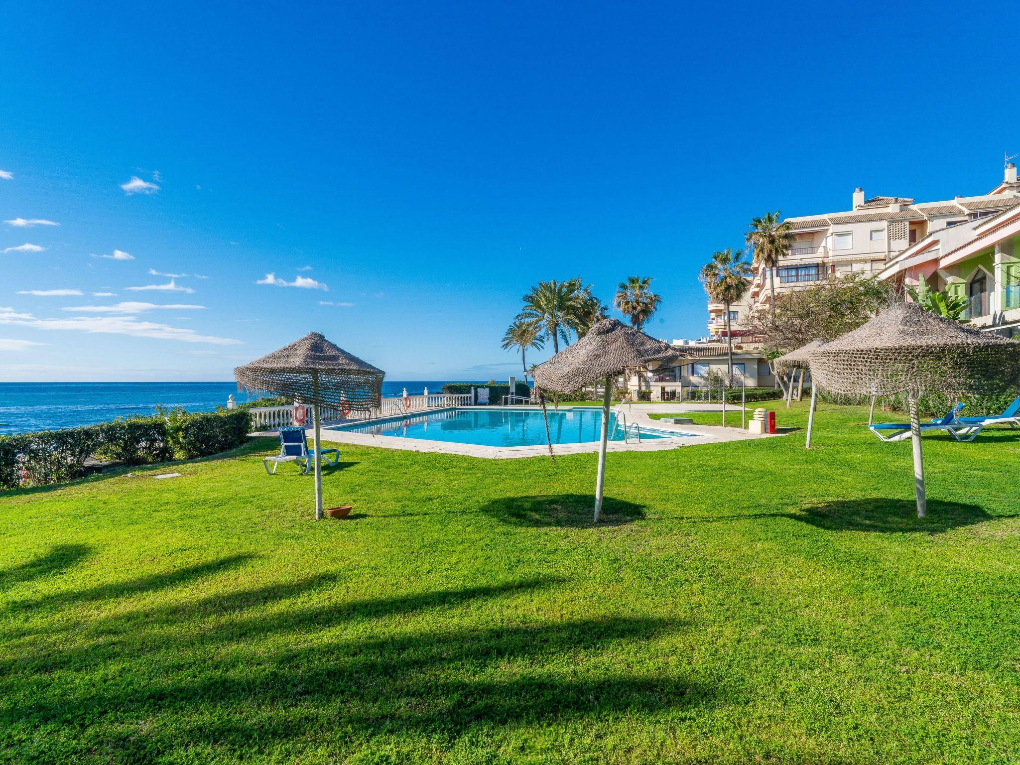 Beautiful flat in'un des quartiers les plus recherchés de la Riviera del Sol près de Cabopino. L'flat is LESS THAN TWO MINUTES WALK FROM THE BEACH! The property comprises a living/dining room, a fully equipped kitchen, 2 double bedrooms, a bathroom and a terrace with table and chairs and sea views! However, the highlight of this flat is its exceptional location. There is a large swimming pool reserved for guests of this small complex. There is also a tennis court and a padel court. The private garden gate leads directly to the beautiful sandy beach, just metres from the famous and very elegant beach and with beautiful chiringitos within walking distance. Clients who have visited again and again to enjoy the spectacular position of this magnificent flat.