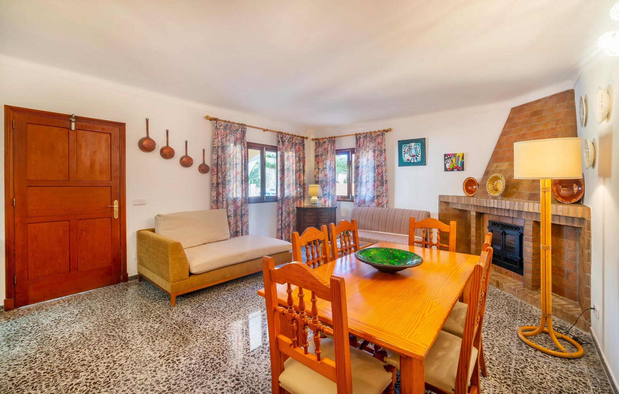 Blæksprutter er smarte dyr. Med mange smarte tricks og en fantastisk evne til at forvandle sig, er de ideel til livet i havet. Det gælder også villaen “Calamar 7”, der – beliggende midt i kystbyen Portocolom – repræsenterer en overkommelig mulighed for at kombinere urban mangfoldighed med en maritim atmosfære. Ideelle forhold for en fantastisk ferie på Mallorca! Udeområdet er indrammet af forskelligartet middelhavsvegetation. Der er flere terrasser at vælge imellem, så I altid kan bo det rigtige sted efter solens vej. Vil I give jeres hud en pause, kan I også trække jer tilbage til den overdækkede terrasse med bambusmøbler. En grill er tilgængelig for at tilberede et lækkert måltid om aftenen i en hyggelig atmosfære. Havet ligger kun 250 meter væk, så I kan altid tage en fordøjelsestur inden sengetid. Selve huset kan beskrives som typisk mallorcansk i forhold til dets indretning: Designelementer som potter og tallerkener på væggene refererer til øens landbrugsfortid, som ikke længere havde noget tilfælles med nutidens berømthedspomp. Vi undgår bevidst pompøse højdepunkter, men det har det hyggelige hus på Mallorca ikke brug for. For det er sammenkomsterne i den hyggelige stue, den hyggelige madlavning i det fuldt udstyrede køkken og de stille nætter i de praktisk indrettede fire dobbeltværelser, der gør denne jordnære ejendom så attraktiv. To af soveværelserne har en king-size seng, to har hver to enkeltsenge, så forskellige rejsekonfigurationer kan tænkes. To badeværelser sikrer, at der ikke er kø til brusebadet om morgenen. Fans sikrer, at de fugtige sommerdage ikke går jer til hovedet. Takket være Smart TV'et kan I også slappe af om aftenen med en god film. I villaen “Calamar 7” i kystbyen Portocolom kan I tilbringe jeres ferie i et velholdt boligområde tæt på havet - med mange muligheder for at forkæle jeres smagsløg på restauranter eller hamstre lækkerier til den lokale grill . Ud over den naturlige havn, den såkaldte Calas de Mallorca, giver adskillige smukke strande i regionen mulighed for at komme i kontakt med havet. Disse kan også udforskes under vandreture.