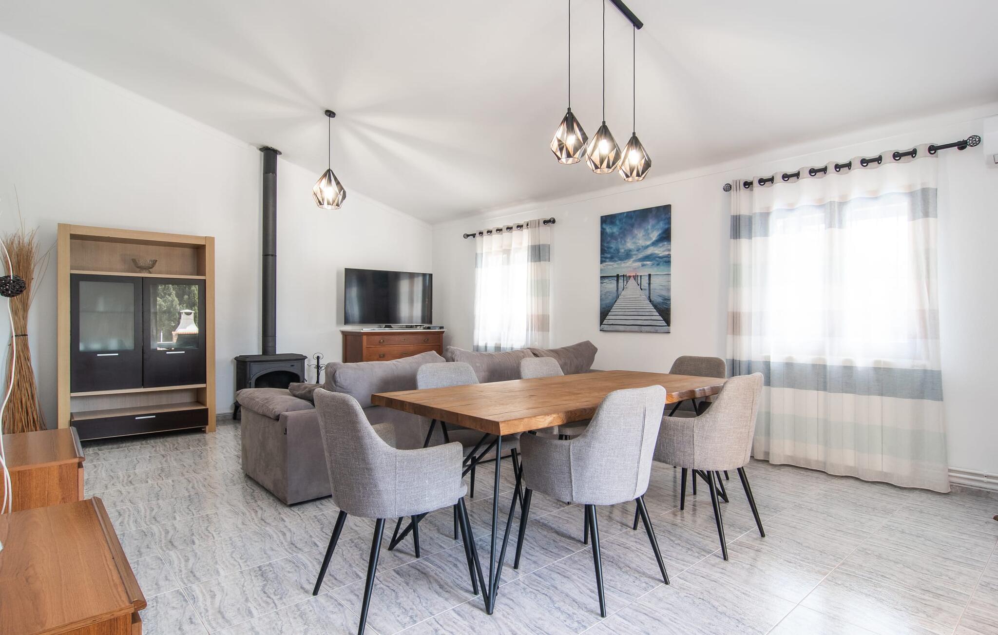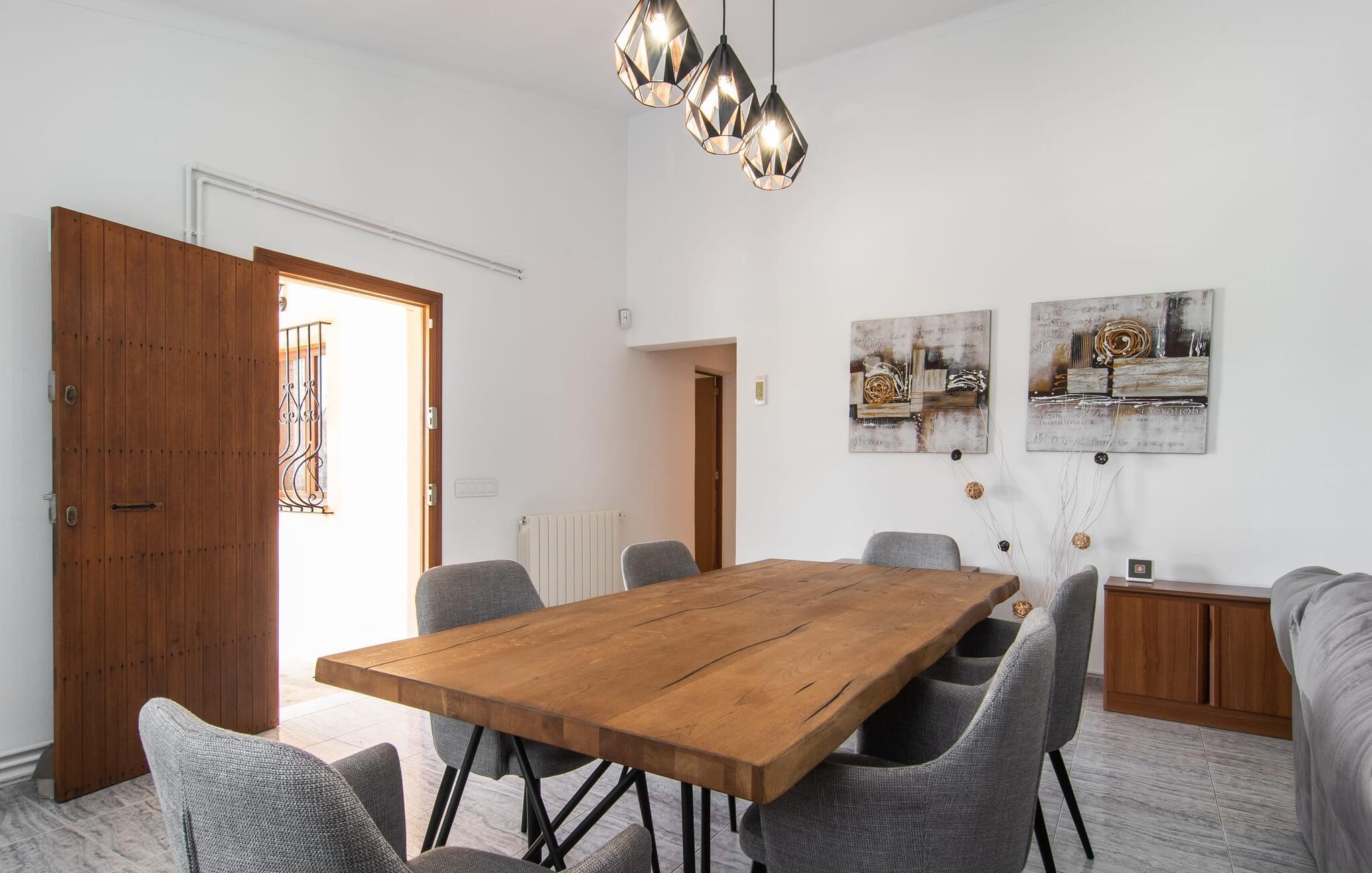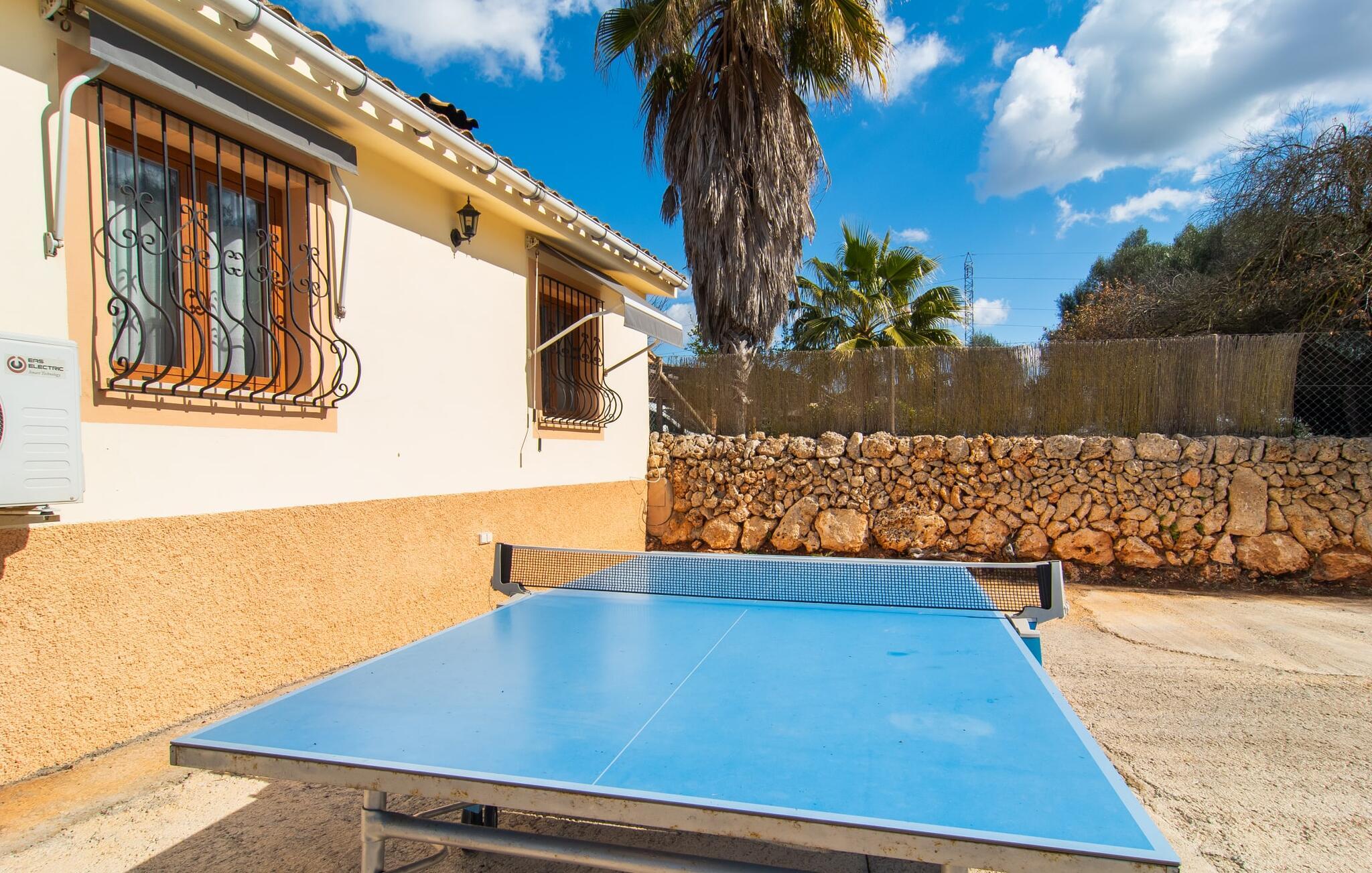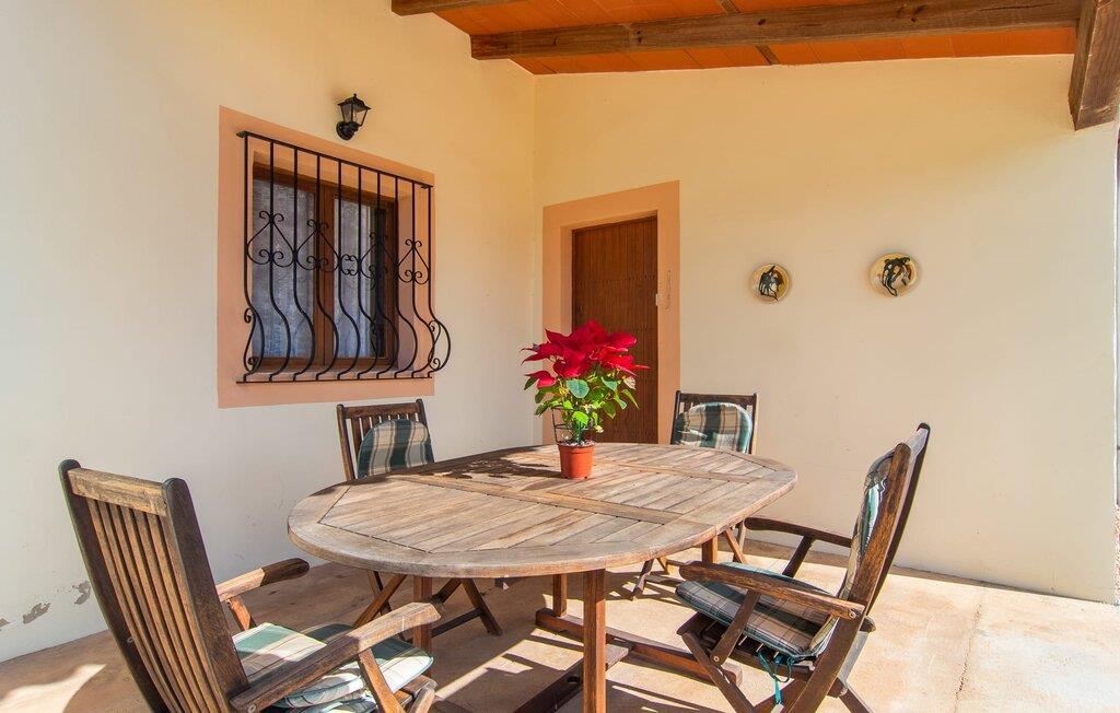 Den indbydende "Calderitx" bondegård er ideel til familier eller cykelentusiaster. I den charmerende feriebolig i centrum af øen vil I opleve en helt igennem vellykket ferie i mallorcansk stil. Det medvirker også det smukt designede udeareal i det roligt beliggende feriehus. Infinity-poolen er indlejret i en græsplæne. Der er komfortable liggestole til solbadning eller en afslappende siesta. Der er i alt to overdækkede udendørs siddepladser. Den afslappede lounge med afslappede siddepladser er i skyggen af markiser. Spiseområdet, bygget på verandaen direkte ved huset, er et vidunderligt sted at spise udenfor på grund af det milde mallorcanske klima. Det er i umiddelbar nærhed af den murede grillplads. Men verandaen er også velegnet til morgenmad i jeres eget fritidstempo. Børn finder plads nok til at lege. Et bordtennisbord er også tilgængeligt til sjove dueller. Interiøret i det kompakte bondehus i en afslappet Mallorca-stil er ideel til fire personer. Omdrejningspunktet er det lyse, kombinerede opholds- og spiseområde med åbent køkken. Den komfortable indretningsstil bevæger sig mellem moderne og mallorcansk hygge. Pejsen er ideel til de køligere stunder af året. Der er også varm-kold aircondition. I vil finde afslappende søvn i de to dobbeltværelser. Mellem de to soveværelser er det moderne badeværelse med bruseniche. Hvis der er behov for et hjemmekontor, er det bestemt muligt takket være fiberoptisk internet. I bestemmer selv, hvordan I vil tilbringe jeres ferie i "Calderitx"-gården - alt er muligt! Den familievenlige bondegård "Calderitx" tilbyder et sted at slappe af med pool, bordtennis, skyggefuld lounge og grill. Det smukke feriehus ligger i udkanten af Ariany, så hverdagens indkøb kan klares hurtigt. De smukke strande i Alcúdia-bugten, herunder Son Baulo eller Son Serra de Marina, er omkring 25 minutter væk i bil.