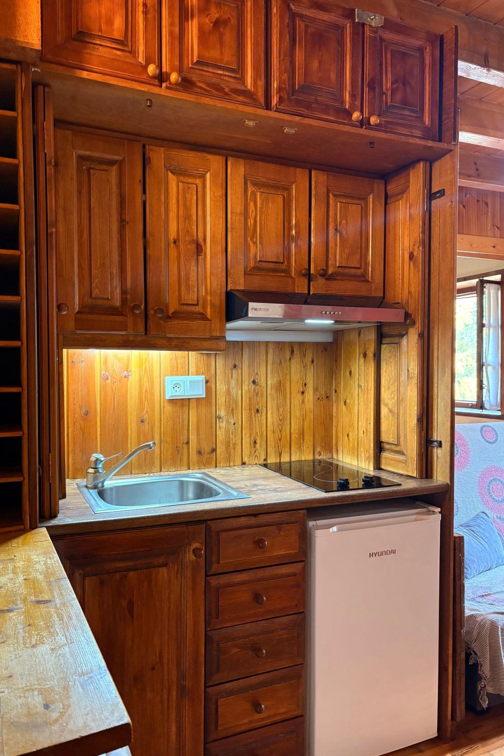 The interior of the flat has been carefully furnished to ensure a comfortable and hassle-free stay. The combination of a double bedroom and a sofa bed in the living room offers versatility to accommodate guests, while the kitchen has a practical ceramic hob and all the utensils necessary to prepare delicious meals. There is also a washing machine for exclusive use, which is particularly convenient for longer stays or after days spent exploring the great outdoors.
