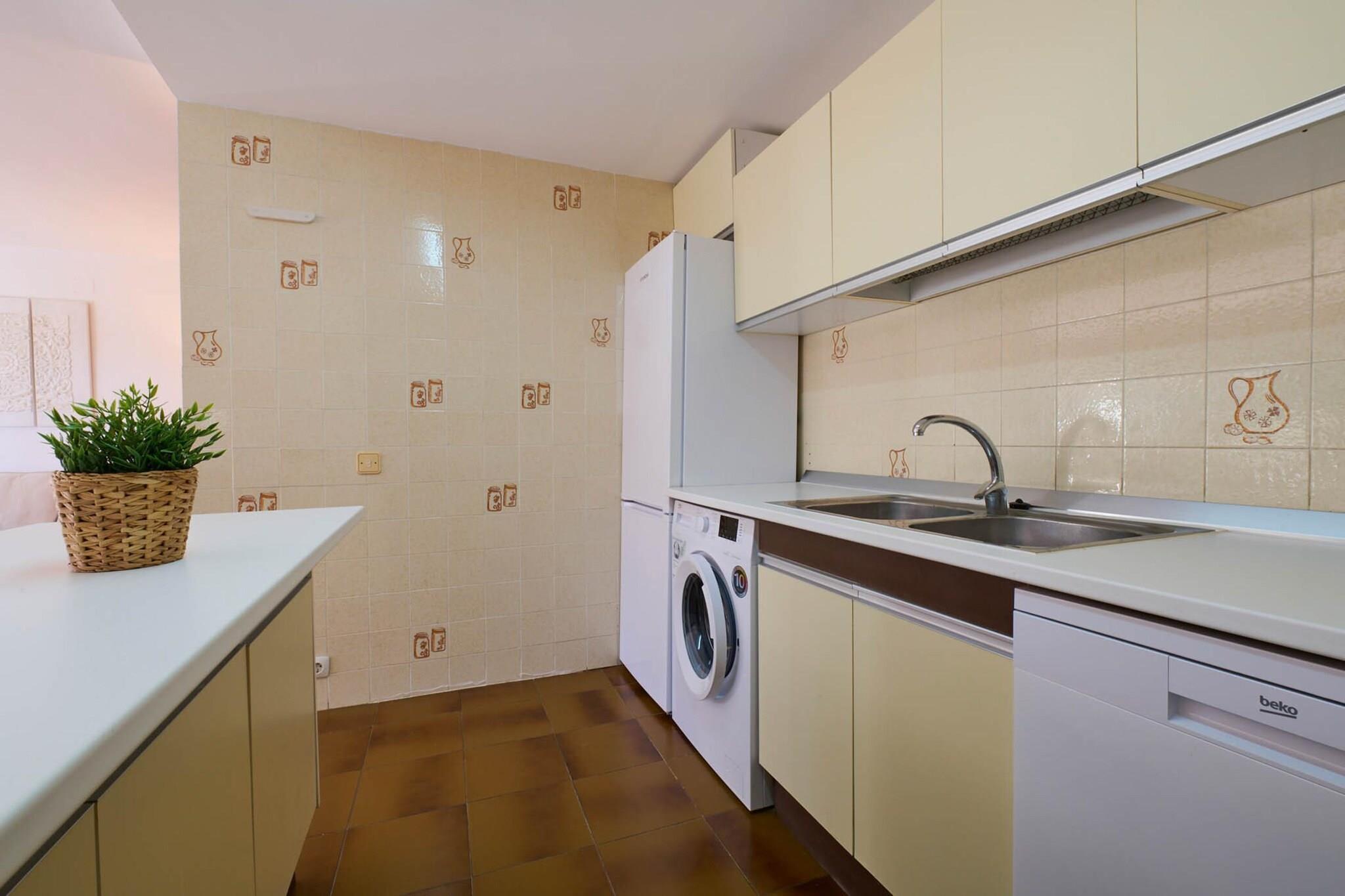 Denne rummelige lejlighed tilbyder et komfortabelt oase med to soveværelser, der kan rumme op til fem gæster. Med et generøst layout på 74 m² giver det en indbydende atmosfære i et familievenligt boligkompleks. Gæsterne kan slappe af på den private terrasse eller nyde den frodige have omkring ejendommen. Moderne faciliteter omfatter Wi-Fi, en vaskemaskine og et tv. En fælles swimmingpool med et særligt børneområde sikrer sjov for alle aldre. Lejligheden har også overdækket parkering i samme bygning, hvilket gør det bekvemt for dem, der rejser i bil. Lejligheden har en førsteklasses beliggenhed kun 500 meter fra byens centrum, hvor gæsterne kan udforske charmerende caféer, butikker og lokale markeder. En sandstrand ligger også inden for en kort gåtur på 500 meter, som tilbyder det perfekte sted til solbadning eller en forfriskende svømmetur. Et velassorteret supermarked ligger kun 400 meter væk, hvilket gør det nemt at købe daglige fornødenheder. For dem, der elsker golf, ligger en naturskøn bane 20 km fra ejendommen, hvilket giver en fantastisk mulighed for udendørs aktivitet. Det veludstyrede køkken i åbent plan sikrer en problemfri madlavningsoplevelse. Den har en keramisk kogeplade, køleskab, mikroovn, ovn og fryser. Yderligere bekvemmeligheder omfatter en opvaskemaskine, kaffemaskine, brødrister og elkedel. Med alt det nødvendige kan gæsterne nemt tilberede måltider og nyde et behageligt ophold.