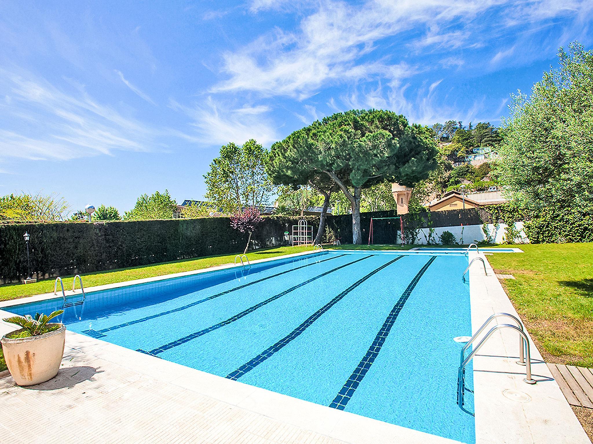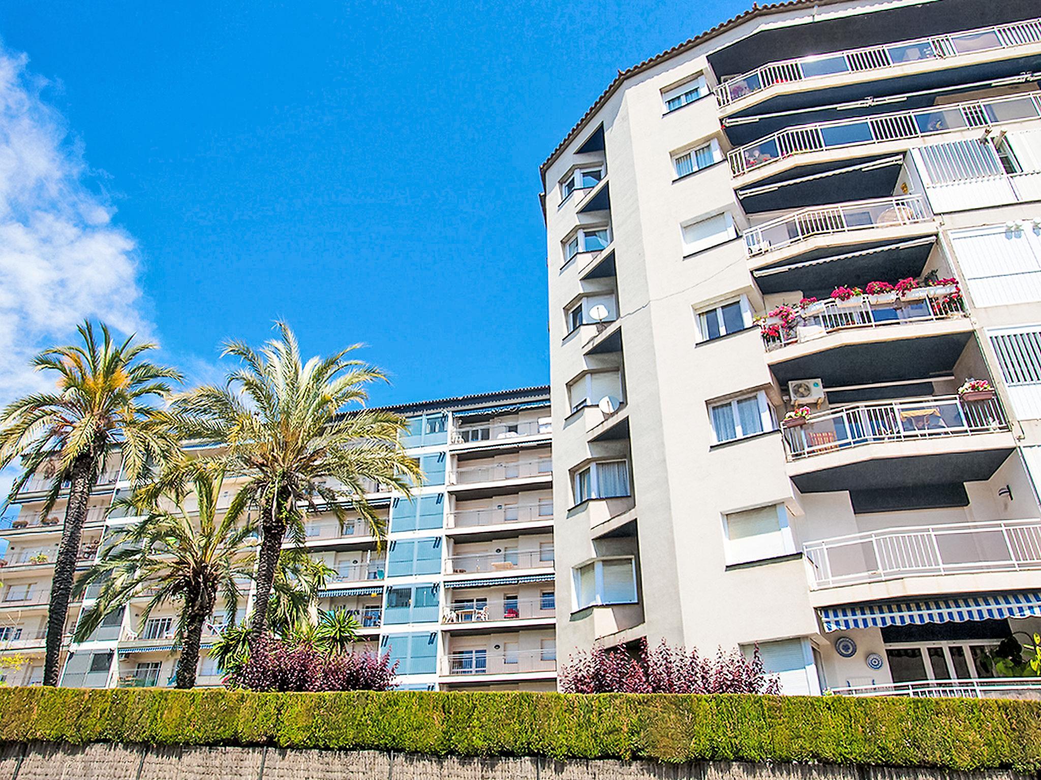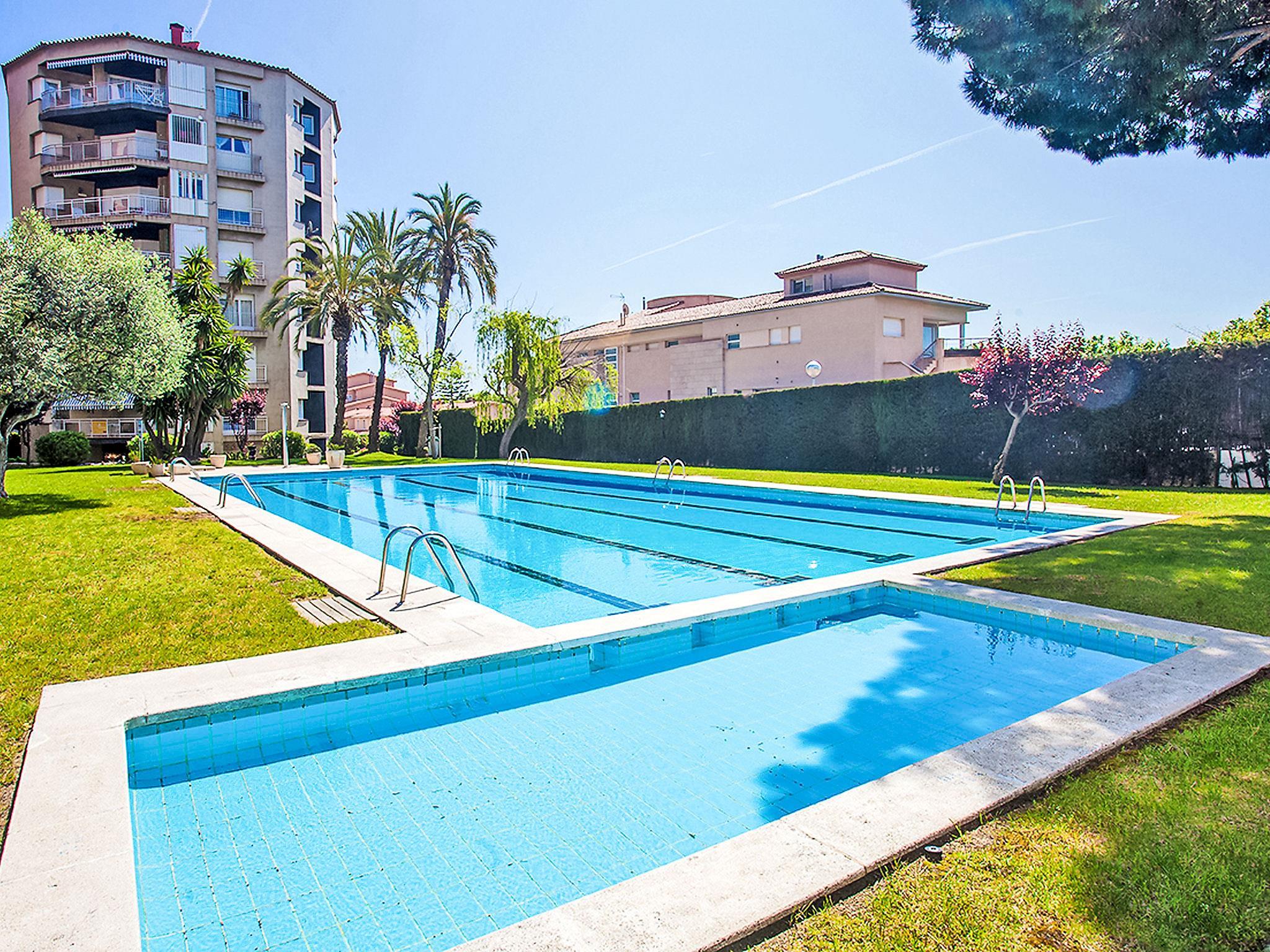 Calella: Apartment block "Edificio Blanqueries", 7 storeys, built in 1981. 1.5 km from the centre of Calella de la Costa, 50 m from the sea, 50 m from the beach. For shared use: property 1'400 m2 (fenced), garden with lawn, swimming pool (24 x 12 m, depth 200 cm, seasonal availability: 01.Jan. - 31.Dec.). Children's pool, outdoor shower, children's playground (swing). Private: garden furniture. In the house: lift. Public parking on the road. Grocery 200 m, restaurant 150 m, bus stop 100 m, railway station "Calella de la Costa" 2 km, sandy beach 50 m. Nearby attractions: Barcelona centro 50 km, Waterworld 20 km, Jardín Botánico Marimurtra 16 km, Jardín Botánico Pinya de Rosa 17 km, Castillo Medieval de Tordera 18 km. Please note: suitable for families. The owner does not accept any youth groups. Additional accommodations can be booked.