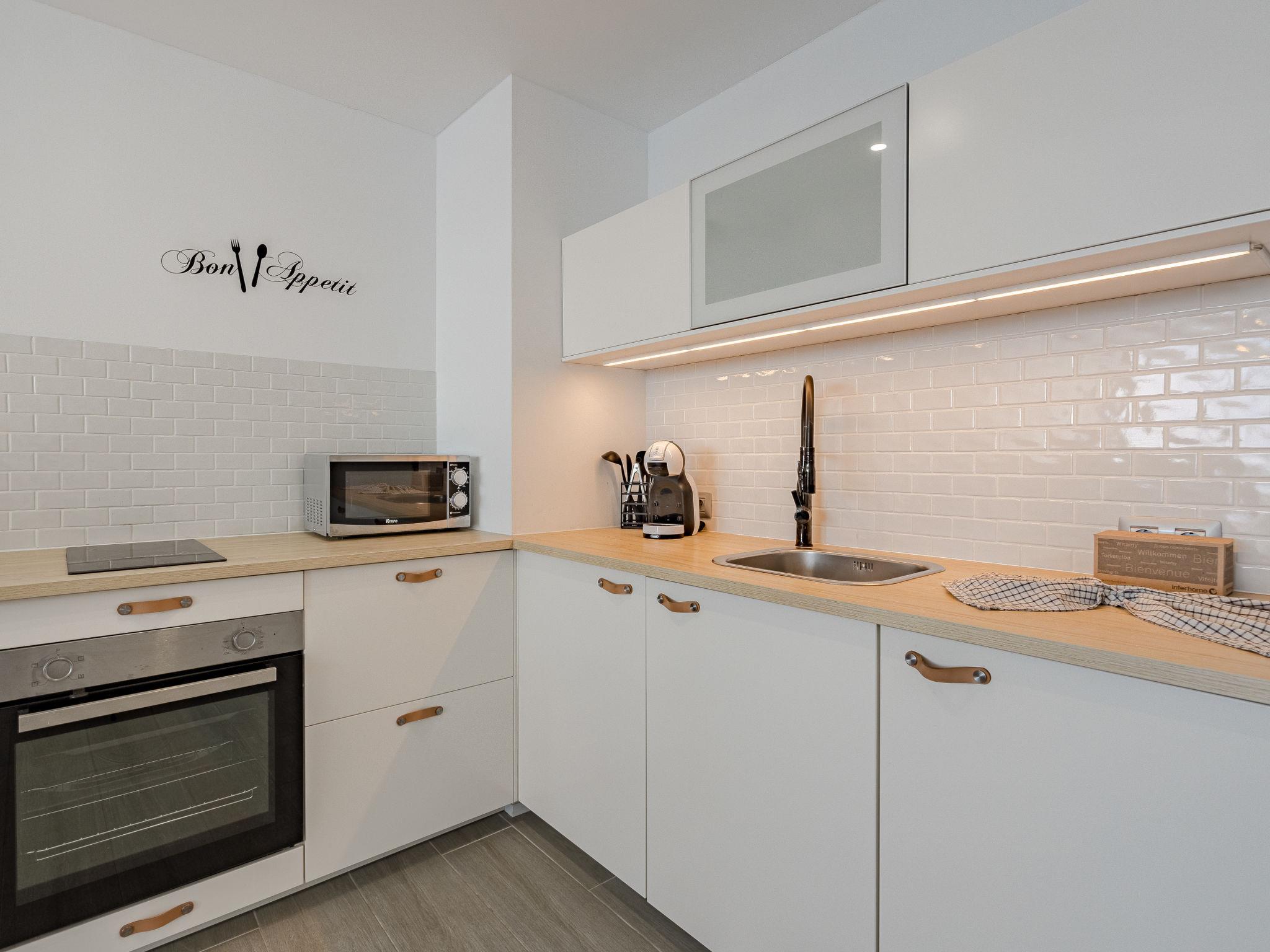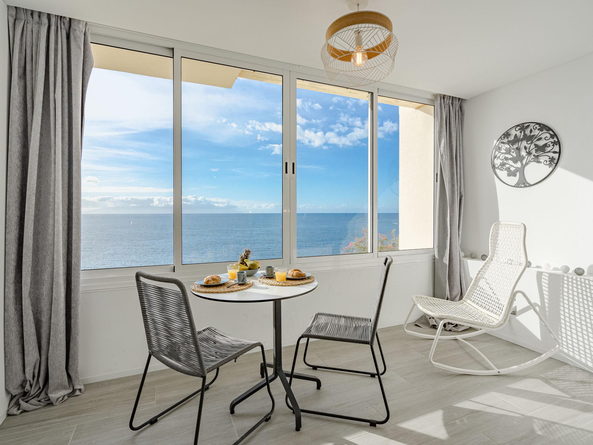"Ocean Loka", 1-room studio 40 m2. Object suitable for 2 adults. Bright, practical and comfortable furnishings: living/sleeping room with 1 french bed (160 cm, length 200 cm), digital TV, international TV channels, flat screen and fan. Open kitchen (oven, 2 induction hot plates, toaster, kettle, microwave, freezer, electric coffee machine, Capsules for coffee machine (Dolce Gusto) extra) with dining table. Shower/WC. Boiler (50 litres). No heating option. Deck chairs (2). Marvellous panoramic view of the sea. Facilities: washing machine, iron, hair dryer. Internet (WiFi, free). Please note: non-smokers only. No lift. VV-38-4-0110595 // Reg. Nr.: ESFCTU0000380150001994800000000000000VV-38-4-01105953