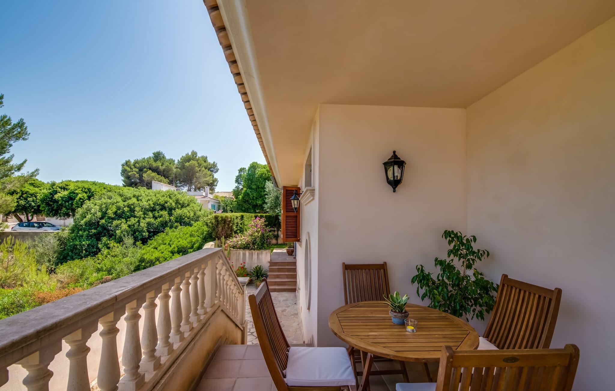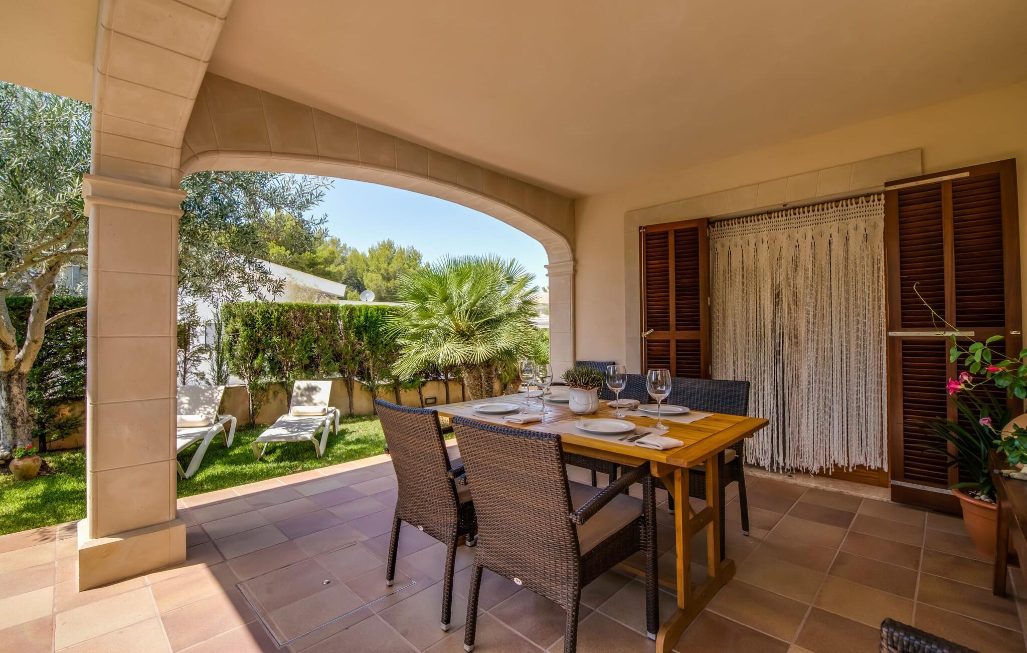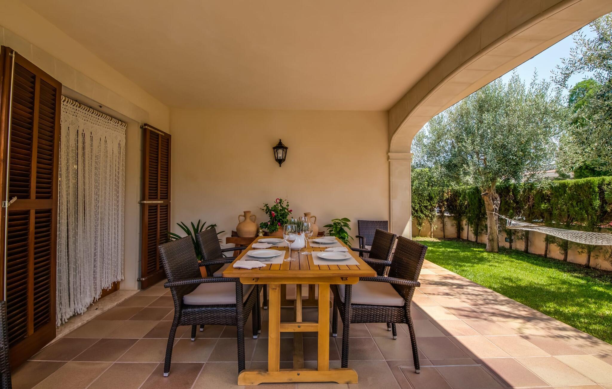 Det ugenerede udendørsområde er skabt til at nyde Mallorcas dejlige klima fuldt ud. Tag en forfriskende dukkert i den funklende pool, straks efter I er stået op, og saml jer derefter til morgenmad på den indbydende terrasse. Fordyb jer i jeres ferielæsning i hængekøjen, og nyd samværet med stemningsfulde grillaftener.