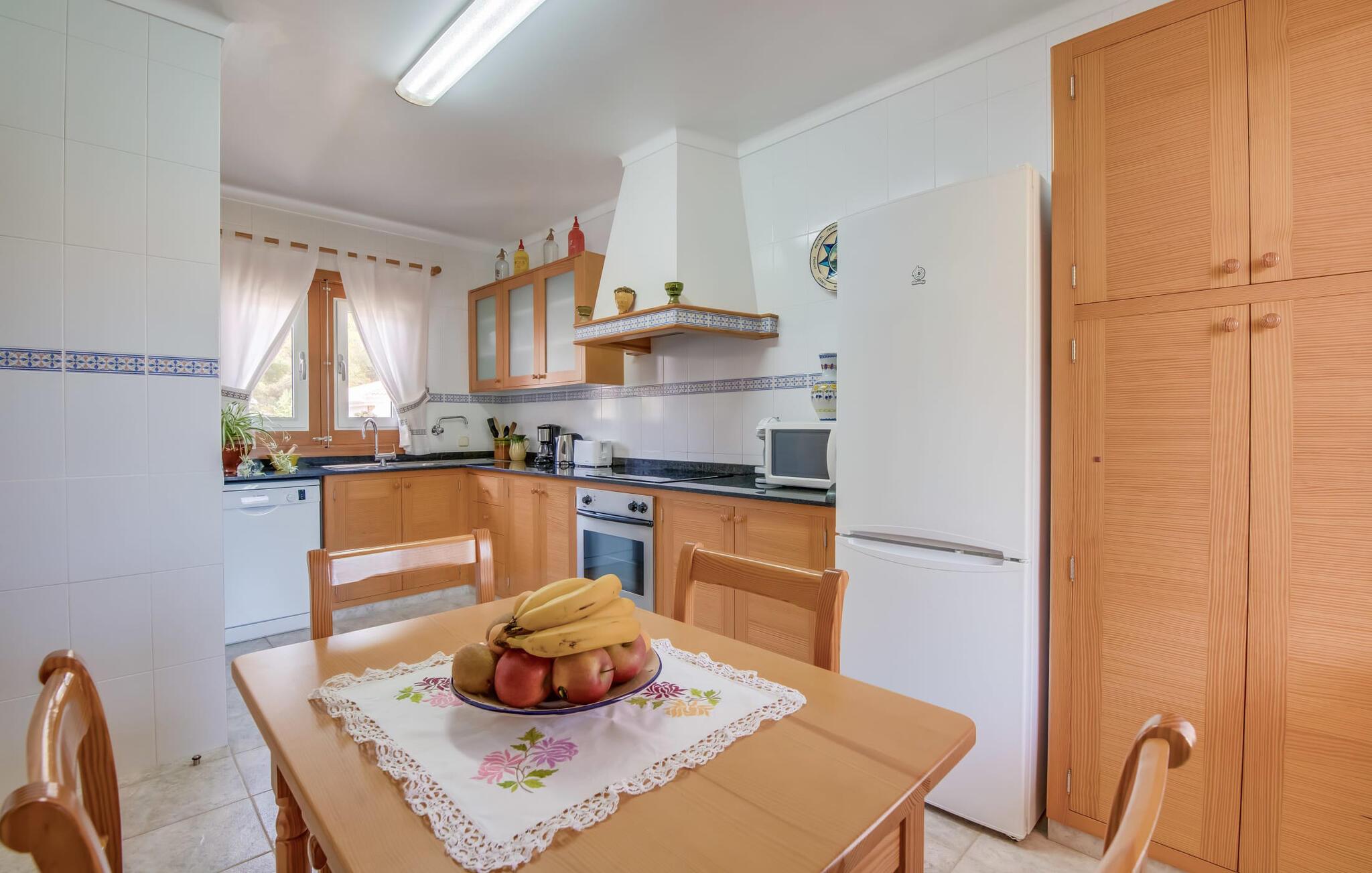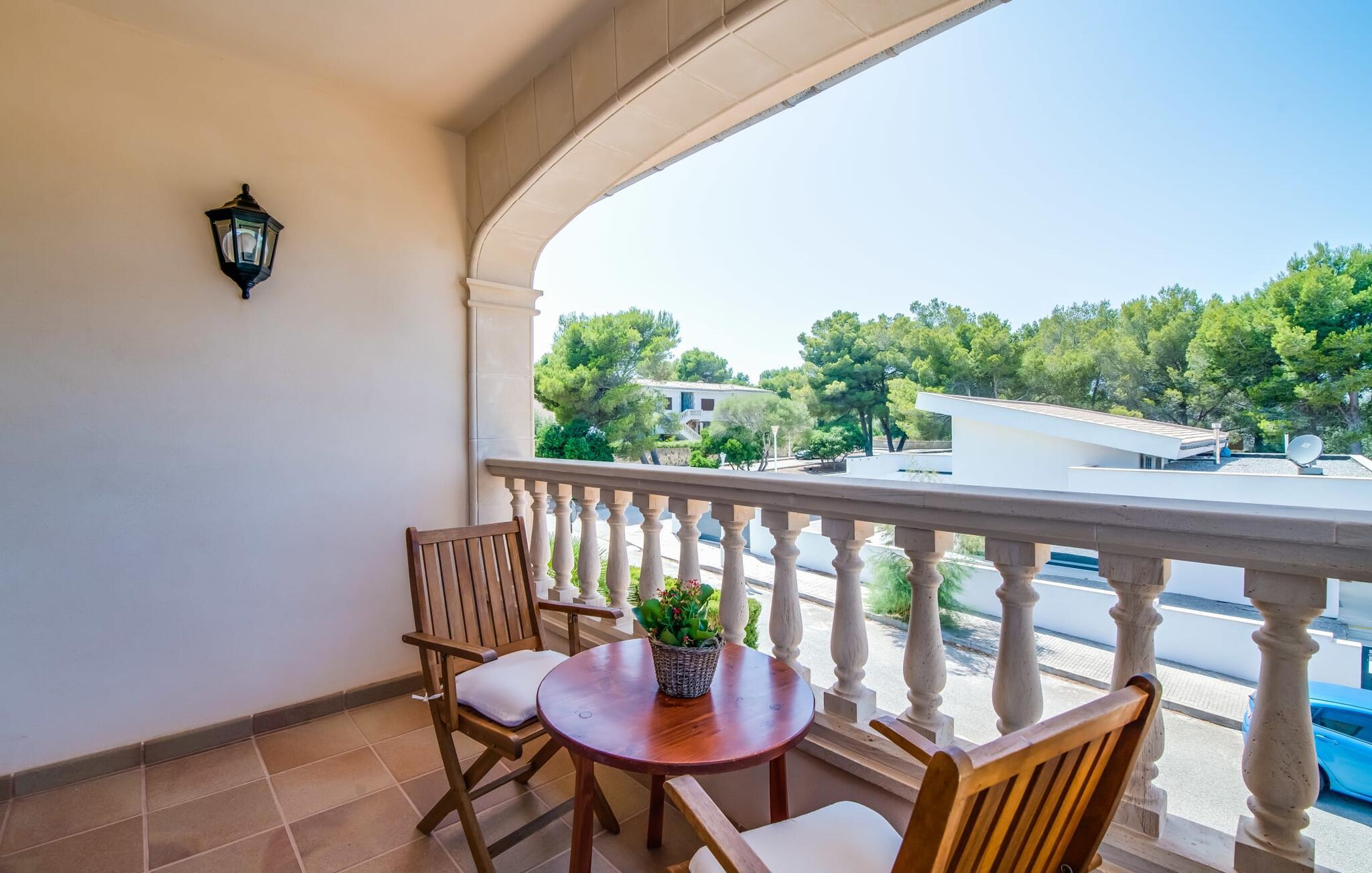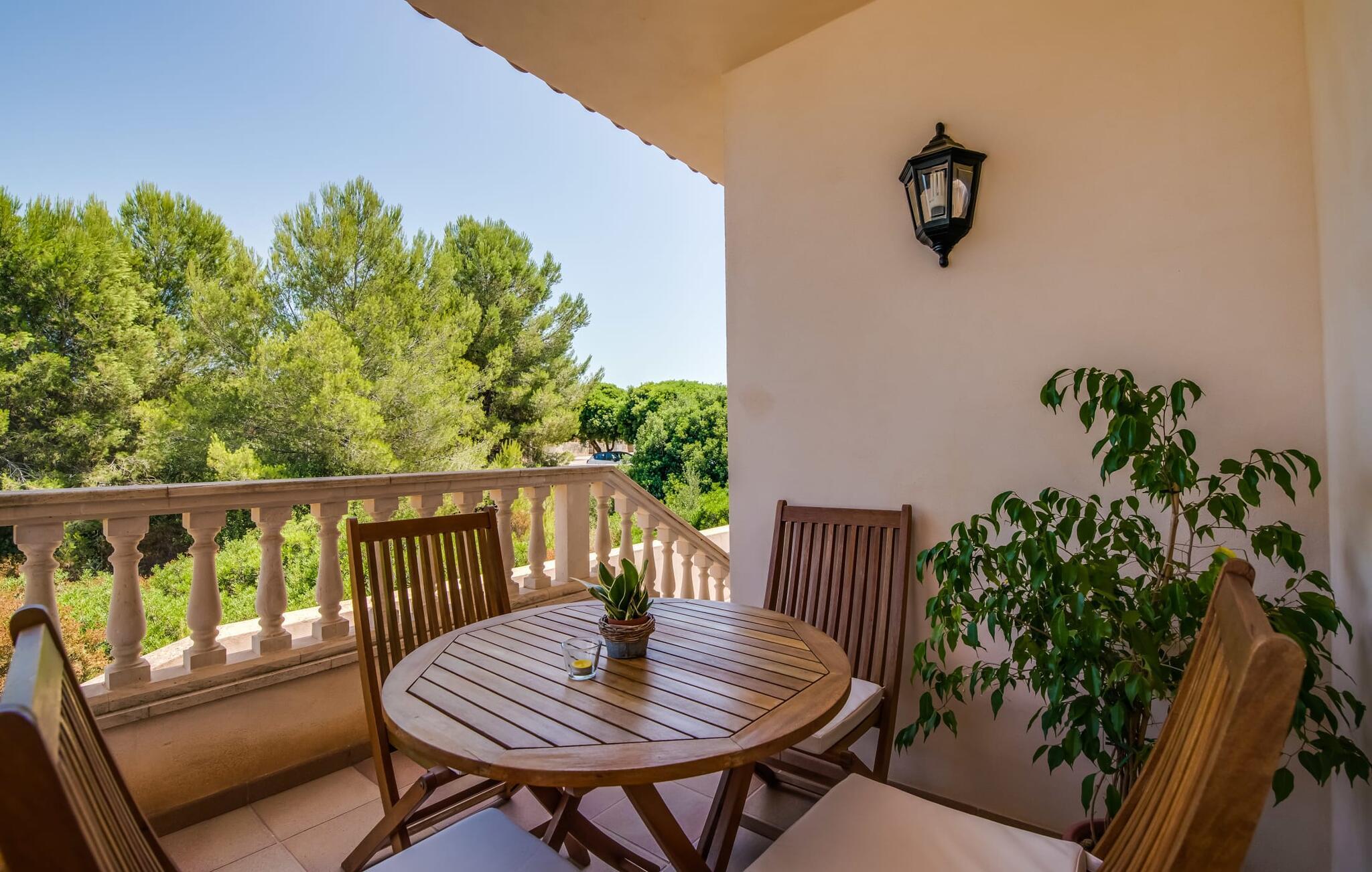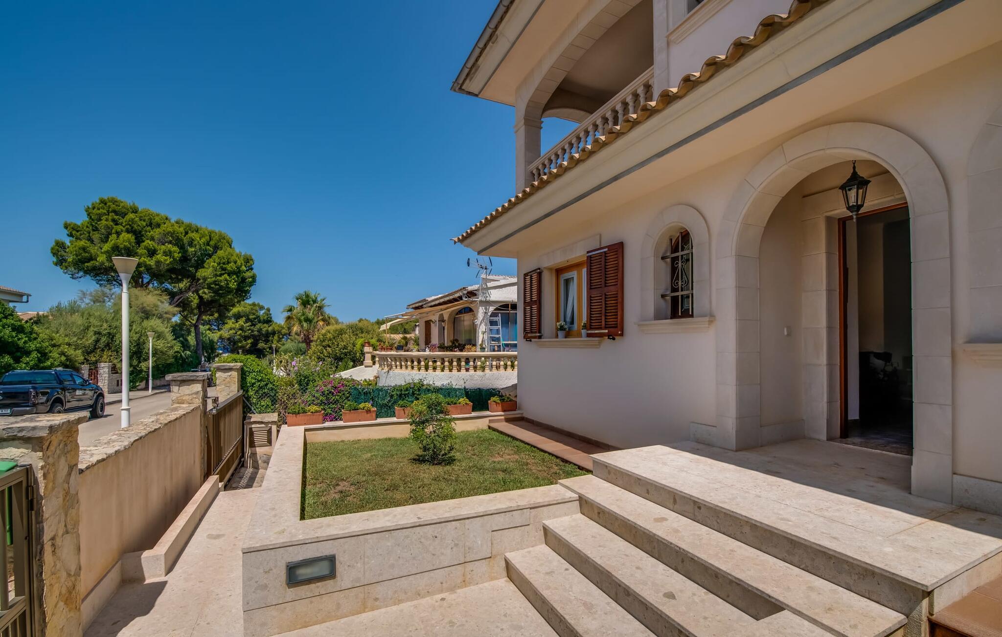 Det ugenerede udendørsområde er skabt til at nyde Mallorcas dejlige klima fuldt ud. Tag en forfriskende dukkert i den funklende pool, straks efter I er stået op, og saml jer derefter til morgenmad på den indbydende terrasse. Fordyb jer i jeres ferielæsning i hængekøjen, og nyd samværet med stemningsfulde grillaftener.