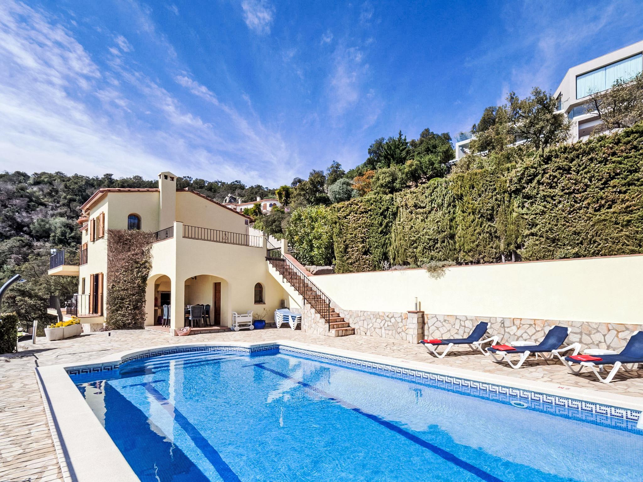 Vizcondado de Cabanyes 3 km from Calonge: Beautiful house "Lausanne", 2 storeys. 6 km from the sea. Private: garden (fenced), swimming pool angular (10 x 5 m, seasonal availability: 01.May. - 30.Oct.) with internal staircase. Outdoor shower, pergola, terrace, garden furniture, barbecue, parking at the house. Supermarket 2.5 km, restaurant 2 km, bus stop 1 km, sandy beach "Sant Antoni de Calonge" 6 km. Sports harbour 8 km, golf course (18 hole) 10 km, riding stable 12 km. Nearby attractions: Parque Aquatico 6 km. Please note: car recommended. The owner does not accept any youth groups.