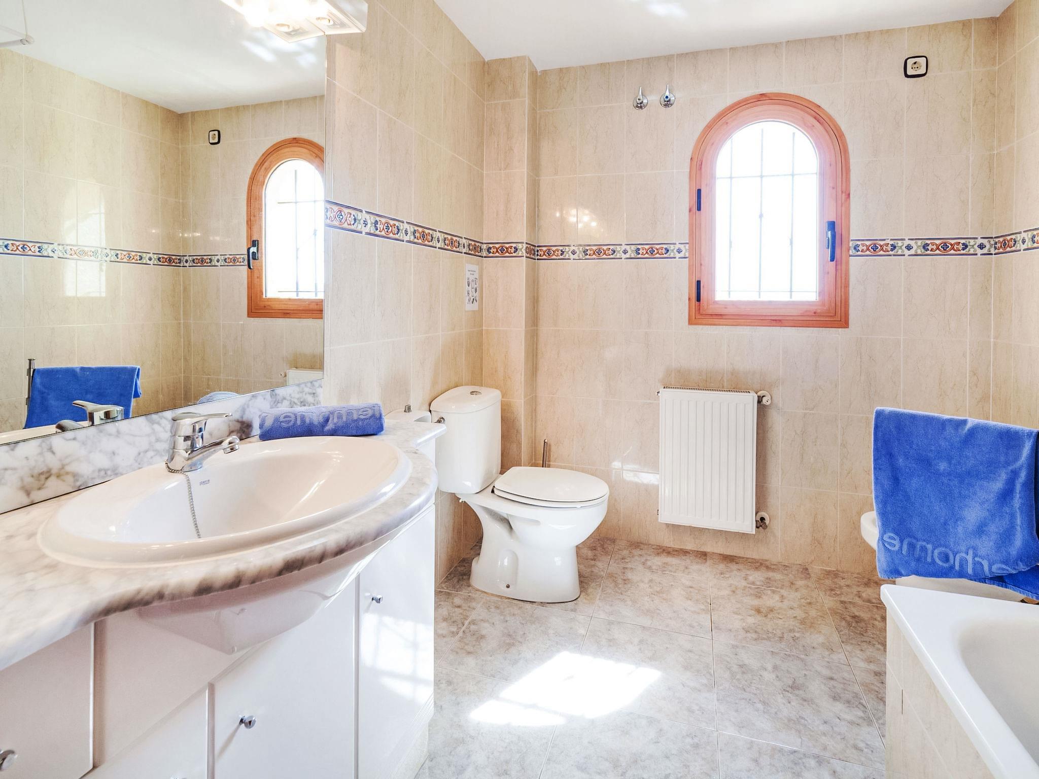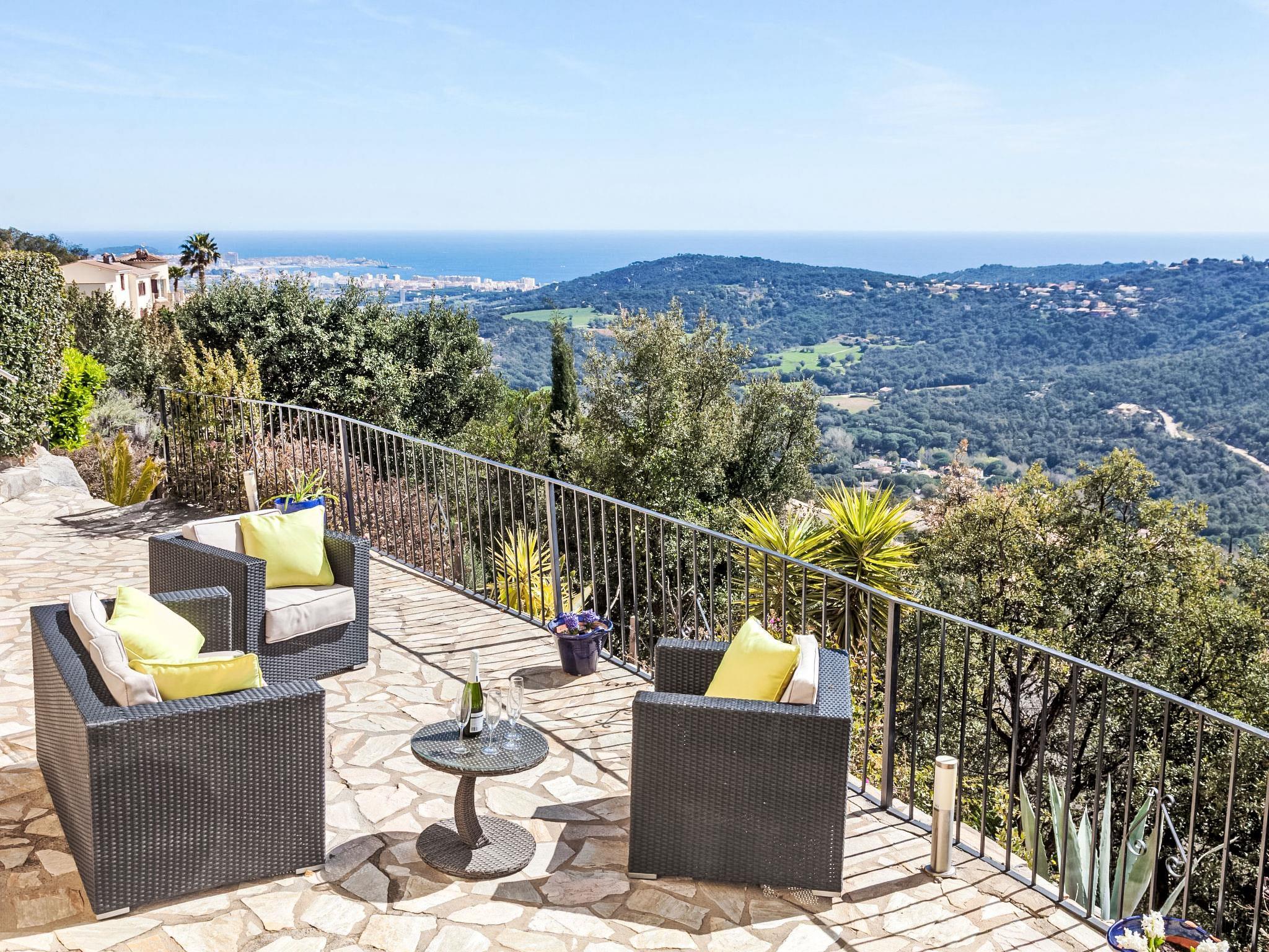 "Lausanne", 5-room house 140 m2 on 2 levels. Bright, comfortable furnishings: 2 rooms, each room with 2 beds (90 cm, length 190 cm). 1 room with 1 french bed (150 cm, length 190 cm), shower/WC. Bath/WC. No heating option. On the lower ground floor: living/dining room with digital TV, international TV channels and flat screen. Exit to the garden, to the swimming pool. 1 room with 1 french bed (150 cm, length 190 cm), bath/WC. Open kitchen (oven, dishwasher, 4 ceramic glass hob hotplates, toaster, kettle, microwave, electric coffee machine). Sep. WC. Large terrace, large garden. Deck chairs. Very beautiful panoramic view of the sea, the mountains, the countryside and the resort. Facilities: washing machine, iron, children's high chair, baby cot. Internet (WiFi, free). Please note: suitable for families. Non-smoking house. Maximum 1 pet/ dog allowed. HUTG-036877 // Reg. Nr.: ESFCTU00001701500041556300000000000000000HUTG-0368778